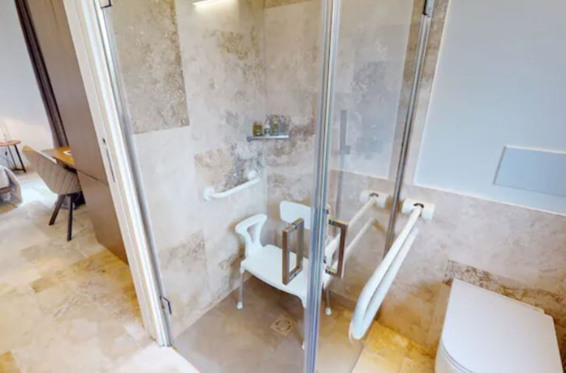 Soveværelse med bad 1: dobbeltseng, WIFI internet, handikap ok, wc, bidet, bruser, hårtørrer.