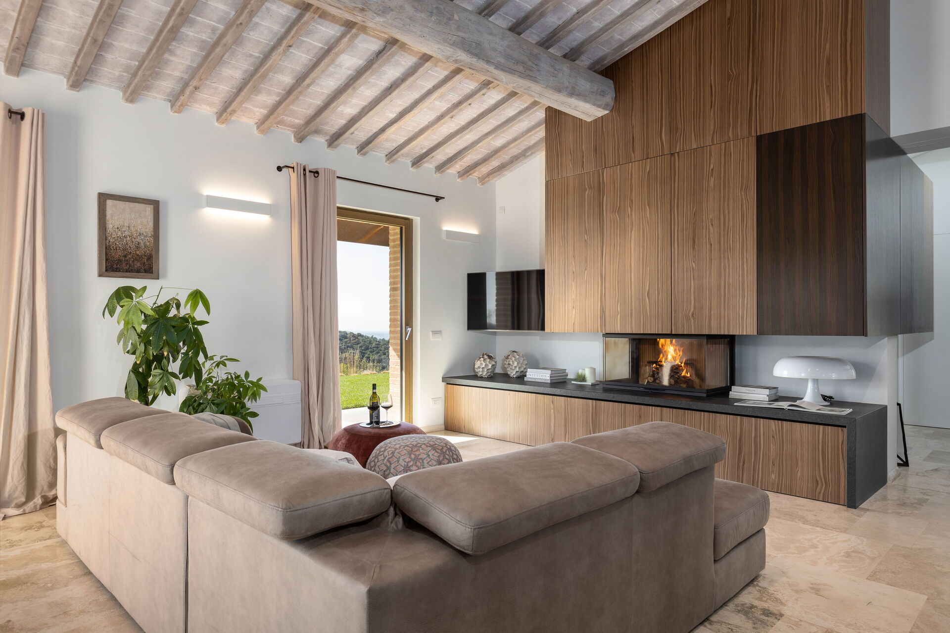 Køkken - stue: veludstyret køkken, køleskab, fryser, mikroovn, kogeplader, ovn, italiensk kaffemaskine, sofa, kamin, WIFI internet, klimaanlæg, høj stol.
