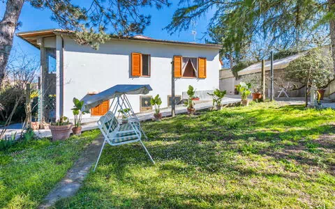 Pogi 2 km fra Bucine: Hus "La Casa del Ponte Romano", fritstående. I bydelen Pogi, 2.5 km fra bymidten af Bucine, 8 km fra centrum af Ambra, isoleret beliggenhed i en bydel, 10 m fra floden, i det grønne. Til alene benyttelse: grund 2'000 m2 (indhegnet), have planter og træer, parkeringsplads (for 2 biler) ved huset på grunden. Indkøbsforretning 4 km, fødevarebutik 4 km, supermarked 4 km, restaurant 1.5 km, bageri 4 km, café 4 km, busstoppested "Pogi" 50 m, banegård "Bucine" 5 km, varmtvandsbad "Rapolano" 28 km. Golfbane (9 hul) 23 km, lystfiskeri 100 m. Nærliggende attraktioner: Gaiole in Chianti 25 km, Arezzo 32 km, Siena 42 km. Vandrestier Sentieri del Ponte Romano 50 m. Bemærk venligst: babyudstyr (inkl.). Ejeren bruger nogle værelser i huset.