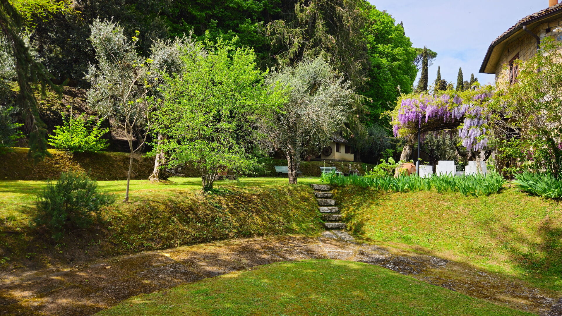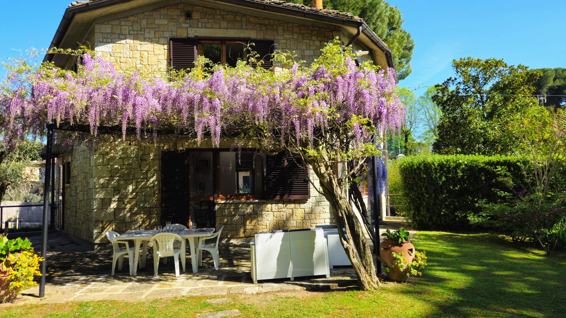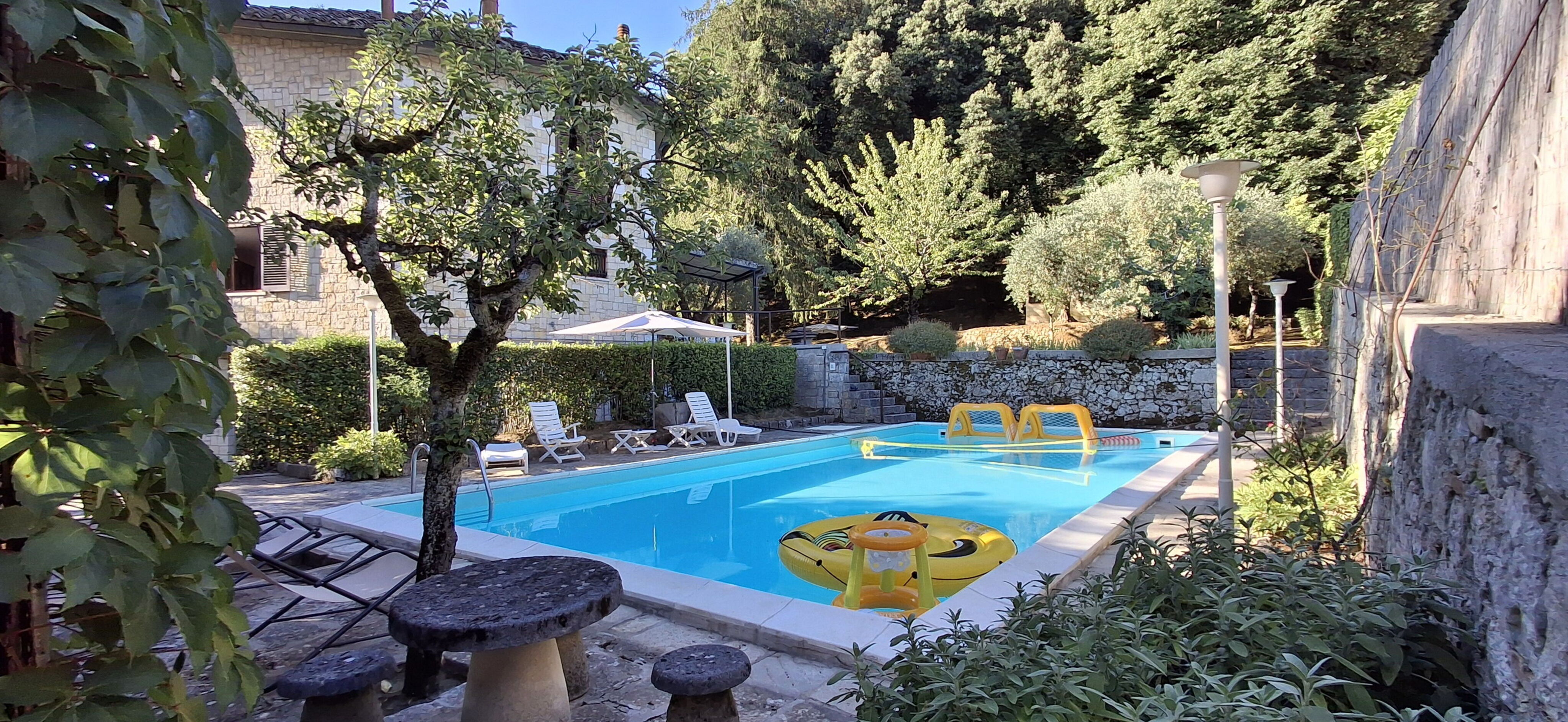 Når I ankommer, vil I møde en fin ren velholdt ejendom med udsigt over bakkerne perfekt til behagelig ferie i Toscana. Efter en travl dag med shopping, er det dejligt at nyde lidt tid med venner og familie ved kanten af poolen med et glas vin - det er en perfekt måde at køle ned på sidst på dagen. Hvis I nyder at lave mad til familie og venner så er der et veludstyret køkken inkluderet brødrister og køleskab, samt, , samt masser af service og bestik til op til syv personer.