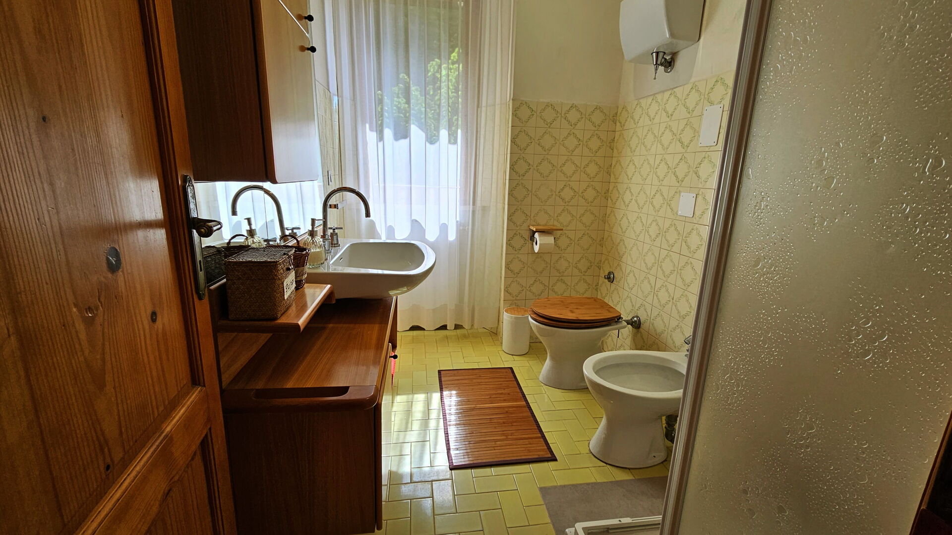 Badeværelse 1: vask, wc, bidet, badekar, bruser.