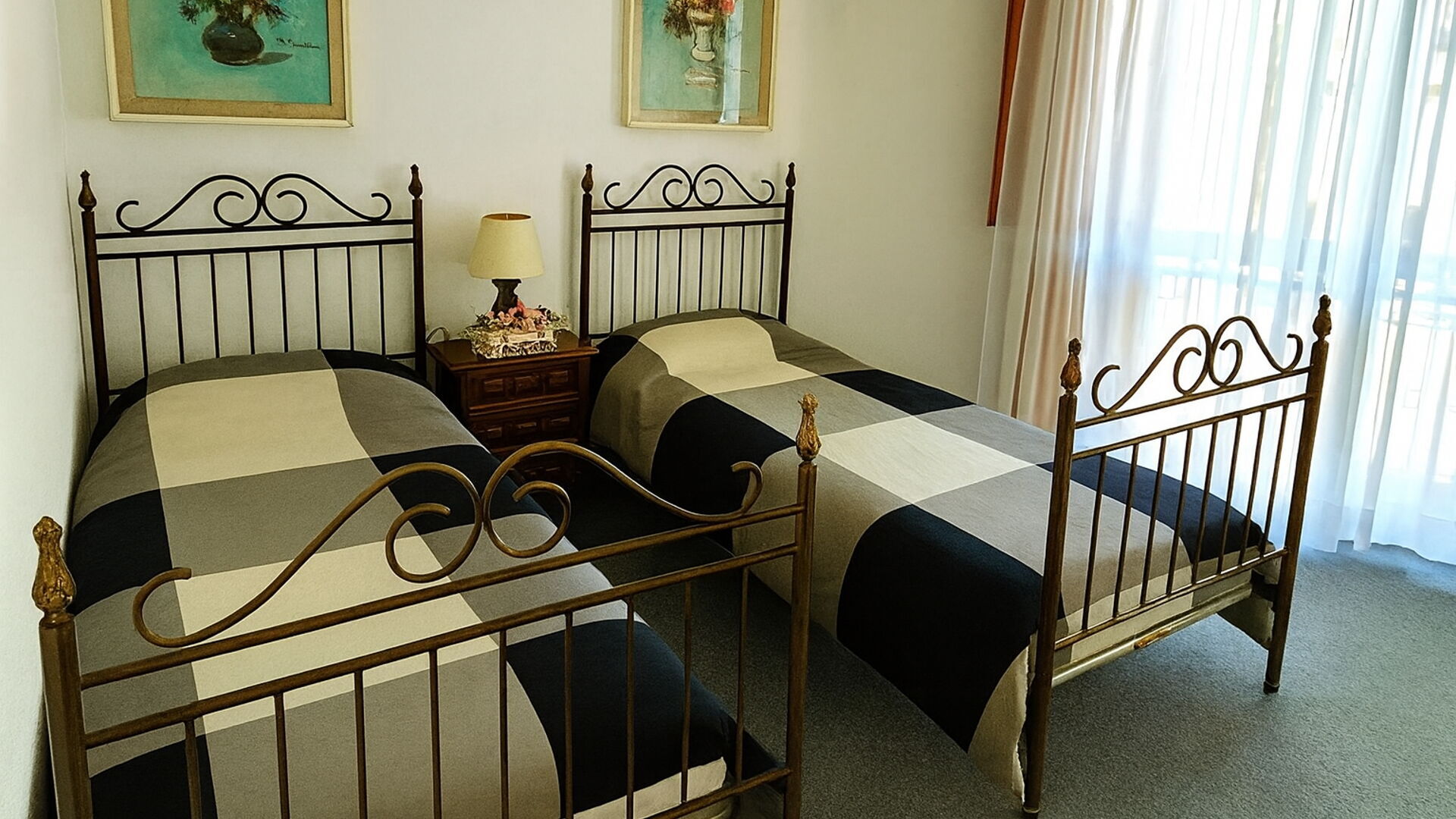 Soveværelse 3: to enkeltsenge, WIFI internet, mobil ventilator.