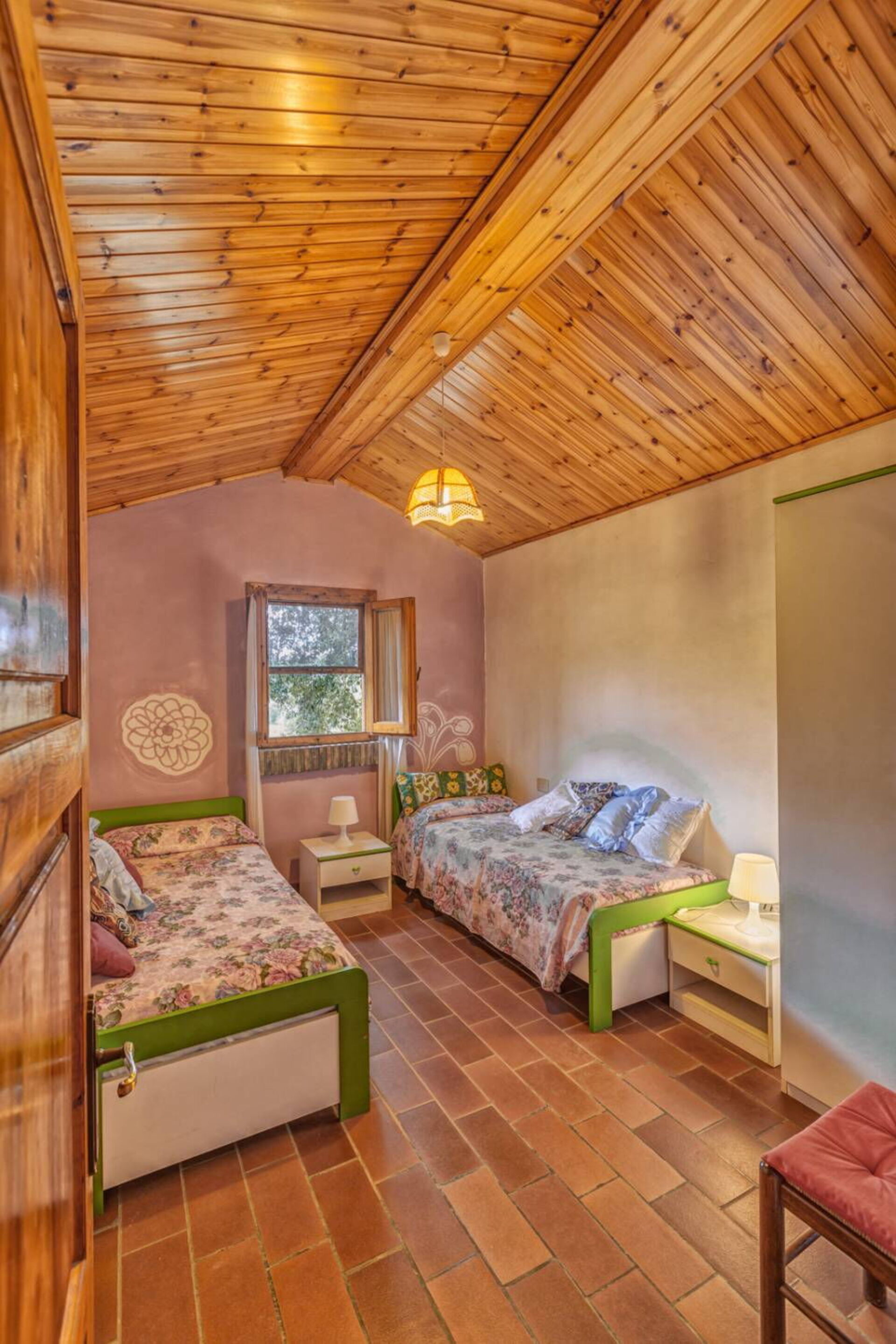 Beliggenheden er rolig, udendørsområderne er store og omfatter stier til gåture, en indhegnet swimmingpool, et legeområde til børn og en panoramaterrasse i skyggen af et stort egetræ.