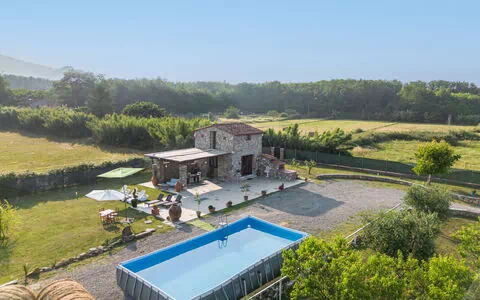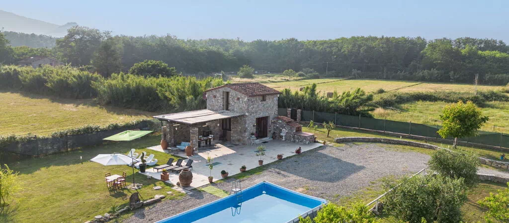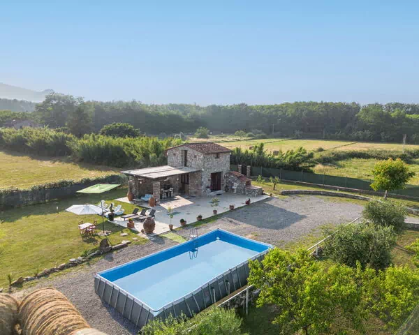 Rustikt hus "I Sei Filari", bygget i 2022. 1.5 km fra bymidten af Castelvecchio di Compito, 17 km fra centrum af Lucca, 28 km fra bymidten af Pisa, 40 km fra havet. Til alene benyttelse: grund 1'000 m2 (indhegnet), have 500 m2 (indhegnet) med planter, græsmark, pool (oppsted svømmebassin) (6 x 8 m, 110 - 110 cm dyb, Sæsonbestemt tilgængelighed: 04.Maj. - 04.Okt.). Udendørs brus, terrasse (150 m2), havemøbler. I huset: sauna (ekstra). Boblebad (ekstra). Rum til at slappe af, spa-område (ekstra). Kok muligt (ekstra). 950 m lang, tilkørsel (natursti). Parkeringsplads på grunden. Indkøbsforretning 1.4 km, supermarked 6 km, busstoppested 800 m, sandstrand 40 km. Nærliggende attraktioner: Collodi (Pinocchio Park) 23 km, Montecatini Terme 27 km, San Giuliano Terme 23 km, Firenze 70 km, Viareggio 41 km, Riomaggiore (5 Terre) 101 km. Kendte søer nås nemt: Lago di Massaciuccoli 41 km, Torre del Lago 43 km. Vandrestier Levigliani Antro del Corchia Park 67 km. Bemærk venligst: bil anbefales.