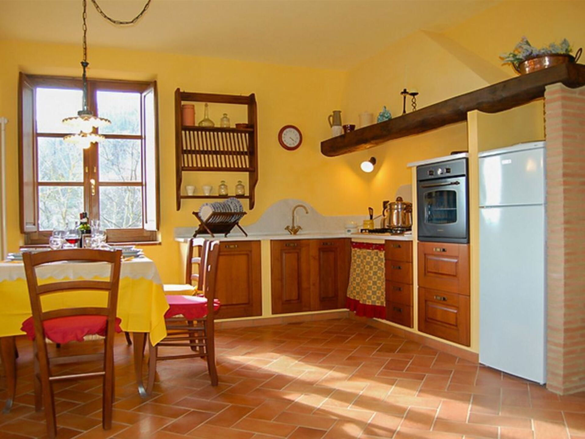 Ved ankomst vil I møde en dejlig ren velholdt ejendom med udsigt over bakkerne perfekt til fredelig ferie i Toscana. Til jeres store glæde vil I finde en privat pool, hvor I kan slappe af, mens I nyder en dejlig kold drik efter en hektisk dag med museumsbesøg. At spise med venner og familie er en kæmpe del af den toskanske kultur. Benyt køkkenet til madlavning med lokale produkter, når du er på ferie. Køkkenet indeholder kaffemaskine, mikroovn, brødrister og køleskab, samt, masser af service og bestik til op til otte personer. Spis 'al fresco' som en ægte toskaner. Den fuldt møblerede have er det ideele sted for at nyde sit måltid, familien og det fine toskanske vejr.