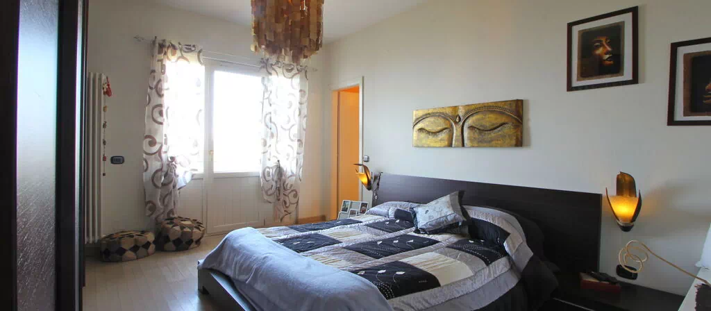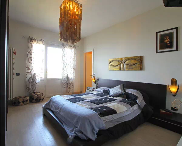 Soveværelse med bad: dobbeltseng (bredde: 160m, længde: 190m), tv, boblebad, vask, wc, bidet, bruser, udgang til balkon.