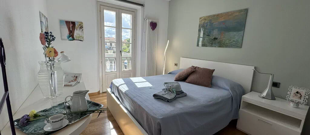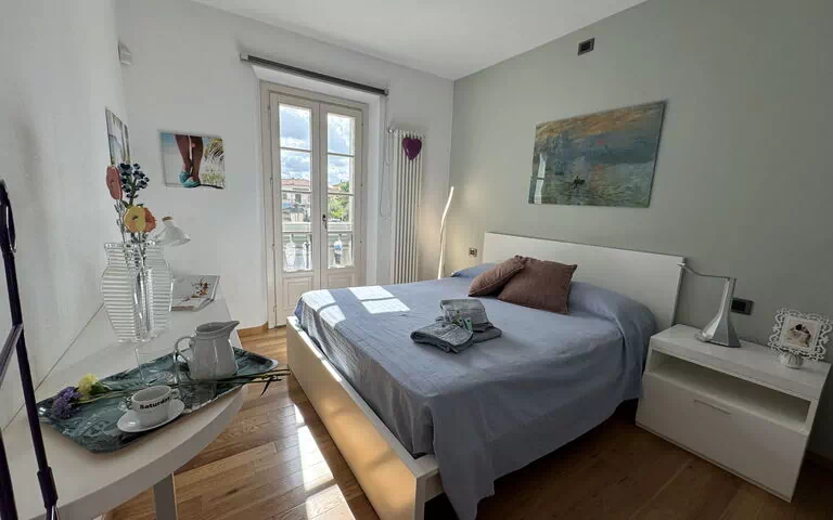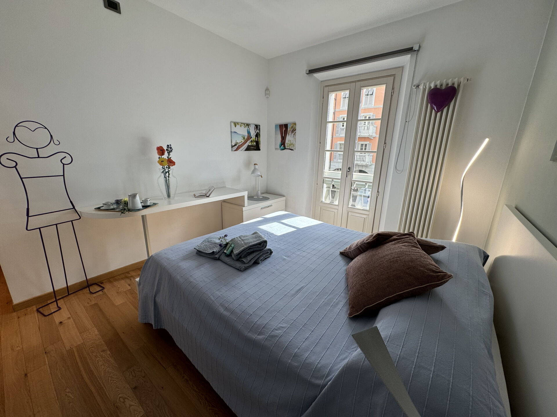 Soveværelse 2: fransk seng (bredde: 1.55m, længde: 1.85m), WIFI internet, mobil ventilator, udgang til balkon.