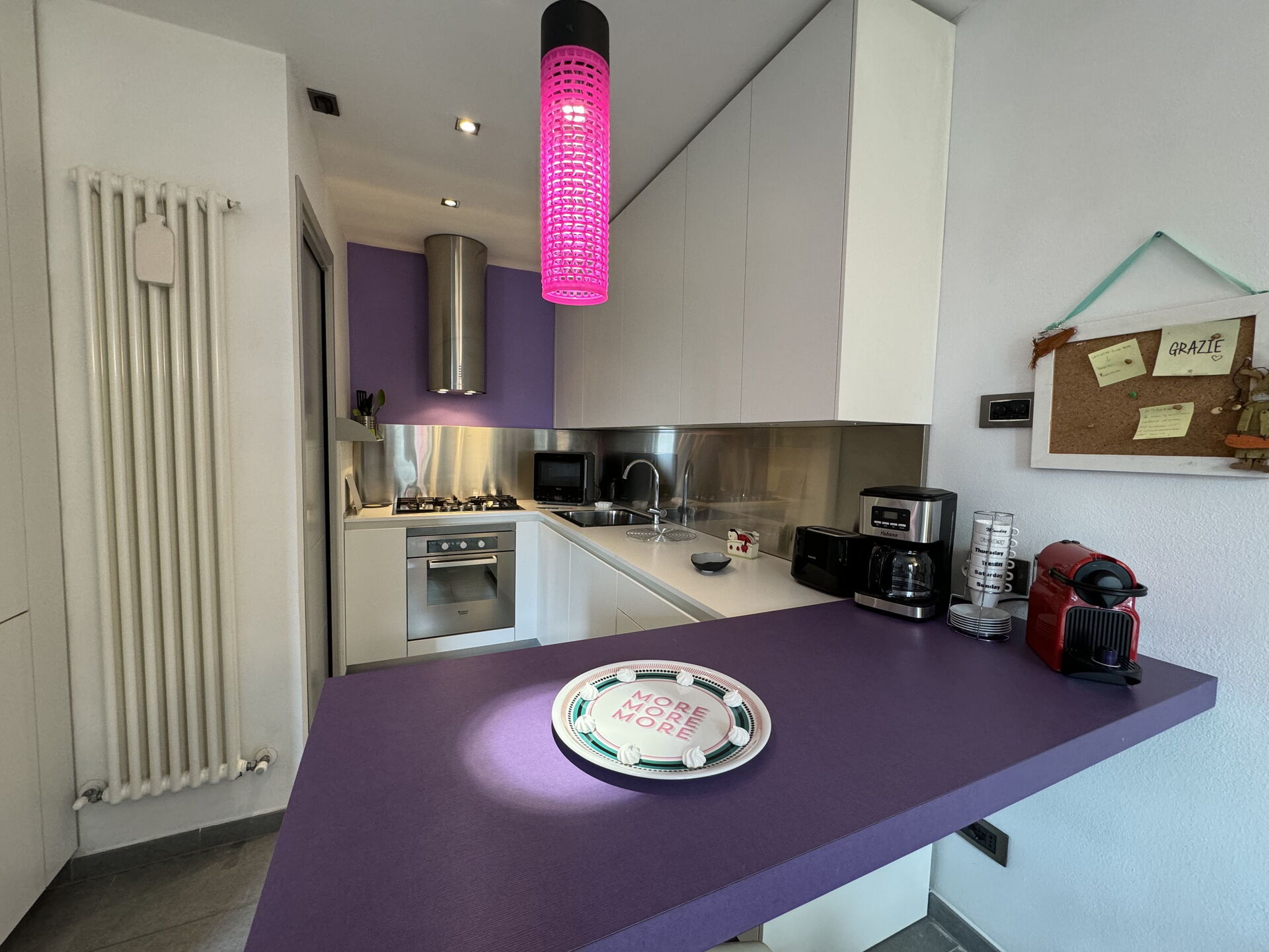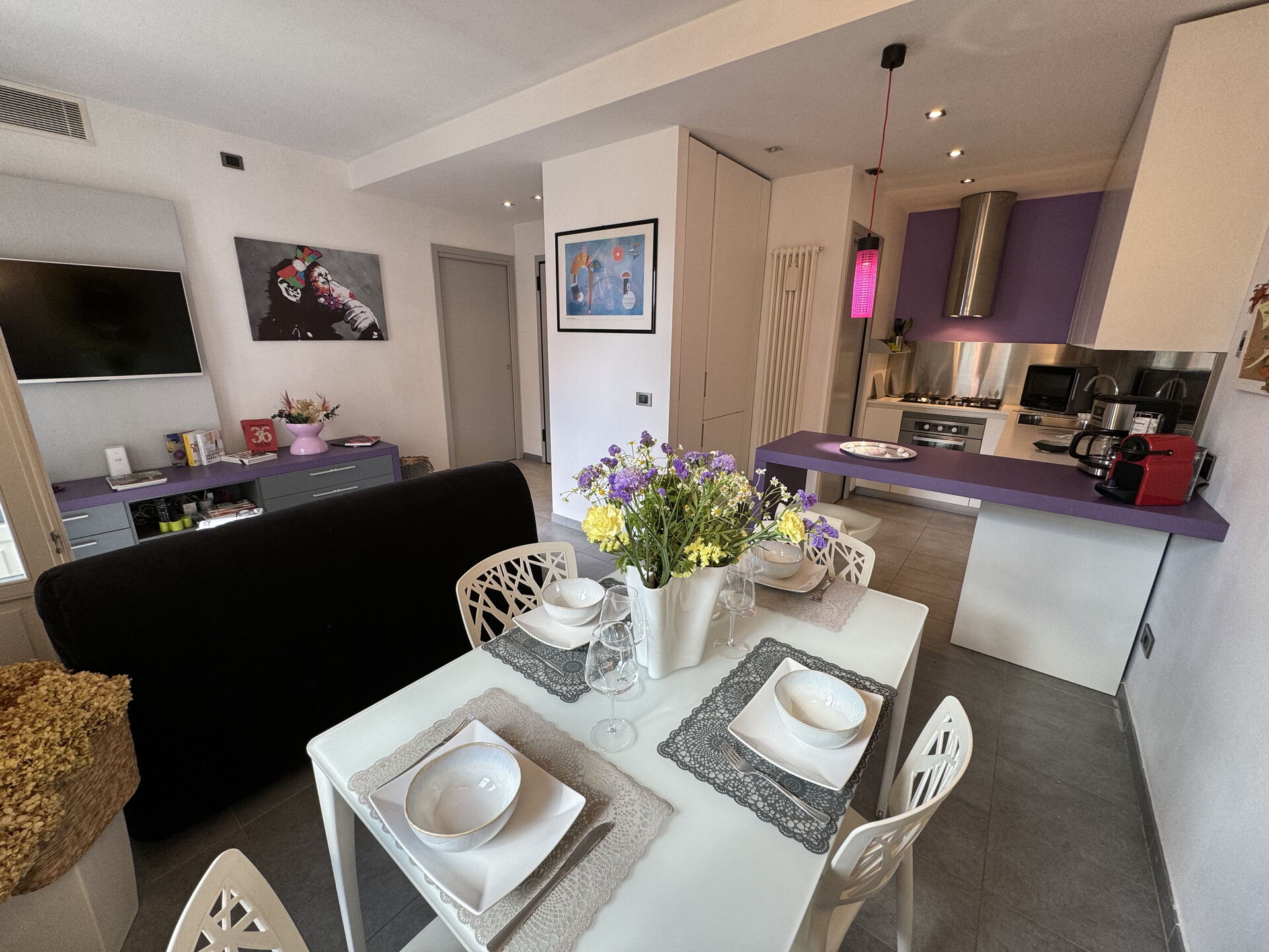 Køkken - stue: veludstyret køkken, spisebord, opvaskemaskine, køleskab, fryser, mikroovn, ovn, brødrister, italiensk kaffemaskine, amerikansk kaffemaskine, vaskemaskine, sofa, WIFI internet, satellit tv, udgang til balkon.