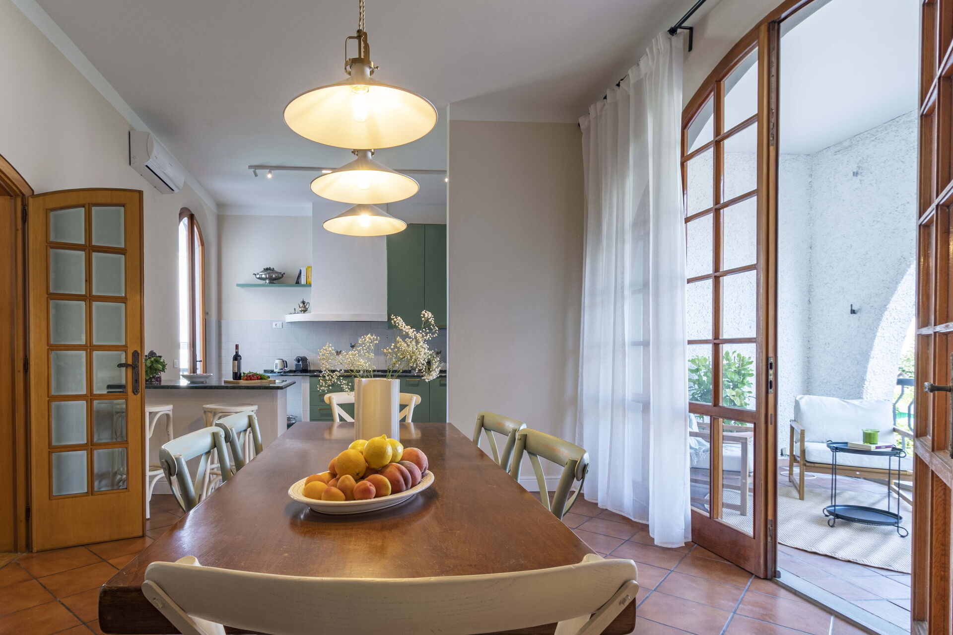 Køkken - stue: veludstyret køkken, spisebord, opvaskemaskine, køleskab, fryser, kogeplader, ovn, italiensk kaffemaskine, sofa, lænestol, kamin, WIFI internet, klimaanlæg, satellit tv.