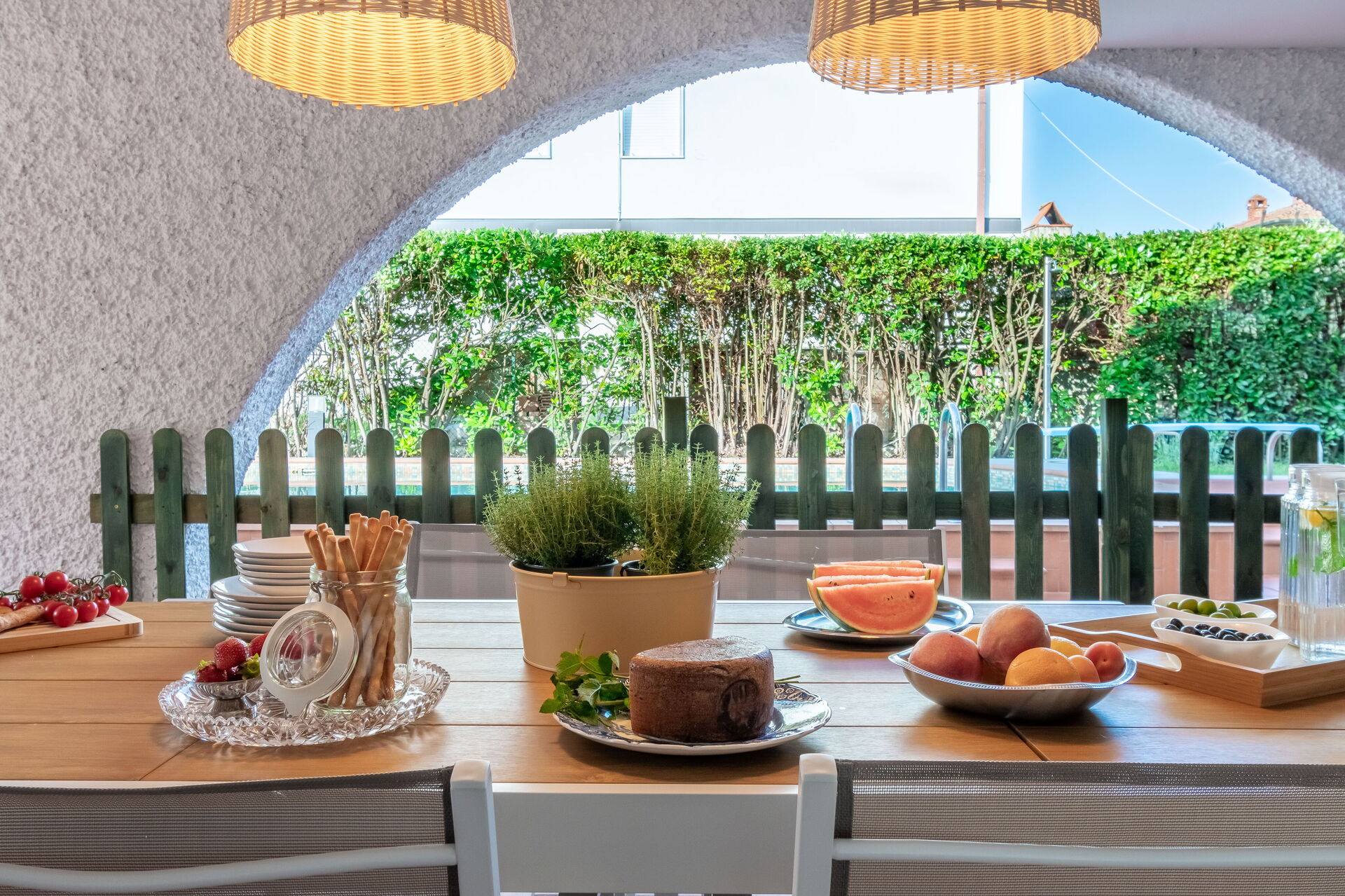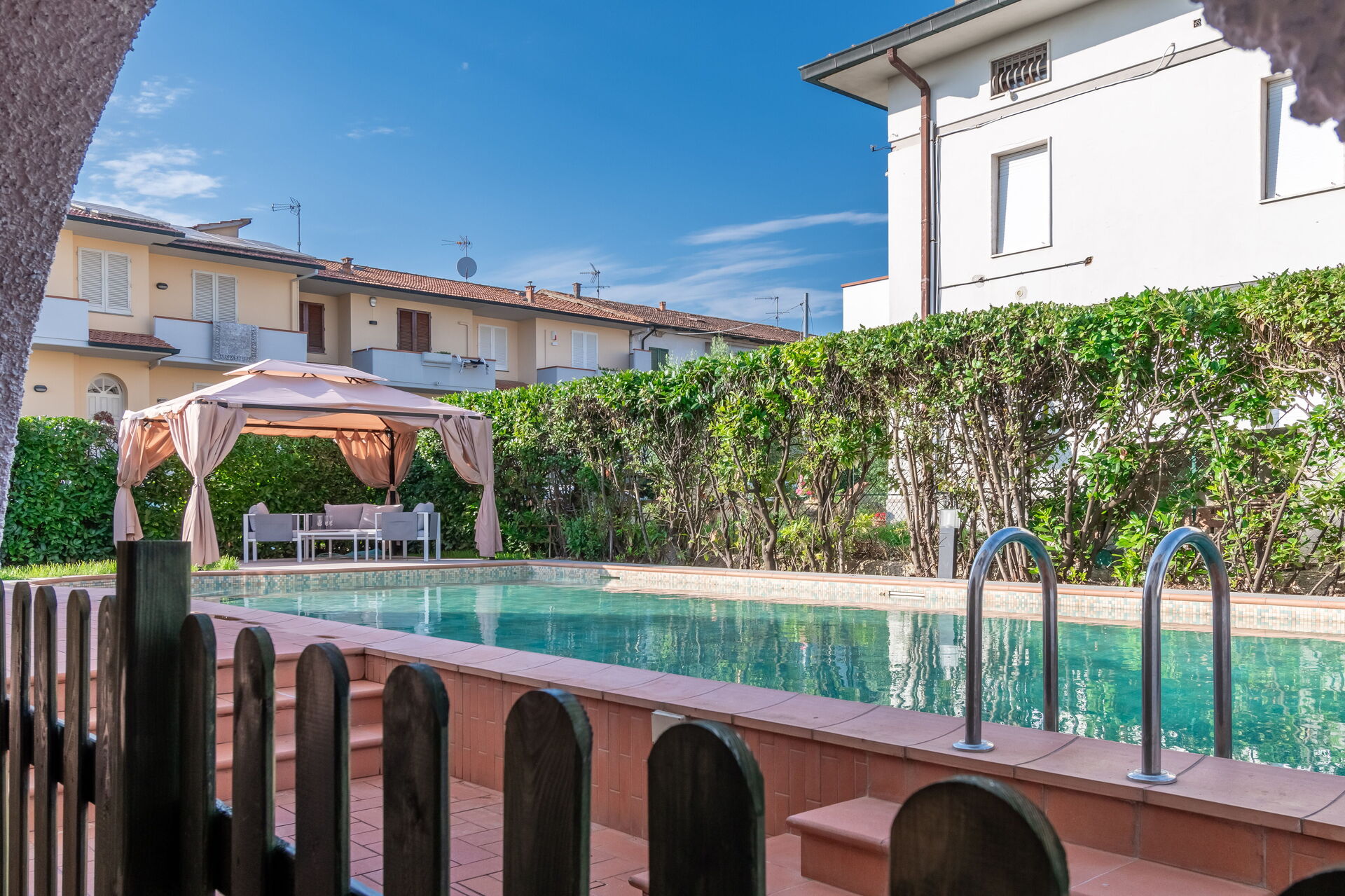 Have: swimmingpool (privat, bredde: 6m, længde: 13m, dybde: 1.5m, max. dybde: 2m, min. dybde: 1m), WIFI internet, udendørs spiseplads, spisebord, havepavillon, havemøbel, liggestol, indhegnet, lukket ejendom.