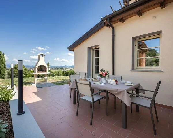 Når I ankommer, vil I blive modtaget af ejeren eller repræsentanten og I vil finde en fin ren og velholdt ejendom med udsigt over byen og bakkerne ideel til en rolig ferie i Toscana. Til jeres store glæde vil I finde en privat have, hvor I kan køle ned og nyde en kold drik efter en travl dag med sightseeing.Den store gevinst ved at leje en feriebolig i stedet for flere hotelværelser er muligheden for at slappe af med familie og venner efter en travl dag. Nyd en middag sammen akkompagneret med lidt lokal vin for at afslutte dagen. Udendørs vil I også finde boblebad og barbecue. Hvis I nyder at lave mad til familie og venner så er der et veludstyret køkken inkluderet kaffemaskine, mikroovn, brødrister, komfur og køleskab, samt, , samt masser af service og bestik til op til fire personer. Hvis I foretrækker at spise 'al fresco', er der en fuldt møbleret have, hvor I kan nyde vejret, mens I spiser udendørs.
