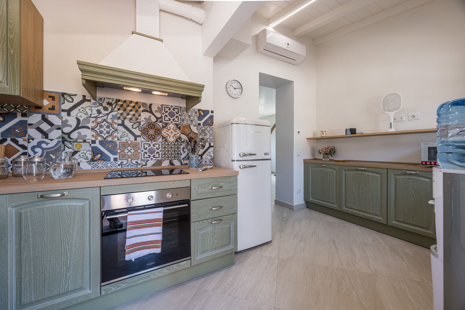 Køkken (10 m2): veludstyret køkken, opvaskemaskine, køleskab, fryser, mikroovn, ovn, brødrister, italiensk kaffemaskine, WIFI internet, myggenet, høj stol, røgalarm, udgang til have.