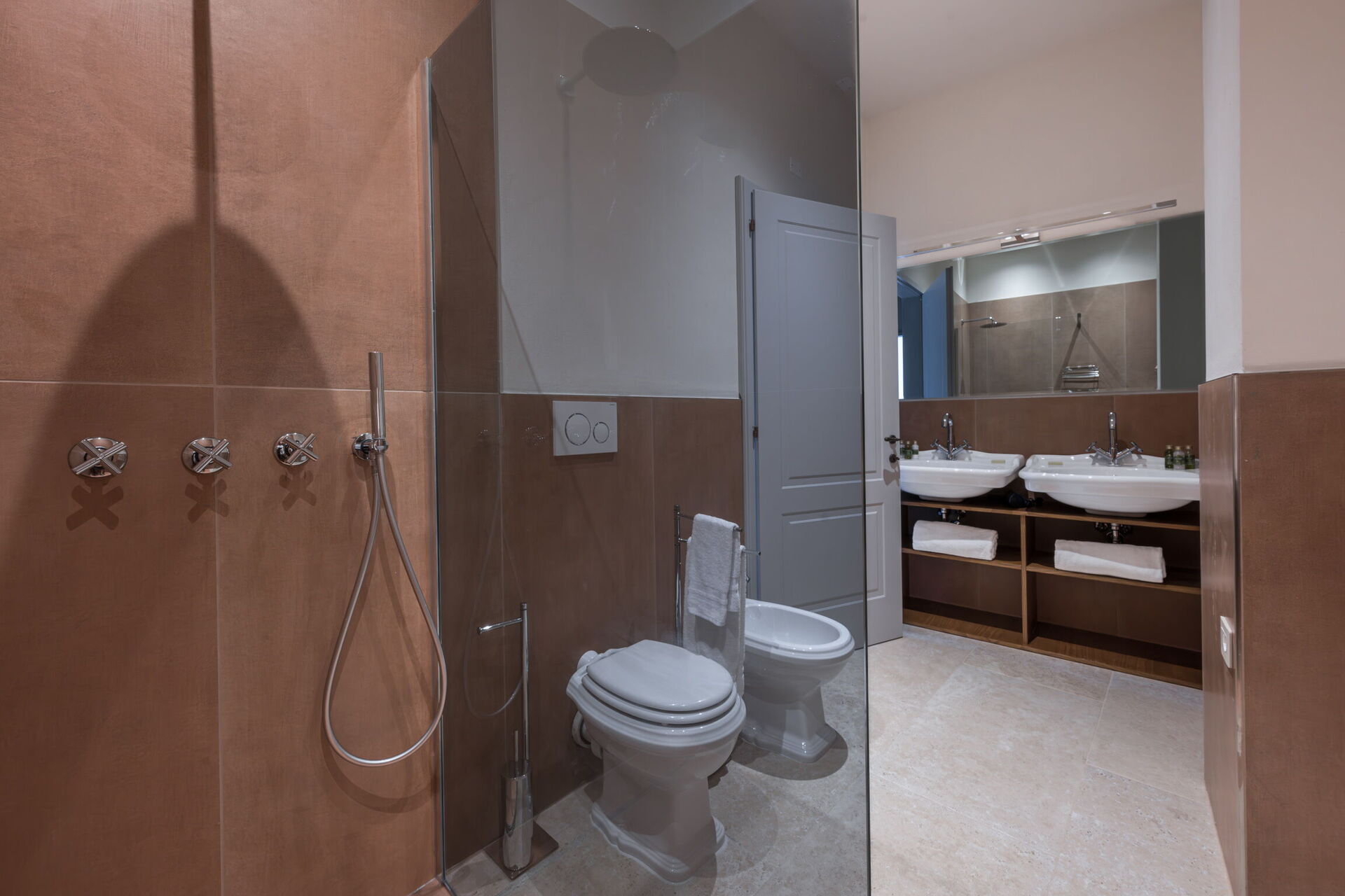 Badeværelse: wc, bidet, bruser.
