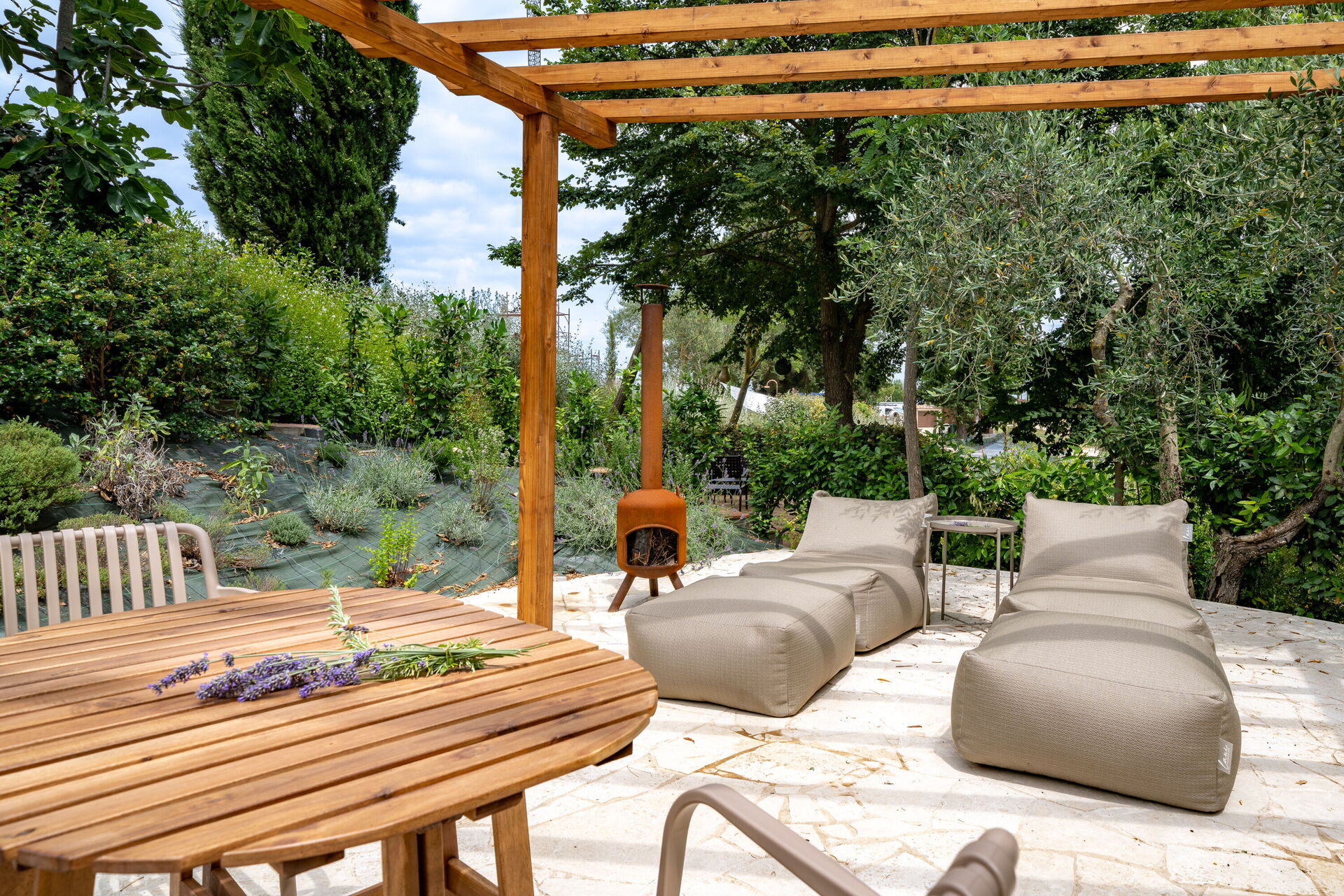 Poolen er opvarmet fra maj til oktober og deles udelukkende af de ti lejligheder og tre villaer.