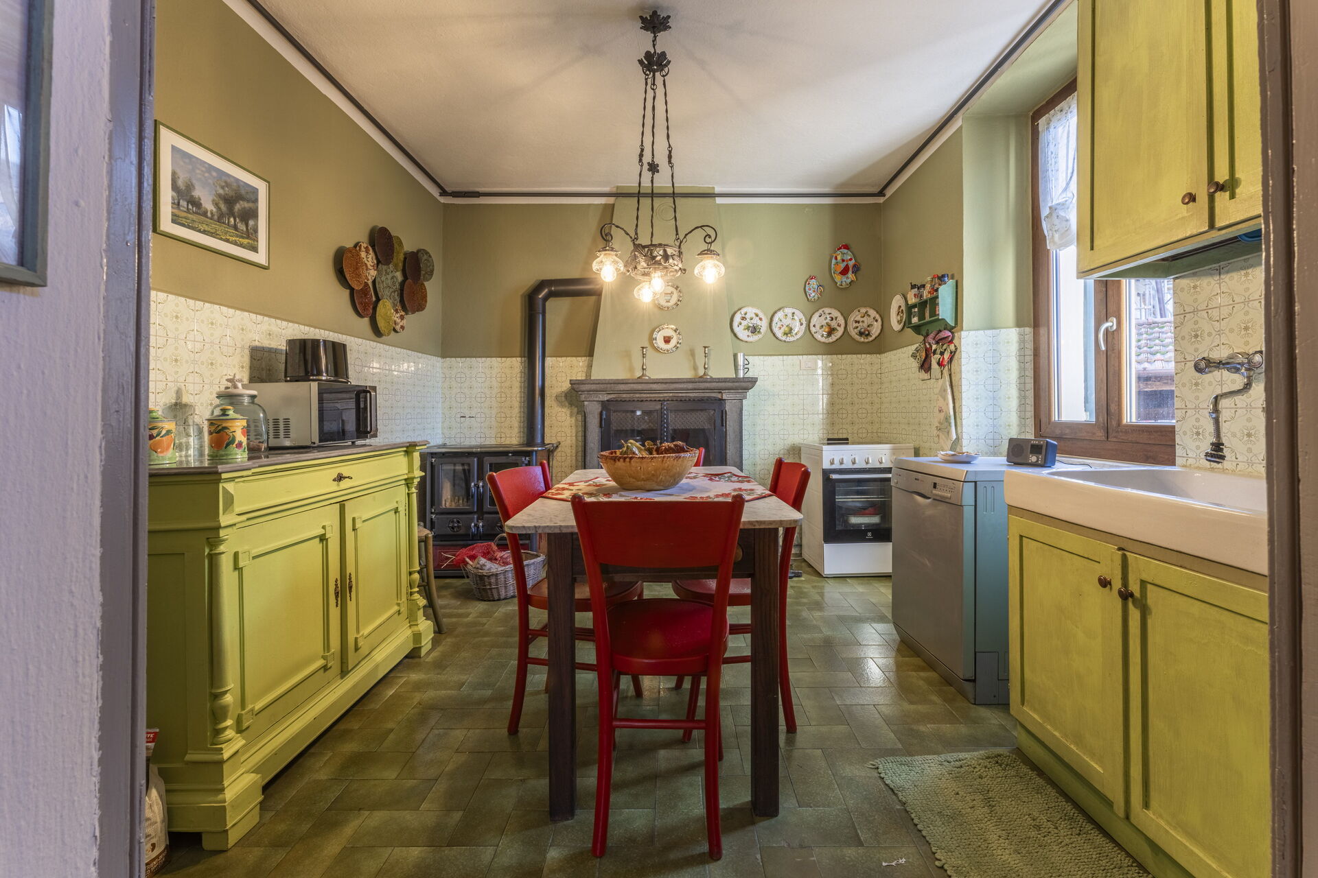 Køkken: spisebord, opvaskemaskine, køleskab, fryser, mikroovn, kogeplader, brændeovn, ovn, brødrister, italiensk kaffemaskine, kamin, WIFI internet.