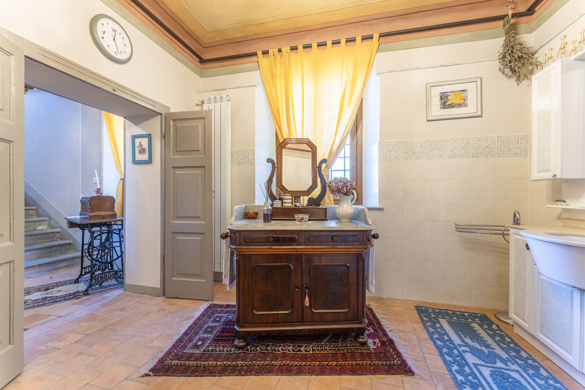 Når I ankommer, vil I møde en skøn ren velholdt ejendom med udsigt over bakkerne perfekt til fredelig ferie i Toscana. Til jeres store glæde vil I finde en privat have, hvor I kan køle ned og nyde en kold drik efter en travl dag med shopping.Den store gevinst ved at leje en feriebolig i stedet for flere hotelværelser er muligheden for at slappe af med familie og venner efter en travl dag. Nyd en middag sammen akkompagneret med lidt lokal vin for at afslutte dagen. At spise med venner og familie er en kæmpe del af den toskanske kultur. Benyt køkkenet til madlavning med lokale produkter, når du er på ferie. Køkkenet indeholder kaffemaskine, mikroovn, komfur og køleskab, samt, masser af service og bestik til op til seks personer.