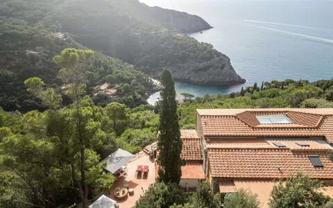 Ejendommen ligger i Cala Piccola-konsortiet, en gruppe villaer med udsigt over et af de smukkeste have i Argentario, med privat adgang til havet (klippe). Smuk, komfortabelt villa "Cala Piccola", på 3 etager, omgivet af træer. Ejendom bestående af hovedhus og udhus, Comprensorio Cala Piccola, 7 km fra bymidten af Porto Santo Stefano, rolig, solrige beliggenhed ved bakke, boligområde, 1.2 km fra havet, i det grønne. Til alene benyttelse: smuk, velplejet have i forskellige niveauer med blomster og træer. Terrasse, havemøbler, grill. I huset: solterrasse. Trappe (40 trin) til huset. Parkeringsplads (for 2 biler) på grunden. Supermarked 7 km, restaurant 250 m, bar 1.2 km, sandstrand "Giannella" 11 km, stenstrand "Cala Piccola" 1.2 km, varmtvandsbad "Saturnia" 60 km. Golfbane (18 hul) 14 km. Nærliggende attraktioner: Orbetello 16 km, Talamone 30 km, Porto Ercole 18 km, Capalbio / Giardino dei Tarocchi 40 km. Vandrestier Parco Naturale della Maremma 45 km. Bemærk venligst: bil anbefales, ingen elevator. Ikke egnet til småbørn. Det er ikke tilladt at afholde arrangementer. Gæsterne har en parasol og to liggestole til rådighed i den eksklusive badeanstalt i Cala Piccola med bar og snackbar og gratis shuttle-service. Åbningstid juni-september. Ca. 300 m fra huset ligger Boutique Hotel i Cala Piccola med en restaurant, der er åben fra morgenmad til aftensmad.
