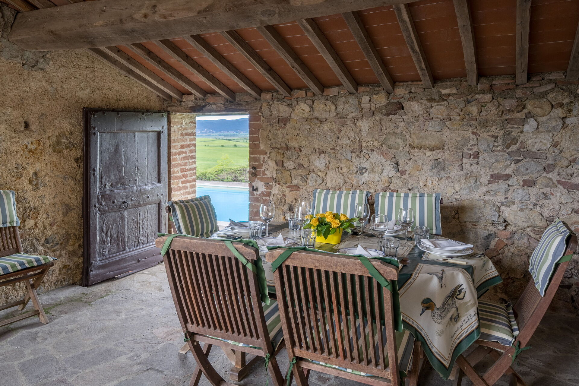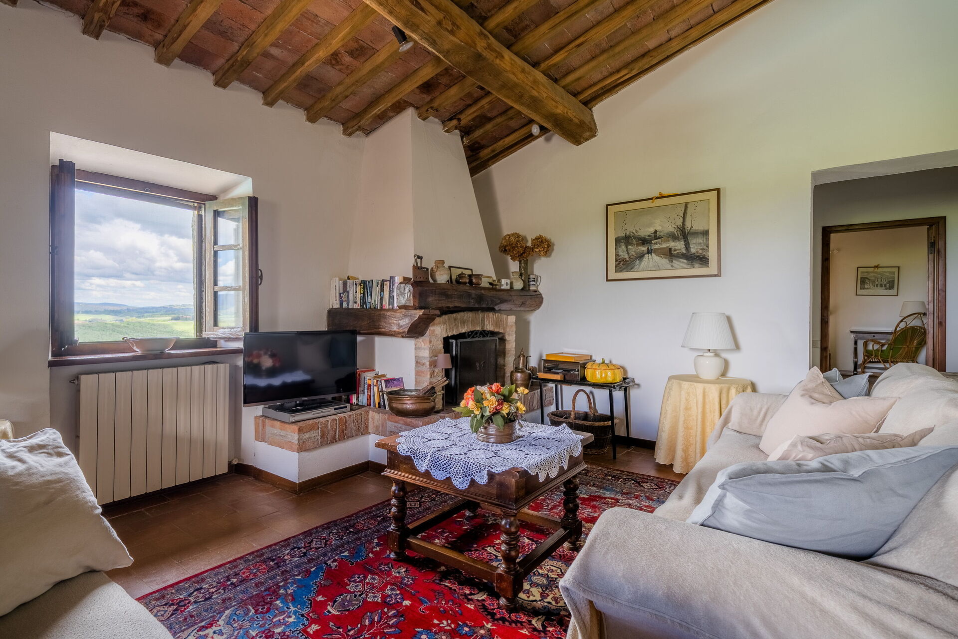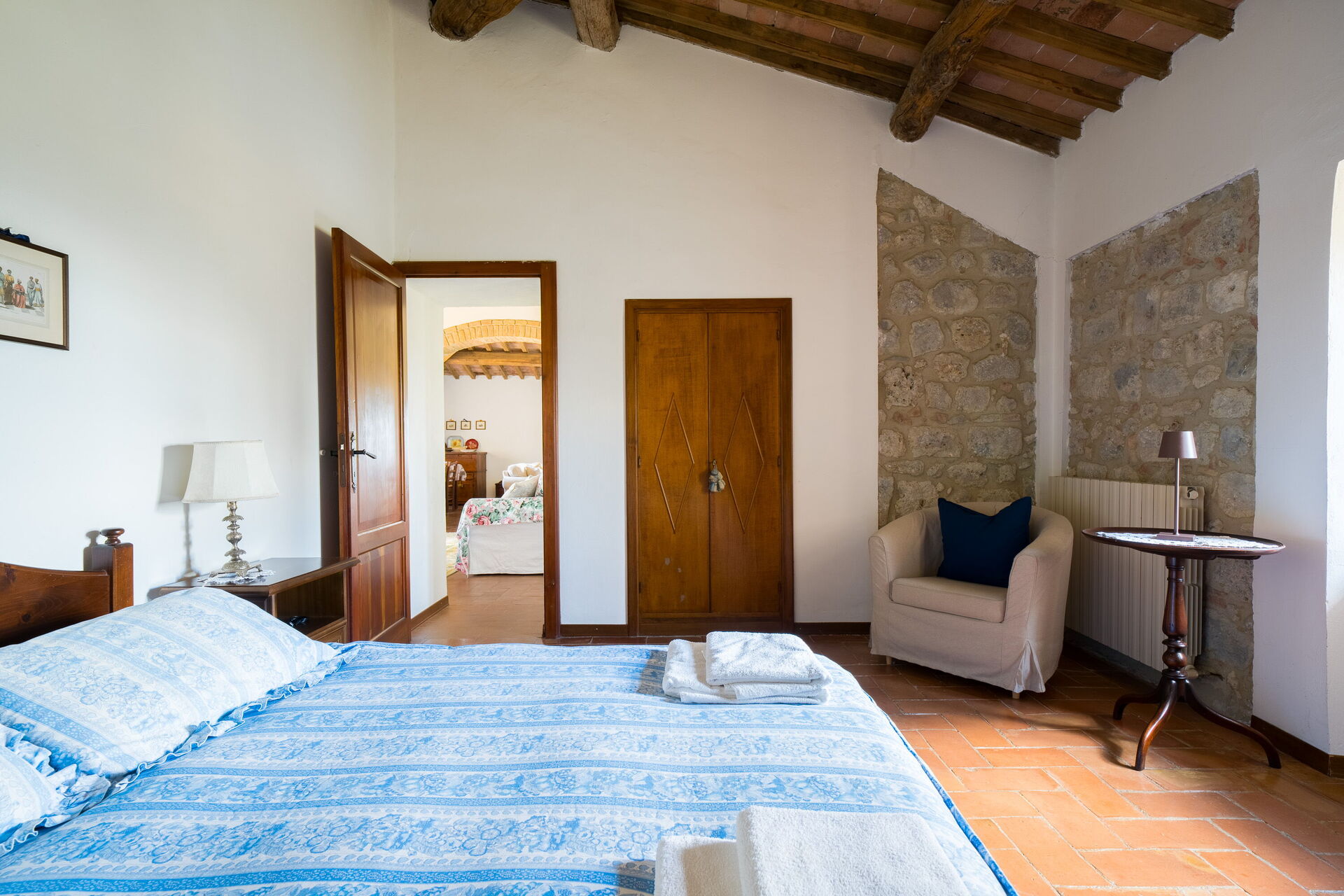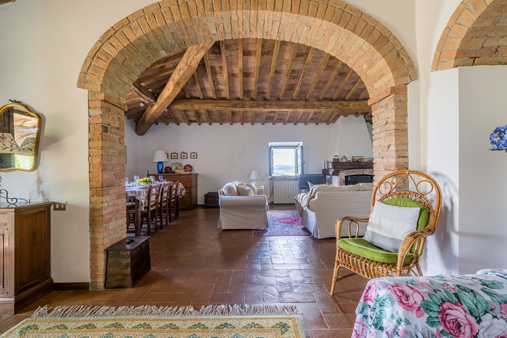 Når I ankommer, vil I møde en fin ren velholdt ejendom med udsigt over bakkerne perfekt til rolig ferie i Toscana. Uanset hvordan I tilbringer dagene - med shopping, sightseeing, museumsbesøg eller bare ved at køre rundt på landet, så kan I slappe af med familie og venner ved poolen, når I kommer hjem, hvilket er en perfekt måde at afslutte endnu en dejlig dag på i Toscana. Hvis I nyder at lave mad til familie og venner så er der et veludstyret køkken inkluderet kaffemaskine, brødrister, komfur og køleskab, samt, , samt masser af service og bestik til op til seks personer.