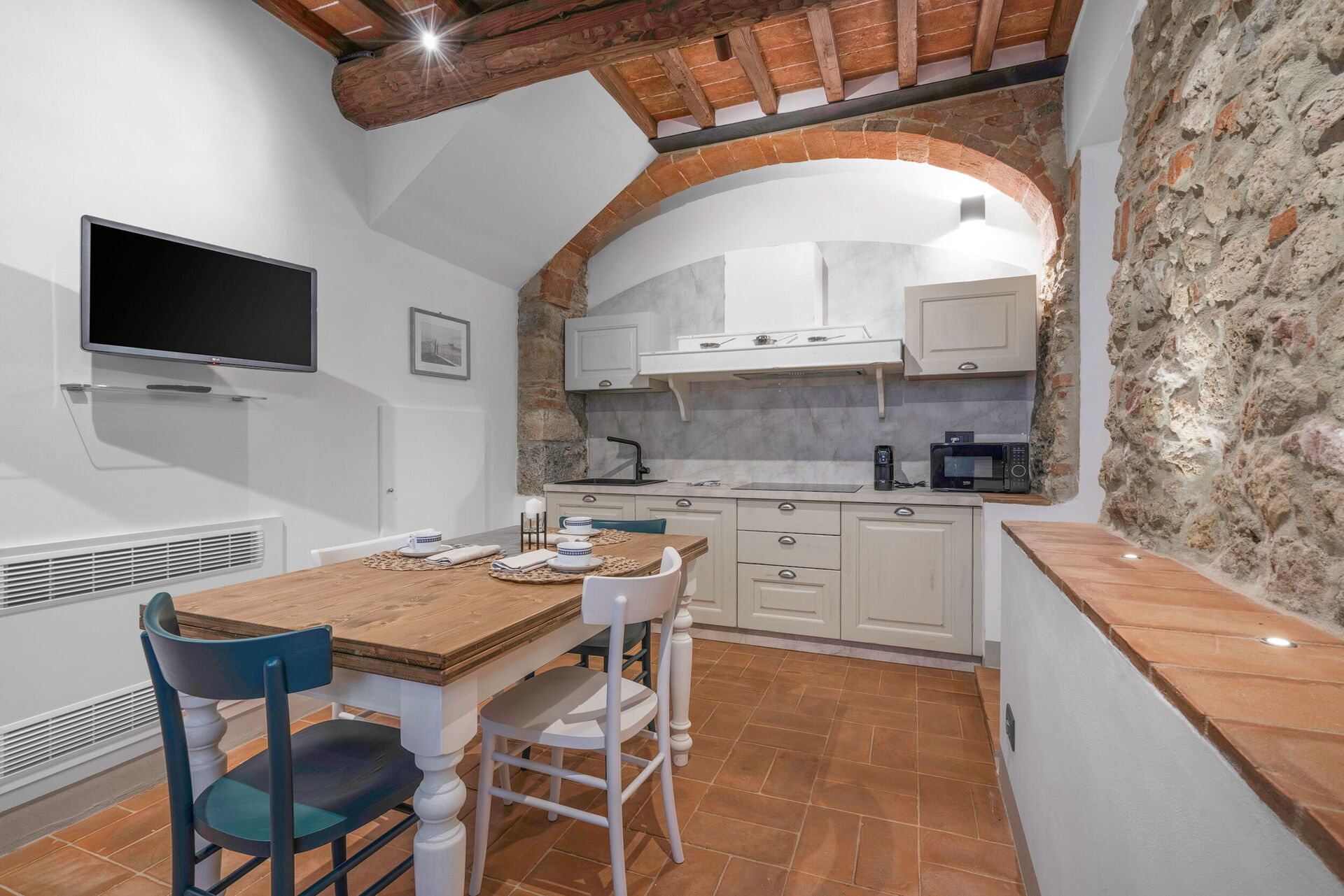 Når I ankommer, vil I møde en skøn ren velholdt ejendom med udsigt over bakkerne ideel til afslappende ferie i Toscana. Til jeres store glæde vil I finde en fælles pool, hvor I kan slappe af, mens I nyder en dejlig kold drik efter en hektisk dag med museumsbesøg. At nyde et måltid med venner og familie er en kæmpe del af den toskanske kultur. Benyt det velekviperede køkken til madlavning med lokale produkter, når du er på ferie. Køkkenet indeholder kaffemaskine, mikroovn, komfur og køleskab, samt, masser af service og bestik til op til fire personer.