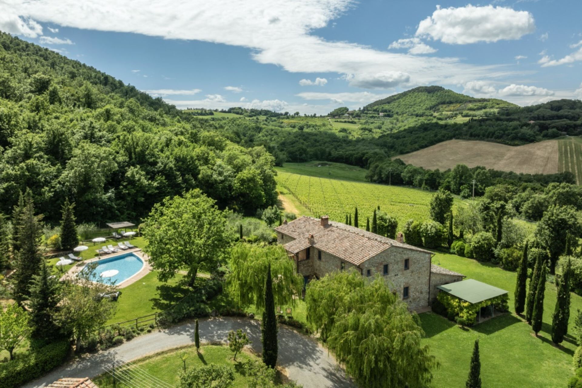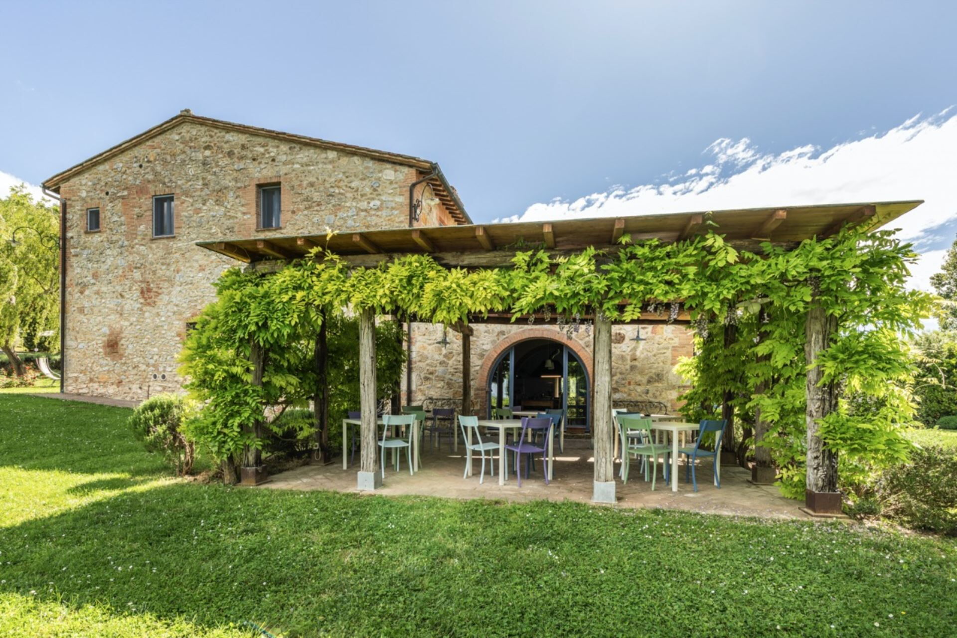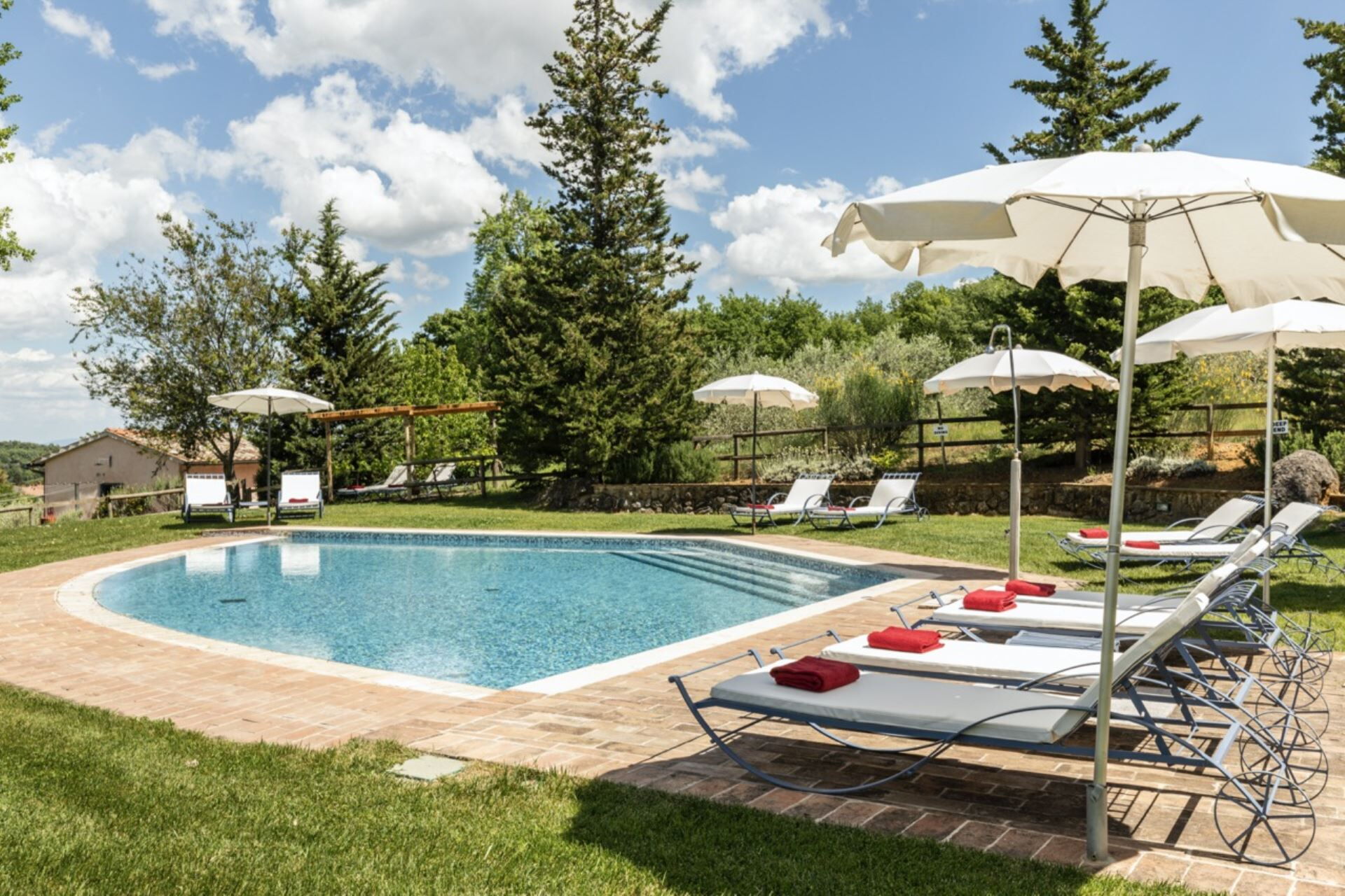 Ejendommen byder på en privat ikke-opvarmet swimmingpool, der måler 8 gange 16 meter med en dybde på 1,4 meter, tilgængelig for Deres fornøjelse fra 15. maj til 30. september. De vil opdage en naturlig dam i den vidtstrakte have, som smukt er omkranset af skov og olivenlunde, hvilket skaber et roligt miljø til udendørs afslapning. En pavillon udstyret med borde og stole er placeret direkte foran køkkenet og tilbyder et ideelt rum til spisning under åben himmel, mens De nyder det maleriske toskanske landskab. Håndklæder til poolen er tilgængelige for Deres bekvemmelighed, og hele ejendommen er indhegnet, hvilket sikrer privatliv og sikkerhed under Deres ophold.