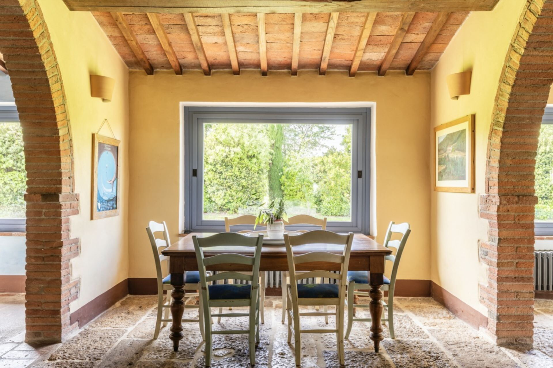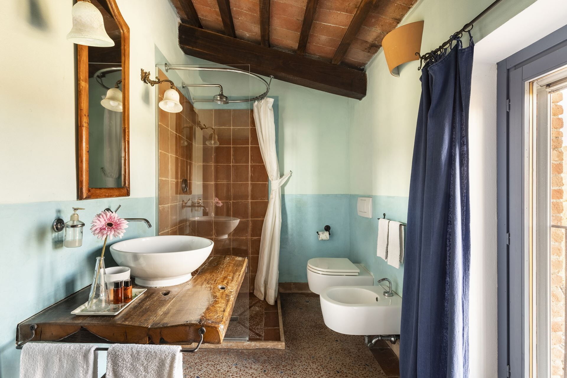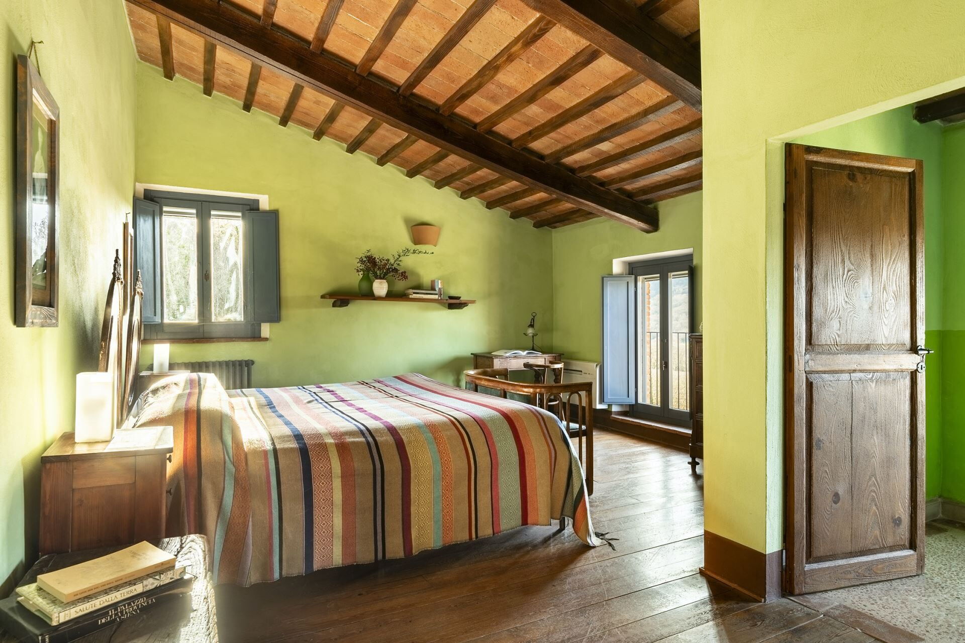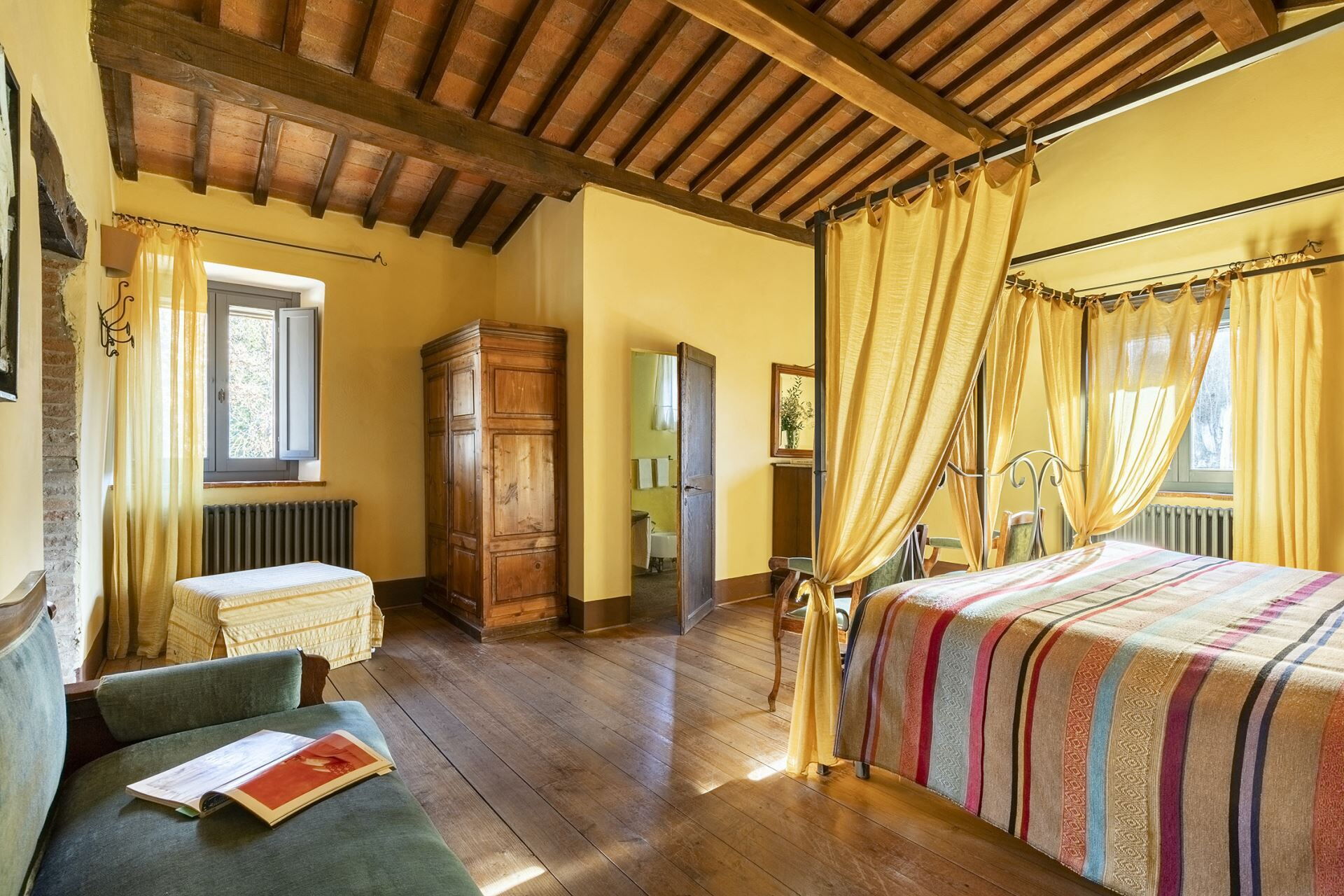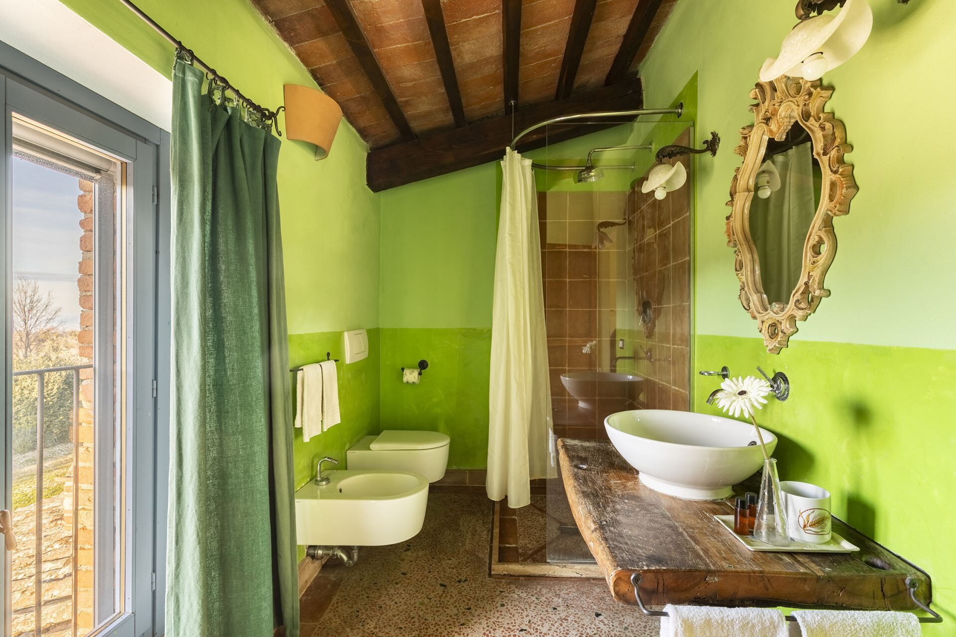 Denne fritliggende bondegårdsferiebolig strækker sig over 450 kvadratmeter og ligger indlejret på skråningerne af Monte Cappuccini, som adskiller Val d'Orcia fra Val di Chiana i Montepulciano, Italien. Ejendommen er for nylig blevet restaureret med omhyggelig opmærksomhed på interiørindretningen og fremviser autentiske antikke møbler, traditionelle terracottalofter og antikke parketgulve, der legemliggør ægte toskansk stil. De vil opleve, at denne fritliggende bolig tilbyder både afslapning og nem adgang til at udforske de omkringliggende vingårde og olivenlunde, der karakteriserer områdets bakker og sletter. Ejendommen tilbyder bekvem parkering på stedet og gratis internetforbindelse via Wi-Fi gennem hele Deres ophold, hvilket sikrer, at De forbliver forbundet, mens De nyder det toskanske landskabs ro.