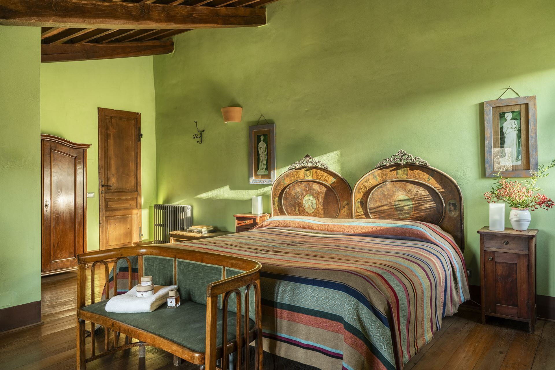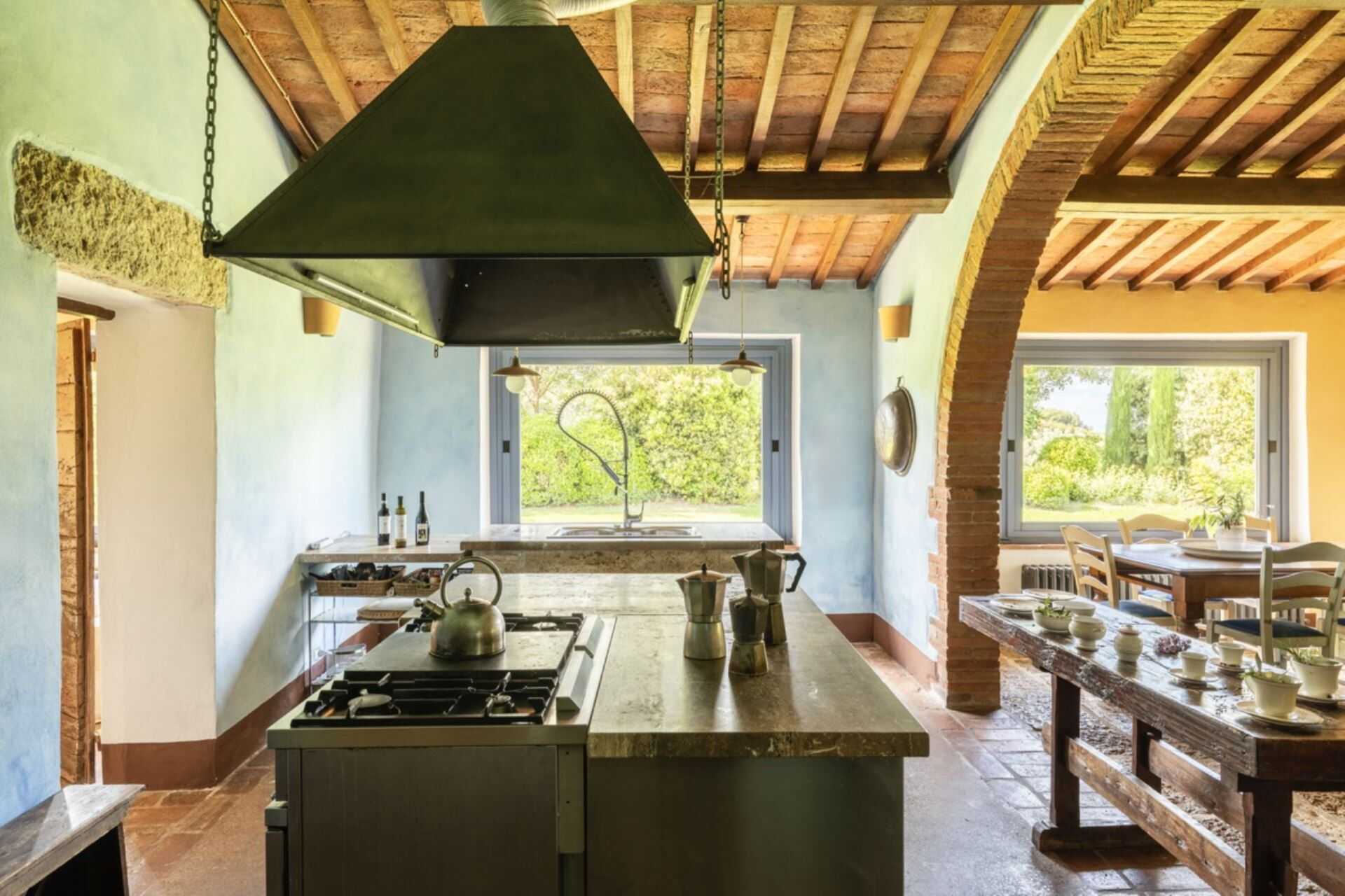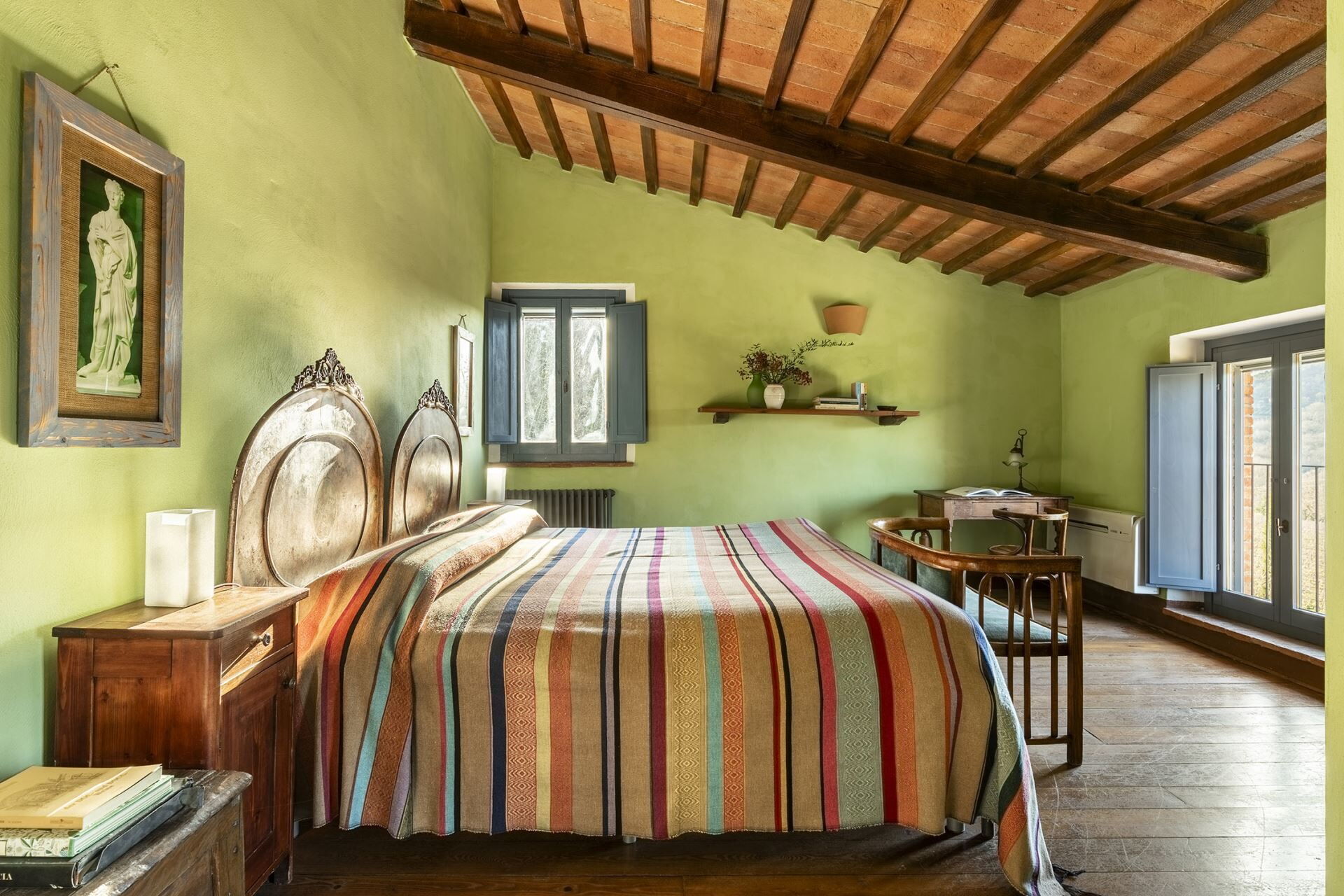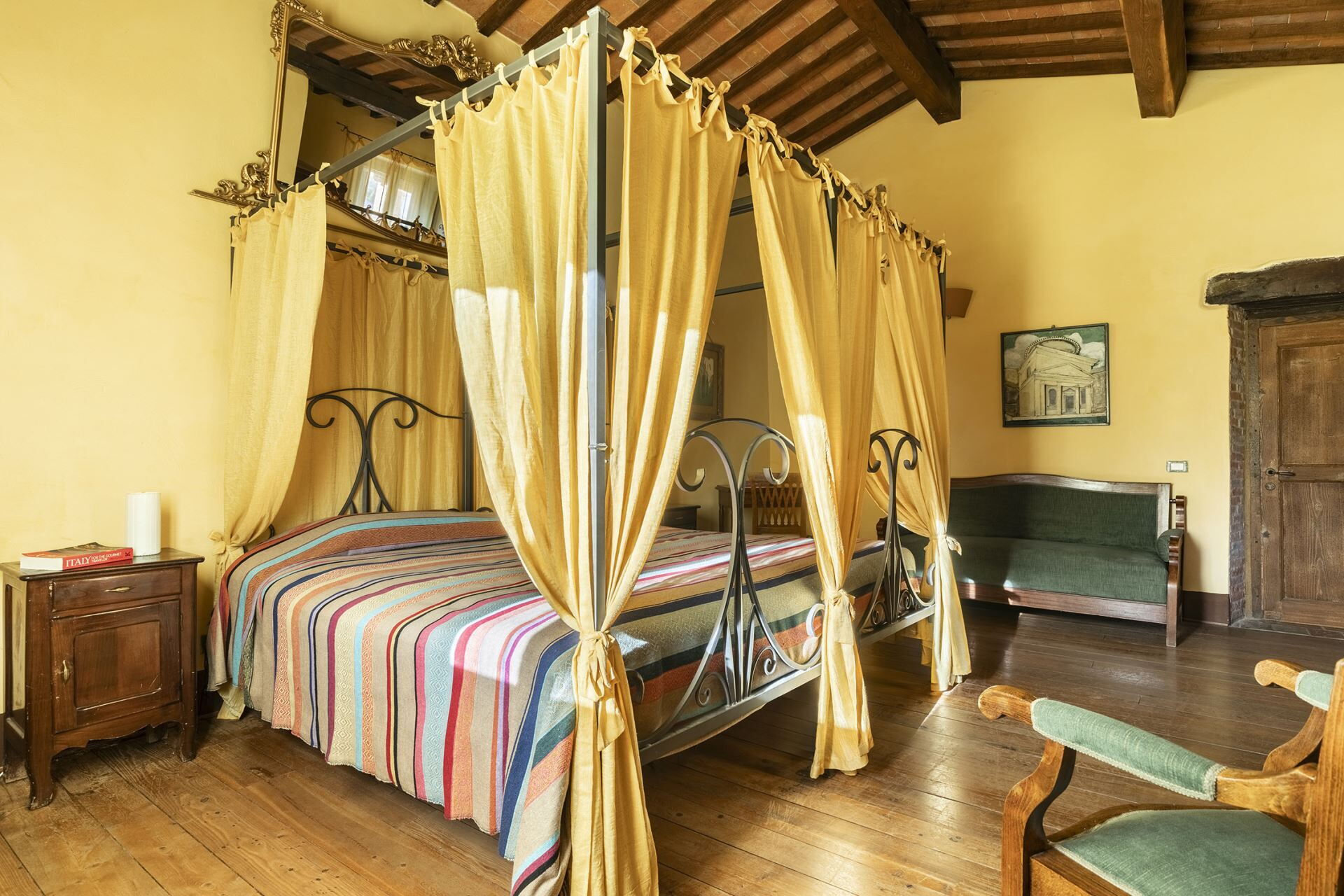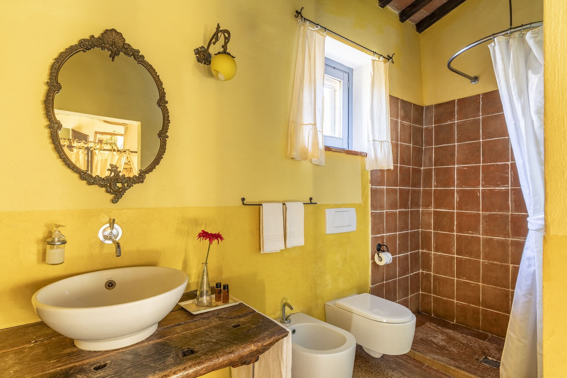 Denne fritliggende bondegårdsferiebolig strækker sig over 450 kvadratmeter og ligger indlejret på skråningerne af Monte Cappuccini, som adskiller Val d'Orcia fra Val di Chiana i Montepulciano, Italien. Ejendommen er for nylig blevet restaureret med omhyggelig opmærksomhed på interiørindretningen og fremviser autentiske antikke møbler, traditionelle terracottalofter og antikke parketgulve, der legemliggør ægte toskansk stil. De vil opleve, at denne fritliggende bolig tilbyder både afslapning og nem adgang til at udforske de omkringliggende vingårde og olivenlunde, der karakteriserer områdets bakker og sletter. Ejendommen tilbyder bekvem parkering på stedet og gratis internetforbindelse via Wi-Fi gennem hele Deres ophold, hvilket sikrer, at De forbliver forbundet, mens De nyder det toskanske landskabs ro.