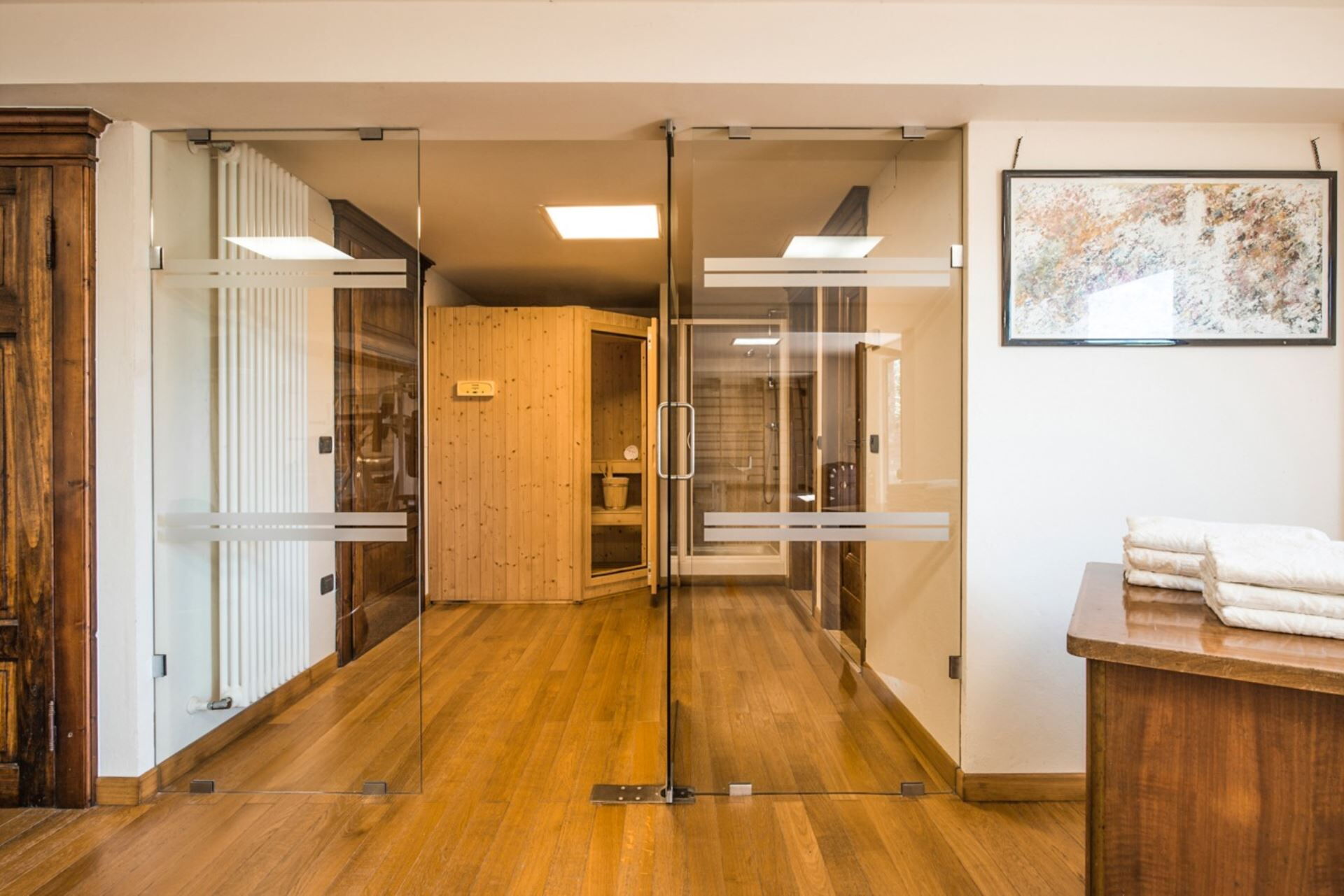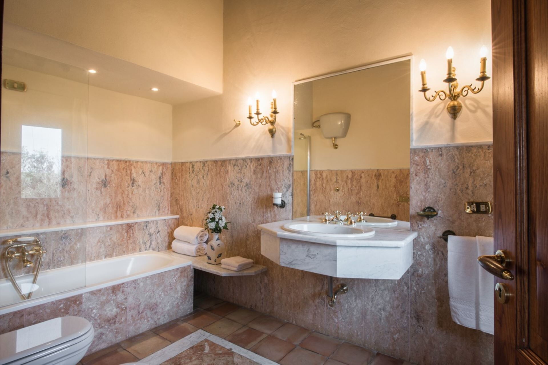 Denne rummelige indkvartering består af 9 soveværelser og 7 badeværelser, der komfortabelt giver soveplads til 18 gæster fordelt på hovedbygningen og dependancen. Hovedbygningen har plads til 14 gæster og er fordelt over to etager. På stueetagen finder De en stor intern gårdhave, en formel spisestue og en vidtstrakt stue med pejs, billardbord og CD-afspiller. Et separat rum har satellit-tv, mens det store, fuldt udstyrede køkken inkluderer pejs, ovn, køleskab med isterningedispenser, fryser og opvaskemaskine. Et gæstetoilet og en kælderkælder kompletterer dette niveau. Første sal præsenterer en rummelig stue med pejs, computer, printer og faxfaciliteter. Sovekvarteret omfatter et dobbeltværelse med eget badeværelse med badekar, et dobbeltværelse med eget badeværelse med bruser og tyrkisk bad samt en storslået stor dobbeltsuite bestående af et studie, påklædningsrum og eget badeværelse med hydromassagebadekar. Desuden finder De et dobbeltværelse, et badeværelse med badekar, endnu et dobbeltværelse samt to dobbeltværelser, der deler et eget badeværelse med badekar. Et vinterværelse med pejs giver yderligere opholdsrum. Dependancen har soveplads til 4 gæster og har en stue, køkken og to dobbeltværelser, hver med eget badeværelse udstyret med bruser.