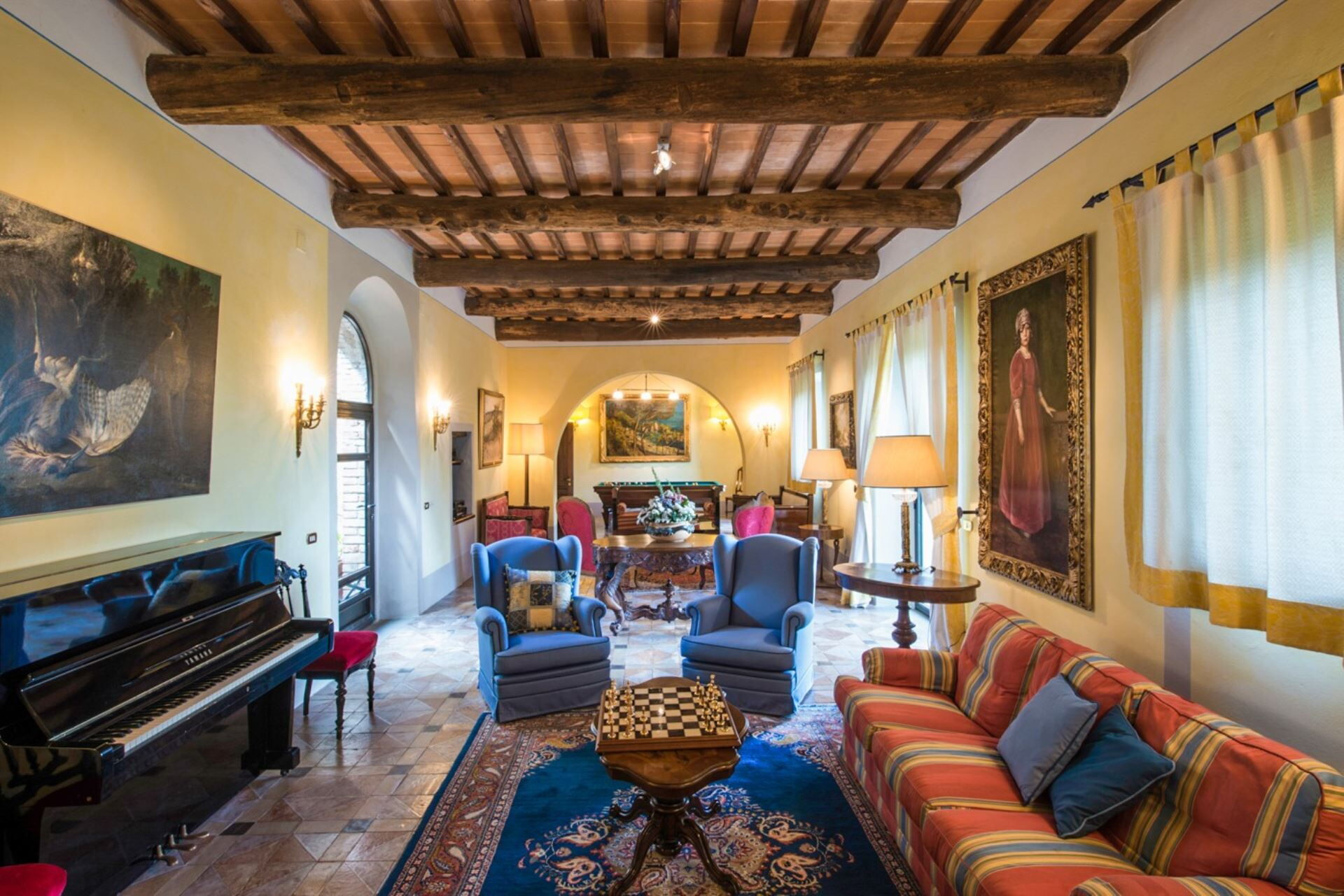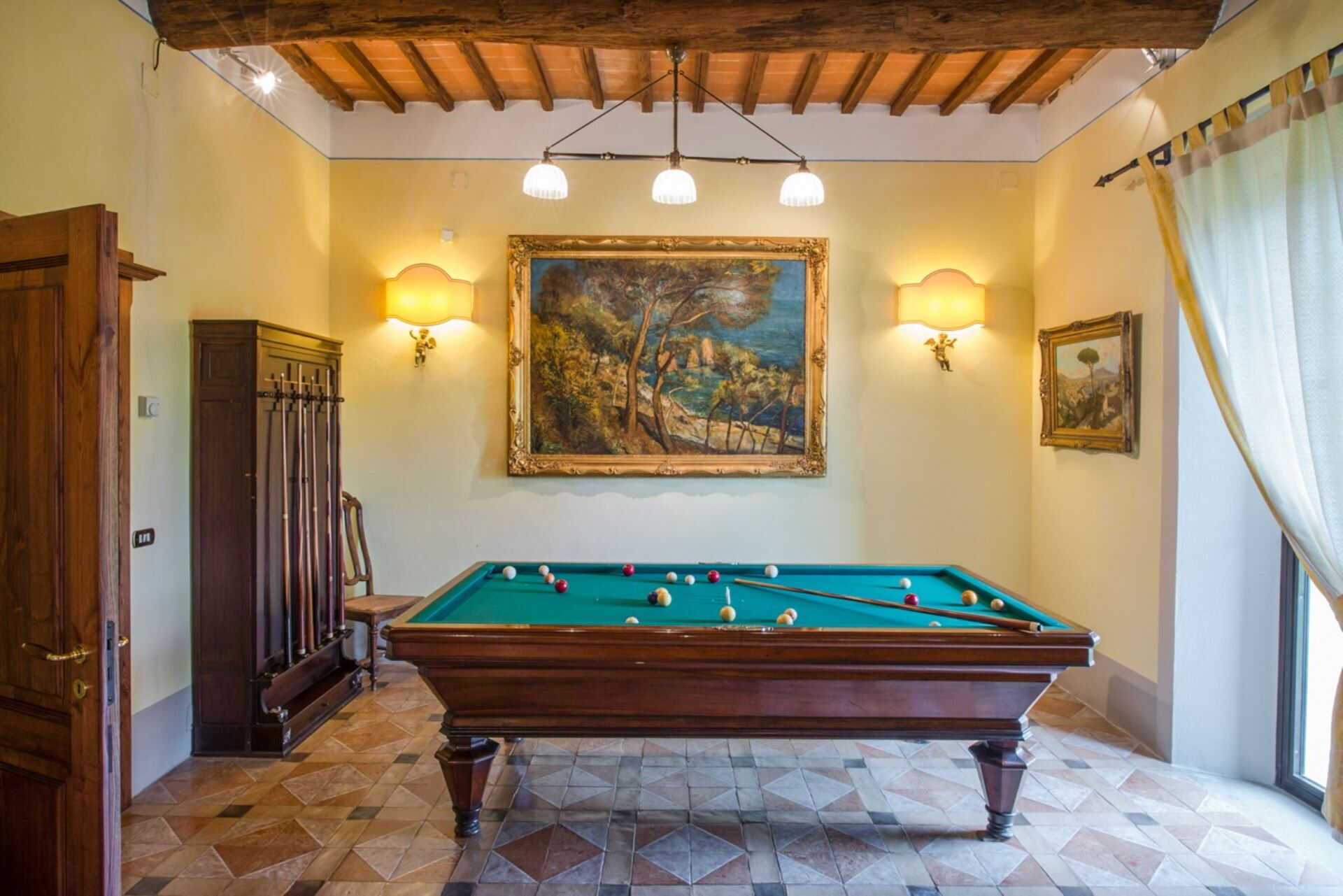 Udendørsarealerne på denne bemærkelsesværdige ejendom er designet til både afslapning og rekreation. Swimmingpoolen måler 15 x 7,5 meter og er i drift fra 01/05 til 31/10, hvilket giver et forfriskende tilflugtssted i de varmere måneder. Ved siden af poolen finder De en nyligt restaureret bygning udstyret med køkken, grillfaciliteter, badeværelse med bruser og stereosystem, der skaber en ideel ramme for udendørs underholdning. Ejendomen har en tennisbane med en professionel rød grusoverflade, perfekt til venskabelige kampe og konkurrencepræget spil. For fodboldentusiaster er der en fodboldbane til boldspil med fem spillere per hold, mens de, der søger mere afslappede aktiviteter, kan nyde et parti bowls. Hovedbygningens stueetage åbner ud til en stor intern gårdhave, hvor De kan spise udendørs og nyde det fantastiske toskanske landskab. En traditionel pizzaovn bidrager til de udendørs kulinariske muligheder og giver Dem mulighed for at skabe autentiske italienske måltider i det fri.
