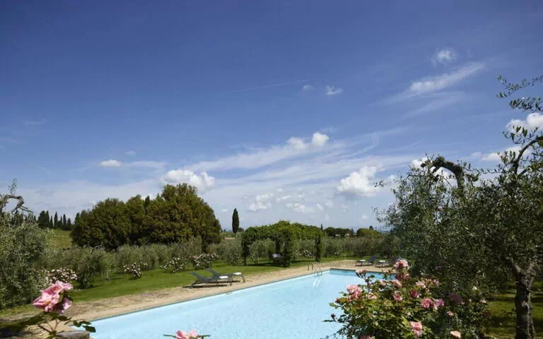 La Villa del Riccio nyder en privilegeret position i hjertet af den berømte Chianti-vinregion og placerer Dem inden for nem rækkevidde af nogle af Toskanas mest fejrede destinationer. Villaens beliggenhed nær Tavarnelle Val Di Pesa giver bekvem adgang til charmerende middelalderlige byer, vinproducenter i verdensklasse og autentiske toskanske oplevelser. Det omkringliggende landskab, karakteriseret ved bølgende bakker dækket med vingårde og olivenlunde, byder på utallige muligheder for maleriske køreture, cykeludflugt og afslappede gåture gennem landskabet. Området er prikket med historiske landsbyer, hvor De kan udforske lokale markeder, håndværksbutikker og traditionelle restauranter, der serverer regionale specialiteter. Vinentusiaster vil befinde sig omgivet af prestigefyldte Chianti Classico-ejendomme, der tilbyder rundvisninger og smagninger. Den strategiske beliggenhed giver mulighed for dagsture til Firenze, Siena og andre ikoniske toskanske byer, hver rig på renæssancekunst, arkitektur og kulturarv. Lokale oliveolieproducenter og vingårde byder besøgende velkommen til at opdage de landbrugstraditioner, der har formet dette landskab gennem århundreder.