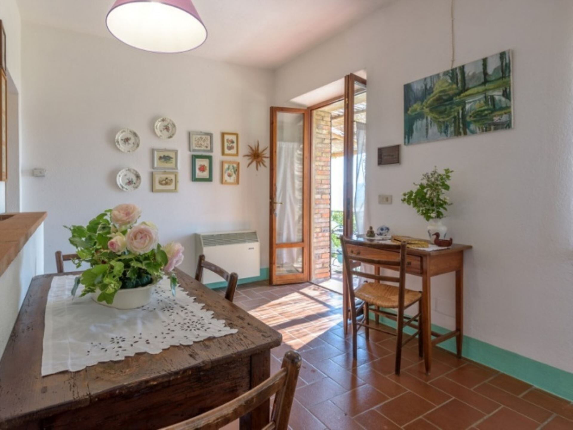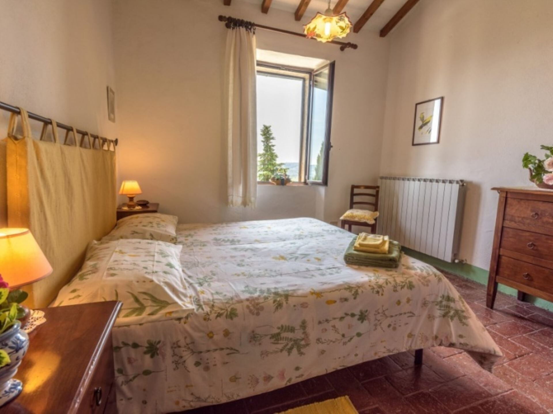Podere del Mezzadro er et typisk delbrugerlandsted bygget i begyndelsen af århundredet, som tilbyder autentisk indkvartering til Deres ophold i Radicofani, Italien. Denne uafhængige feriebolig byder Dem velkommen med sin fantastiske panoramabeliggenhed, placeret på toppen af en kornmark-dækket bakke cirka 1 km fra byen Contignano. Ejendommen tilbyder et ekstraordinært panorama, der strækker sig fra Monte Amiata til bakkerne ved Pienza og skaber en betagende baggrund for Deres ferie. De vil have fordel af bekvemme parkeringsfaciliteter og pålidelig Internet Wi-Fi under hele Deres ophold, hvilket sikrer både komfort og forbindelse i Deres tid på denne bemærkelsesværdige ejendom.