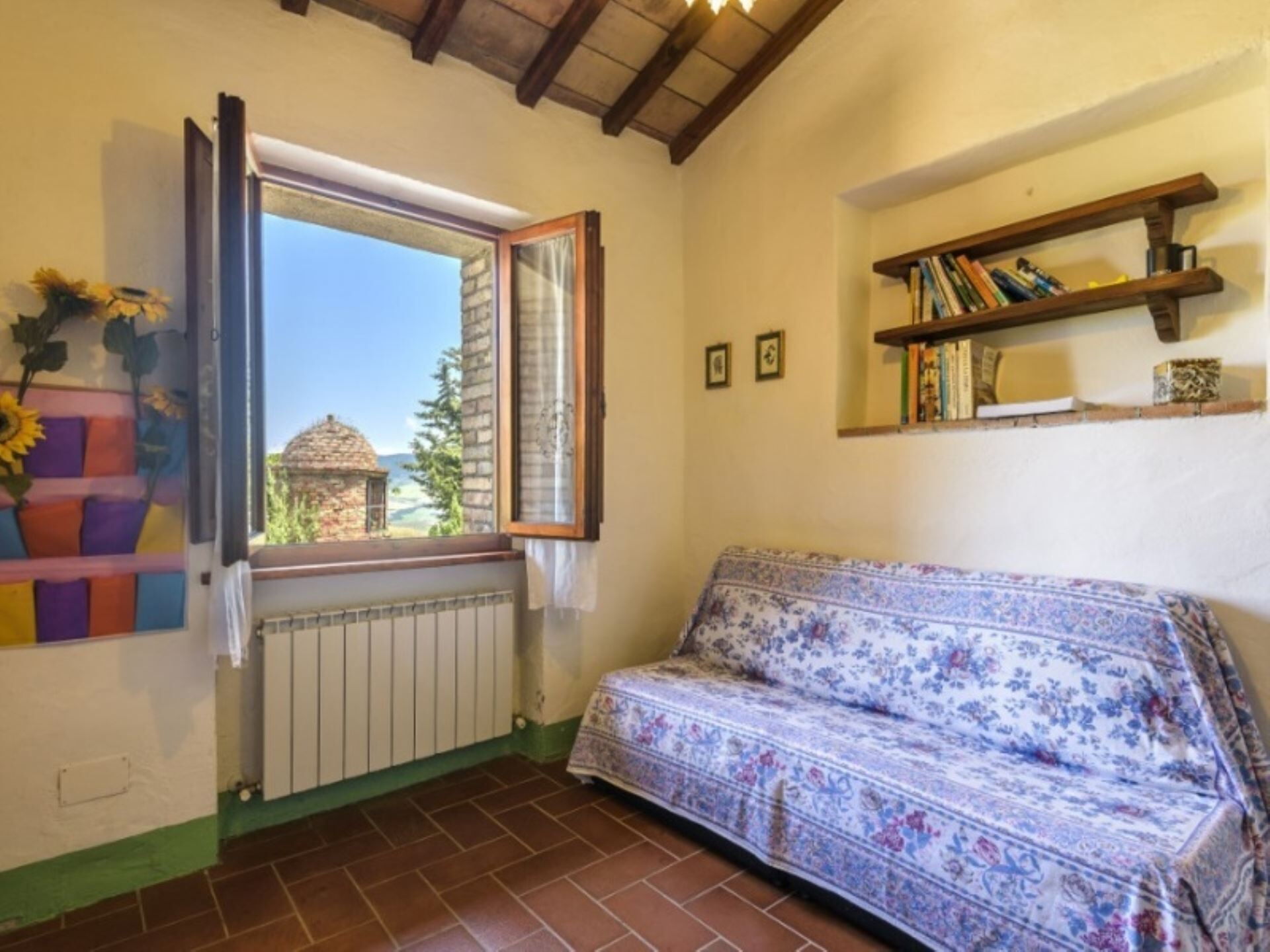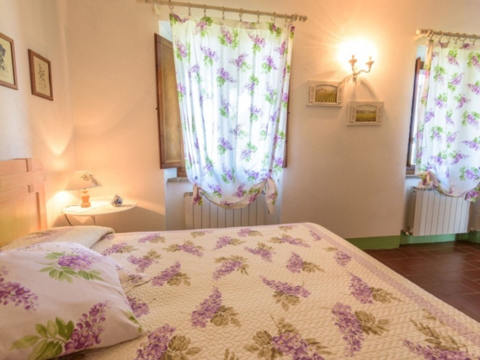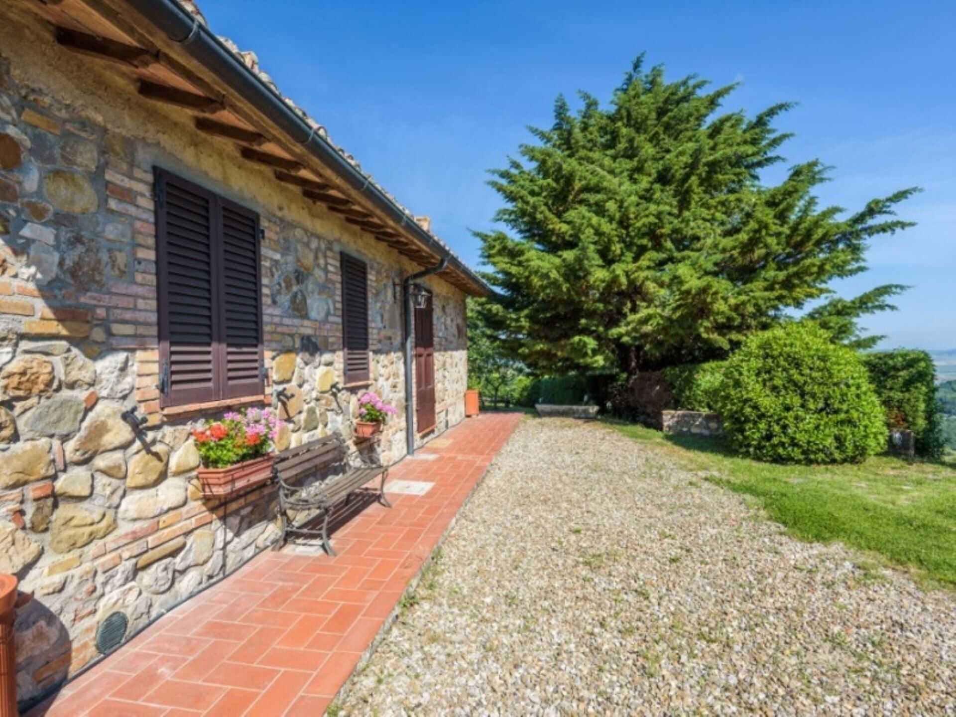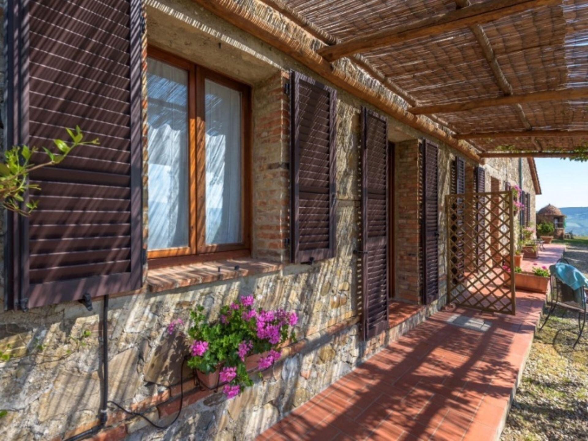 Podere del Mezzadro nyder en privilegeret placering cirka 1 km fra byen Contignano, hvilket giver nem adgang til lokale faciliteter, samtidig med at der opretholdes et fredeligt landligt miljø. Ejendommens forhøjede beliggenhed på bakketoppen tilbyder storslået udsigt, der strækker sig fra Monte Amiata til bakkerne ved Pienza, så De kan værdsætte det karakteristiske landskab i Val d'Orcia-regionen. De omkringliggende kornmark-dækkede bakker skaber et typisk toskansk panorama og placerer Dem inden for rækkevidde af områdets berømte attraktioner, historiske byer og fejrede vinegne.