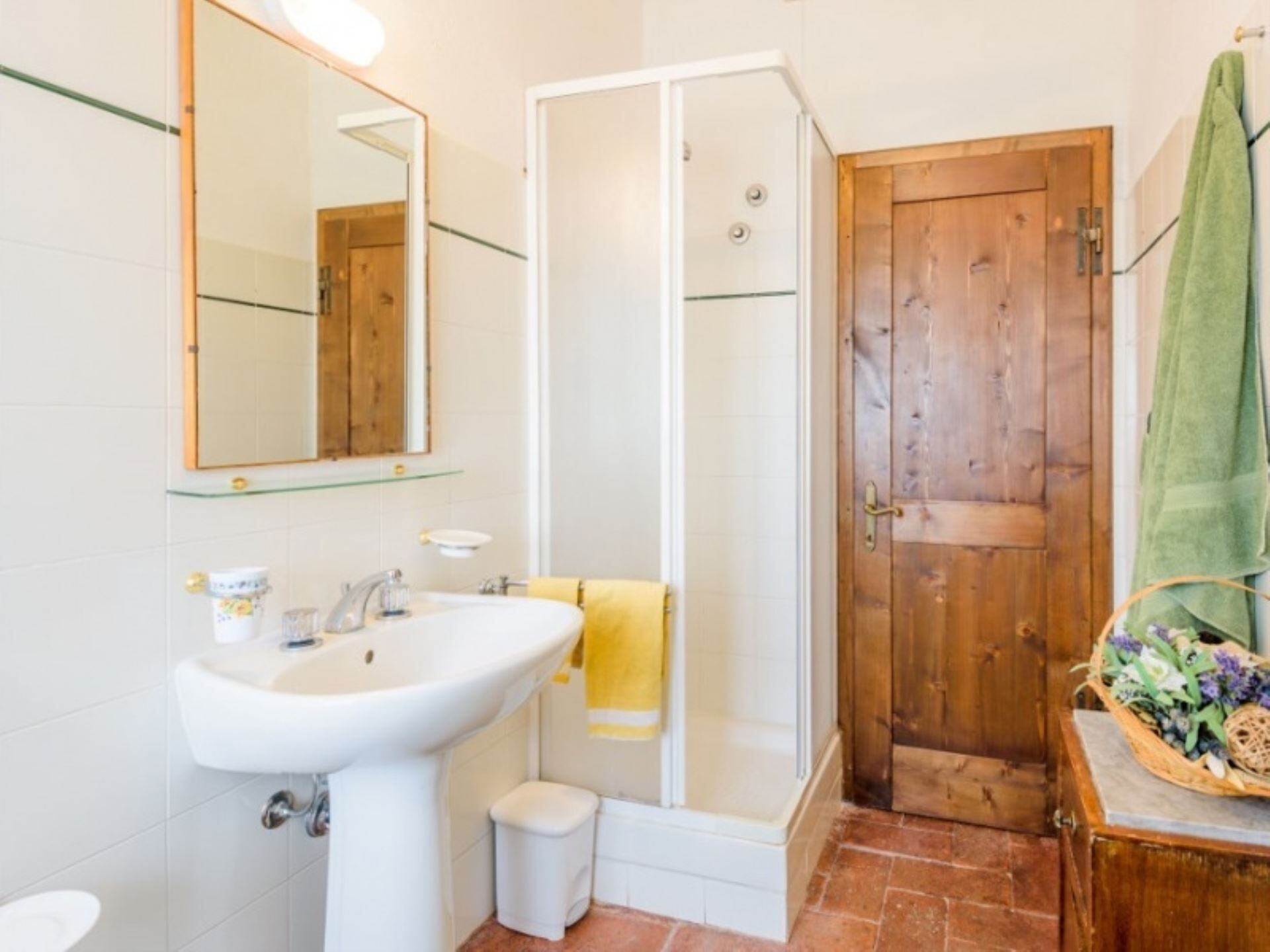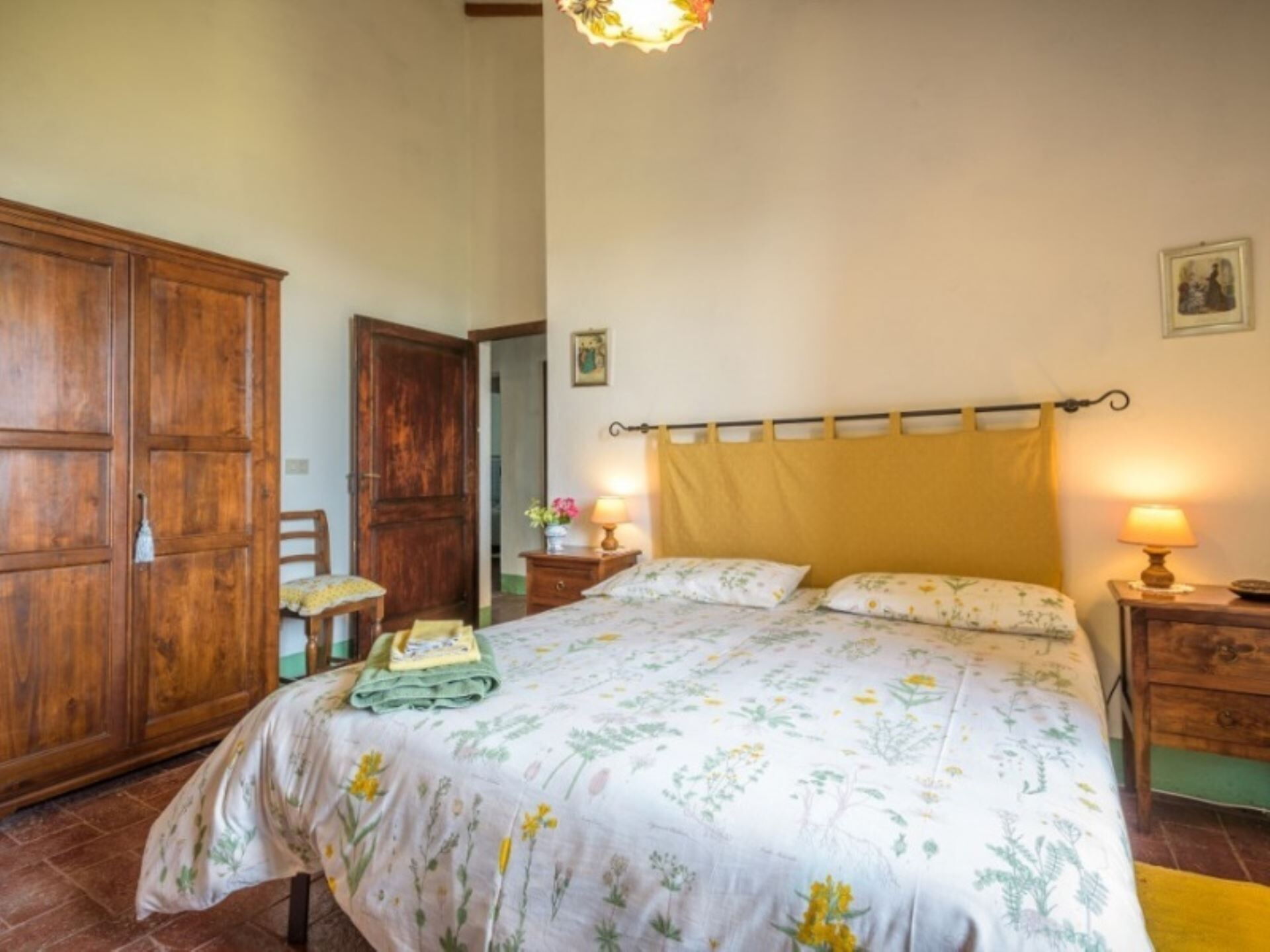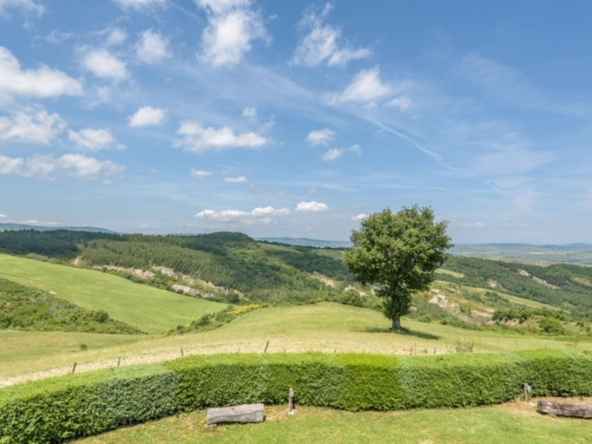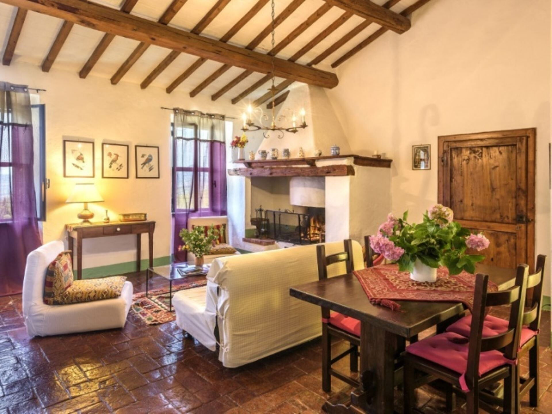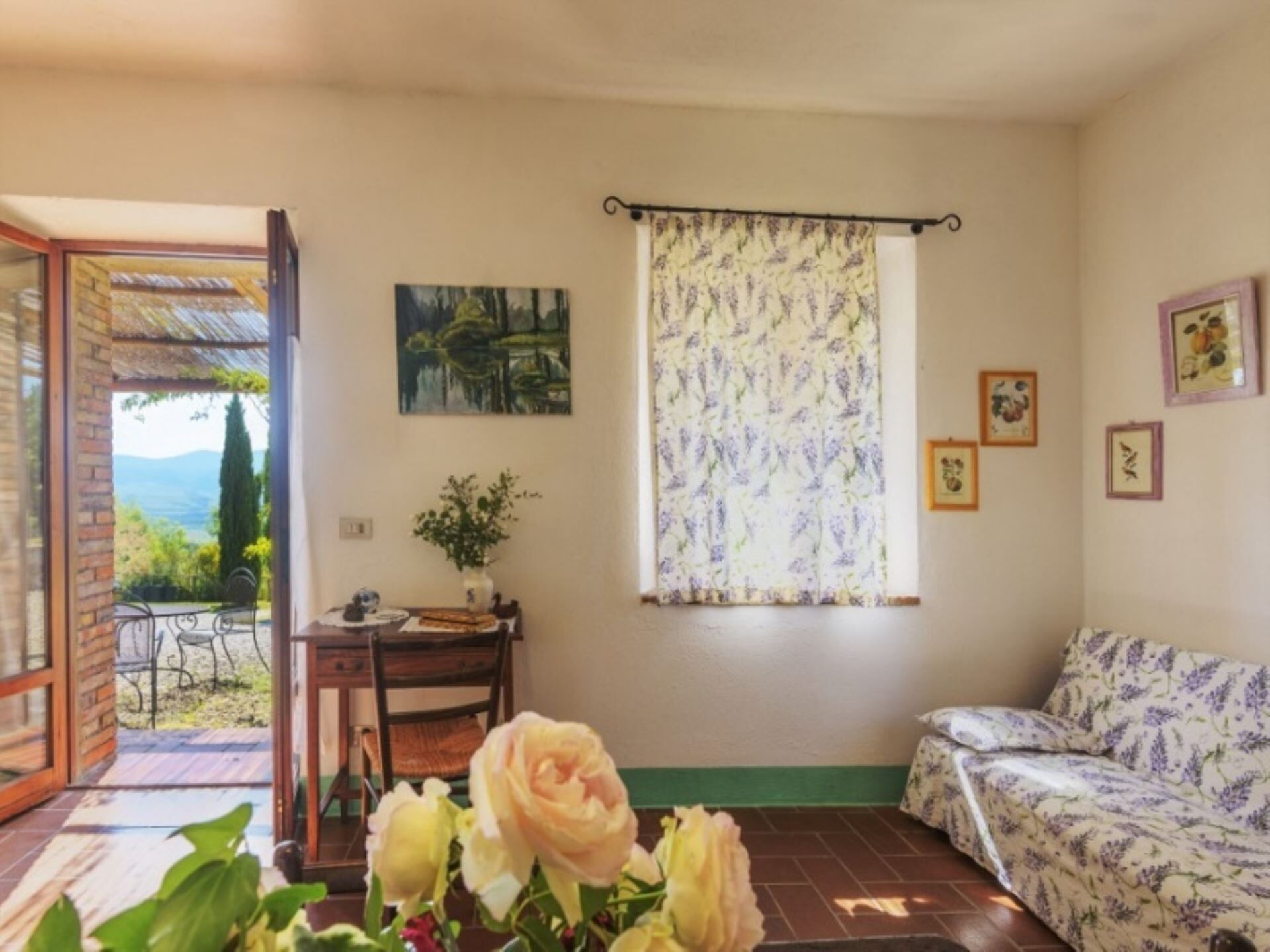 Podere del Mezzadro nyder en privilegeret placering cirka 1 km fra byen Contignano, hvilket giver nem adgang til lokale faciliteter, samtidig med at der opretholdes et fredeligt landligt miljø. Ejendommens forhøjede beliggenhed på bakketoppen tilbyder storslået udsigt, der strækker sig fra Monte Amiata til bakkerne ved Pienza, så De kan værdsætte det karakteristiske landskab i Val d'Orcia-regionen. De omkringliggende kornmark-dækkede bakker skaber et typisk toskansk panorama og placerer Dem inden for rækkevidde af områdets berømte attraktioner, historiske byer og fejrede vinegne.