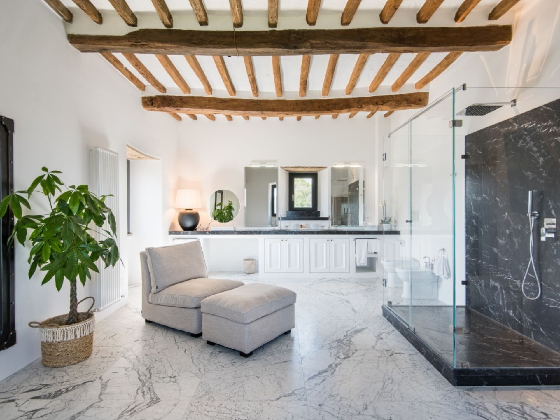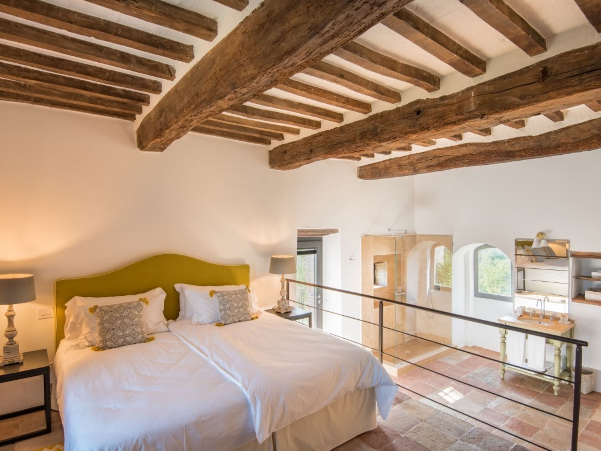 Villa Ugo forener gammel charme med moderne bekvemmeligheder og rummer 10 luksuriøse soveværelser, hver møbleret med en king size-seng og et privat marmorbadeværelse. Hovedbygningen huser 6 af disse pragtfulde soveværelser, mens de resterende 4 ligger i den tilstødende anneksbygning. To fuldt udstyrede køkkener, ét i hver bygning, imødekommer dine kulinariske behov med moderne apparater som opvaskemaskiner, køleskabe, ovne og mikroovne.