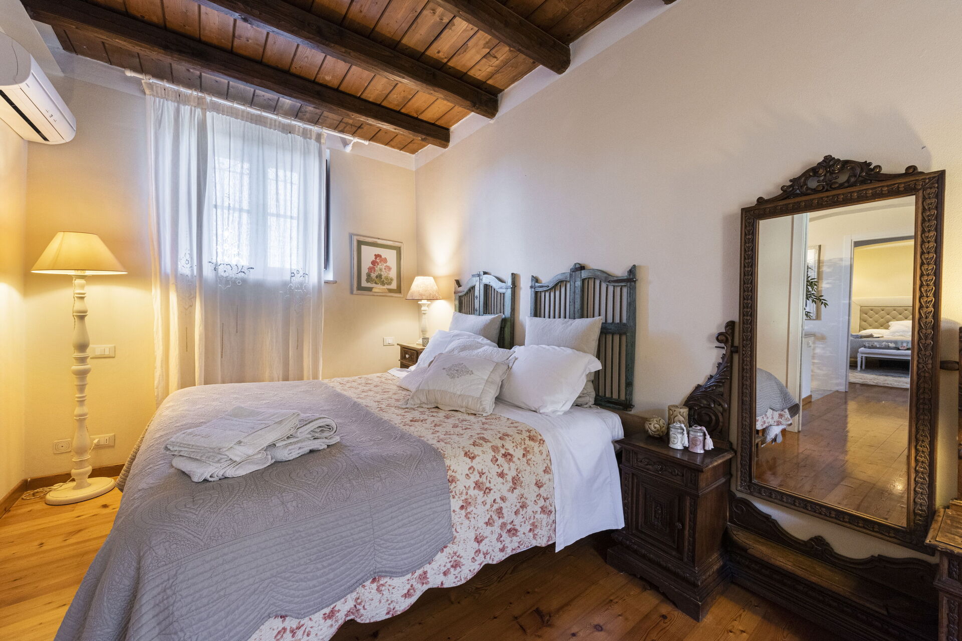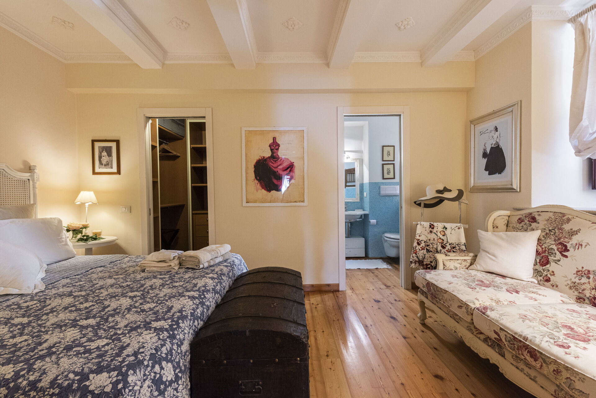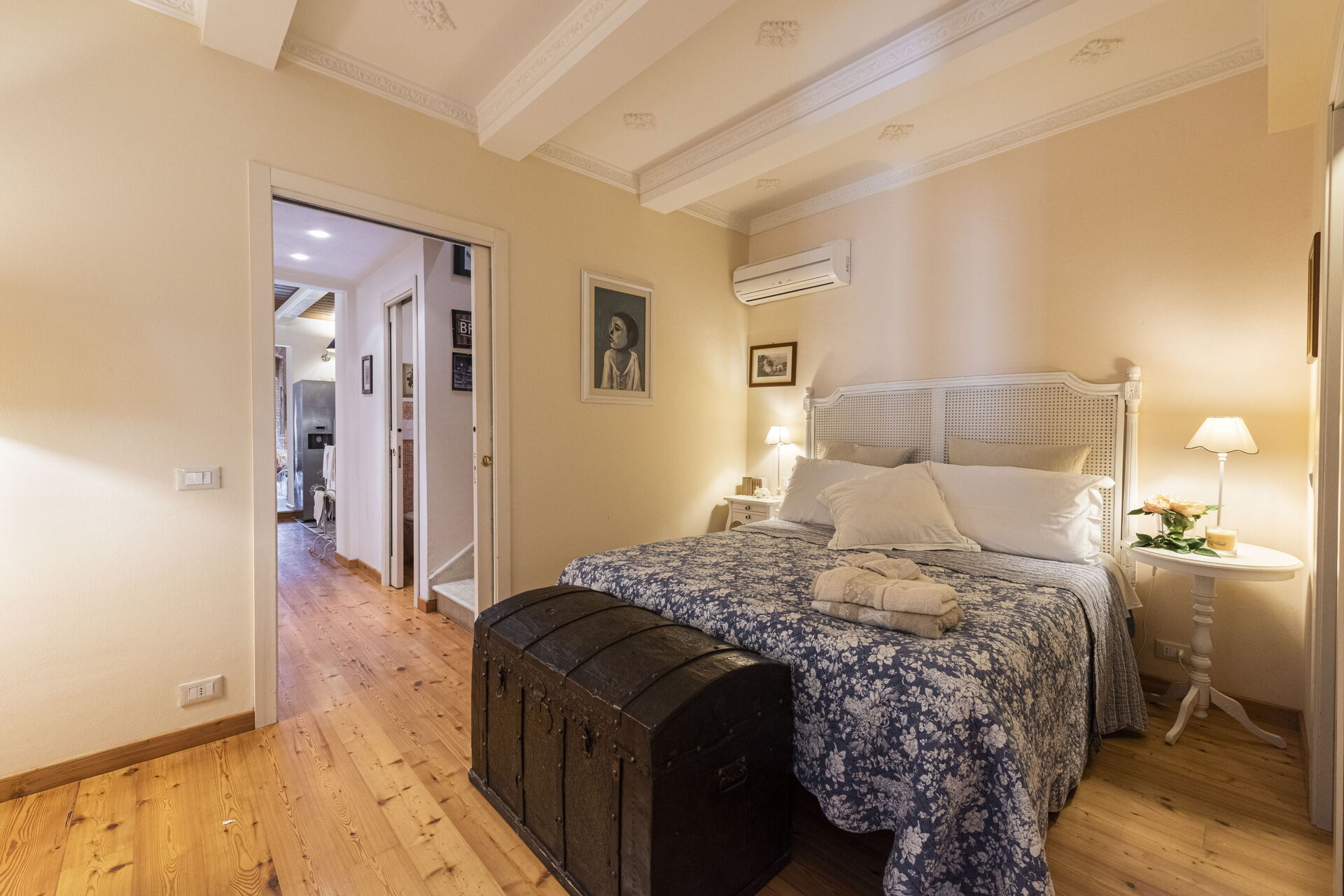 Soveværelse med bad: dobbeltseng, WIFI internet, klimaanlæg, vask, wc, bidet, bruser.