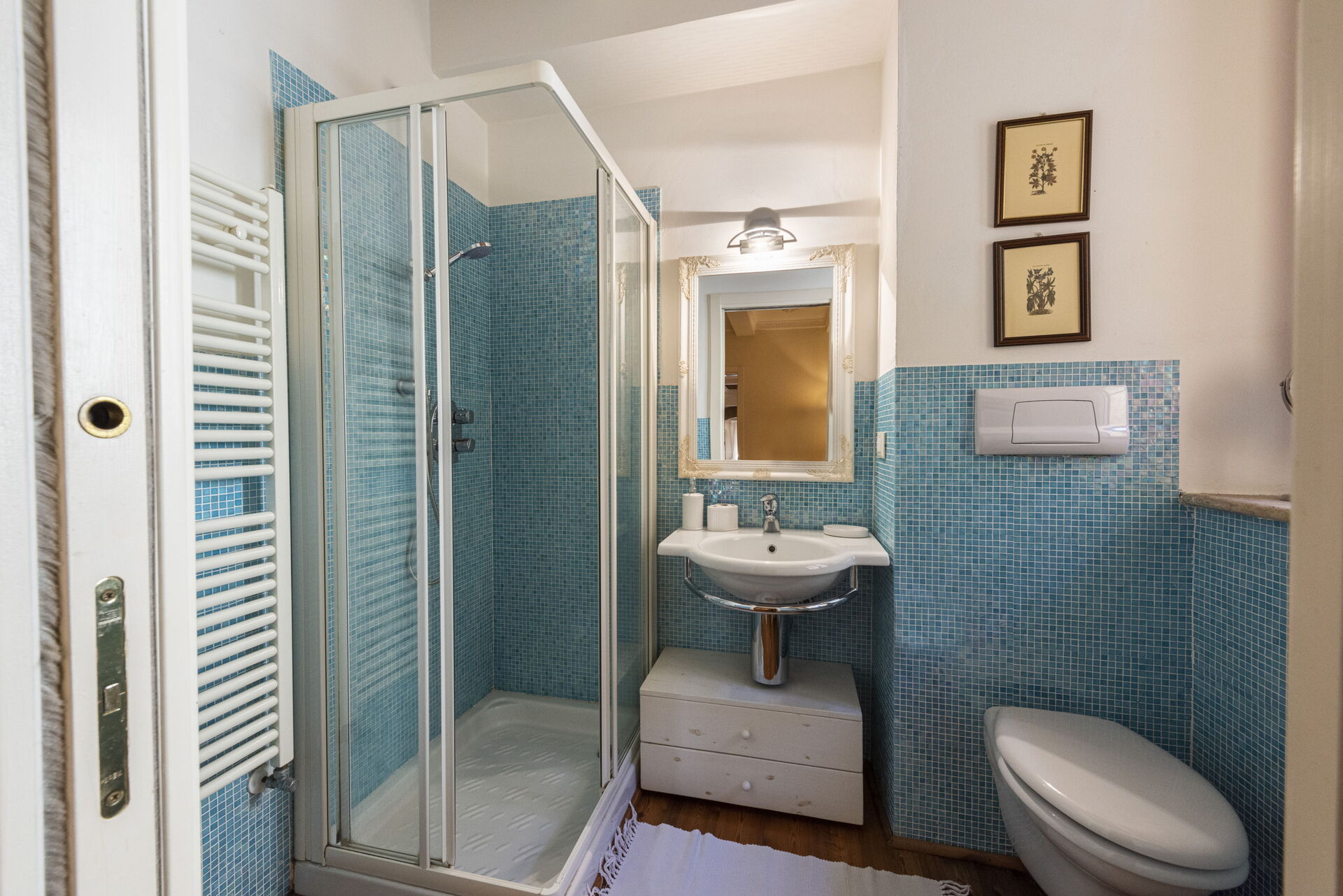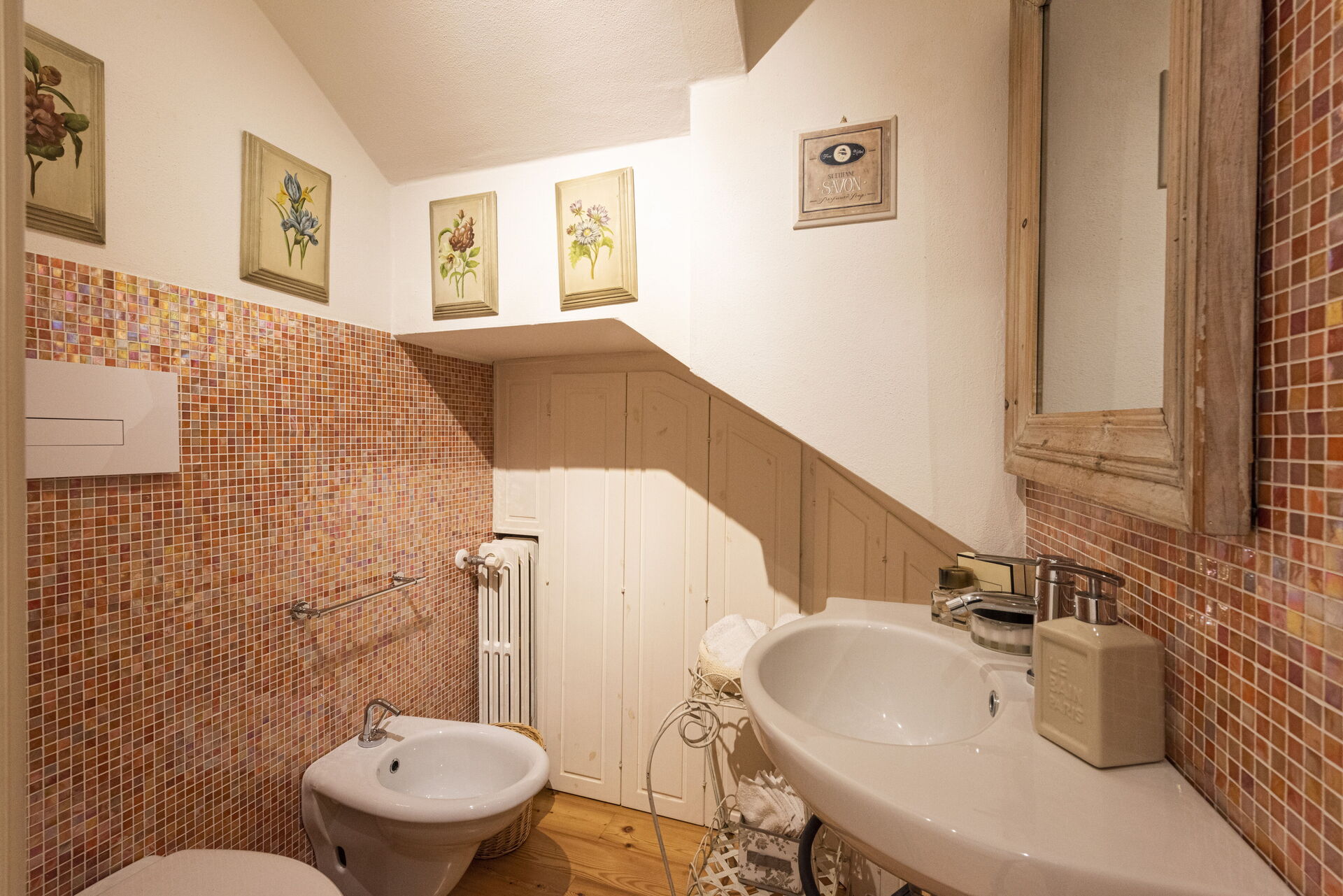 Badeværelse: vask, wc, bidet, bruser.