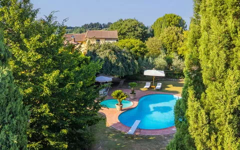 Marcialla 3 km fra Tavarnelle Val di Pesa: Meget smuk, komfortabelt enfamiliehus "Villa Silvana", på 3 etager. 800 m fra bymidten af Marcialla, isoleret beliggenhed i en bydel. Til alene benyttelse: stor, velplejet have (indhegnet) med planter og træer, pool (5 x 10 m, 100 - 250 cm dyb, Sæsonbestemt tilgængelighed: 20.Apr. - 15.Okt.). Udendørs brus, boblebad, lysthus, pergola, terrasse, havemøbler, grill, Underholdning af poolen af ejeren/gartneren. I huset: fitnessrum, boblebad (alt inkl.). Skift af linned (yderlige ekstras). Udskiftning af håndklæder (yderlige ekstras). Rengøring af lejlighed muligt (ekstra). Hushjælp muligt (ekstra). Kok muligt (ekstra). Morgenmad og halvpension muligt (ekstra). Parkeringsplads ved huset, single garage ved huset. Indkøbsforretning, fødevarebutik 800 m, supermarked 3 km, restaurant, bageri 800 m, busstoppested 100 m, banegård "Zambra" 13 km, sandstrand "Cecina Mare" 90 km. Golfbane (14 hul) 30 km. Nærliggende attraktioner: Certaldo 11 km, San Gimignano 22 km, Firenze 36 km, Siena 46 km, Volterra 47 km, Pisa 86 km. Bemærk venligst: babyudstyr (inkl.). Velegnet till arrangementer. Madlavningskurser bestilles på forespørgsel. Ejeren accepterer ikke nogen ungdomsgrupper.