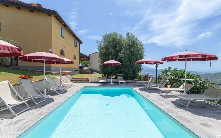 Landbrugsejendomme "Antico Loggiato", 480 meter over havets overflade. 4 lejligheder i ejendommen. 6 km fra bymidten af Rufina, 13 km fra centrum af Pontassieve, 30 km fra bymidten af Firenze, høj beliggenhed på en bakke, i det grønne. Til medbenyttelse: have (indhegnet), pool (8 x 4 m, 150 cm dyb, Sæsonbestemt tilgængelighed: 01.Apr. - 31.Okt.). Bordtennis, havemøbler, grill, legeplads (gynge), Underholdning af poolen af ejeren/gartneren. I anlægget: reception, bordfodbold, centralvarme, opvarme kun tilgængelig fra 01.Nov. - 15.Apr.. Parkeringsplads på grunden. Indkøbsforretning 6 km, fødevarebutik 500 m, supermarked 6 km, busstoppested "Rufina" 6 km, banegård "Rufina" 6 km, badesø "Bilancino" 46 km. Nærliggende attraktioner: Vicchio 24 km, Fiesole 30 km, Vallombrosa 31 km, Greve in Chianti 50 km. Bemærk venligst: ejer bor på sammen grund.