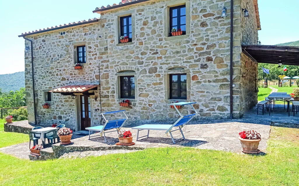 Hus på landet "La Coccinella", 650 meter over havets overflade, fritstående, omgivet af marker. 17 km fra centrum af Cortona, isoleret beliggenhed på en bakke. Til alene benyttelse: park 2'000 m2, pool (10 x 5 m, 160 cm dyb, Sæsonbestemt tilgængelighed: 01.Maj. - 15.Okt.). Udendørs brus, terrasse, havemøbler, grill, legeplads. Tilkørsel (400 m natursti). Parkeringsplads på grunden. Fødevarebutik 12 km, supermarked 12 km, restaurant 1 km, bar 12 km, busstoppested 400 m, banegård 22 km, varmtvandsbad "Rapolano Terme" 55 km. Nærliggende attraktioner: Castiglion Fiorentino 25 km, Umbertide 30 km, Arezzo 37 km, Pereugia 50 km, Assisi 60 km. Kendte søer nås nemt: Trasimeno 36 km. Bemærk venligst: bil anbefales. Ejeren accepterer ikke nogen ungdomsgrupper. Vandhanen har ingen drikkevandskvalitet.