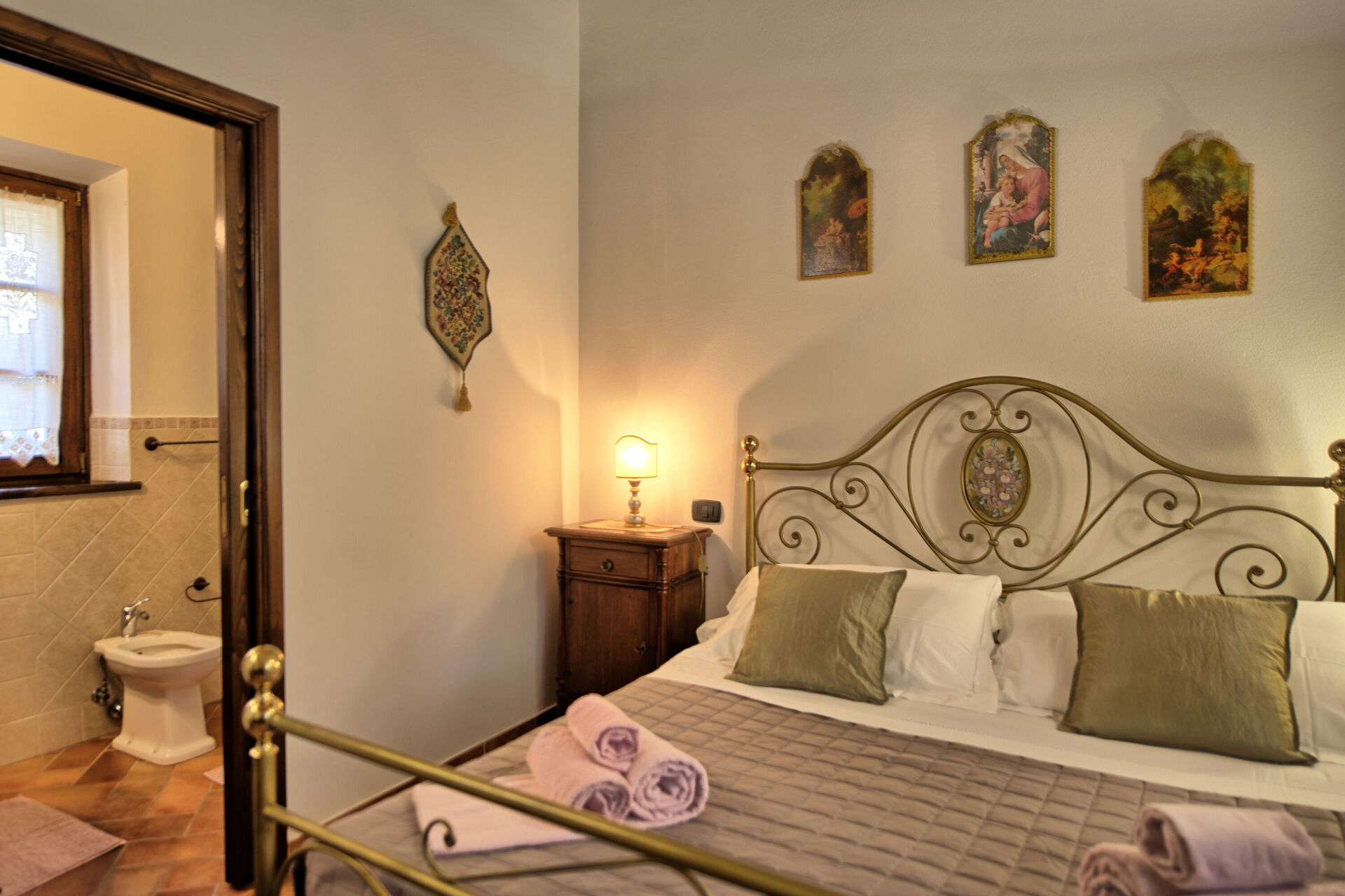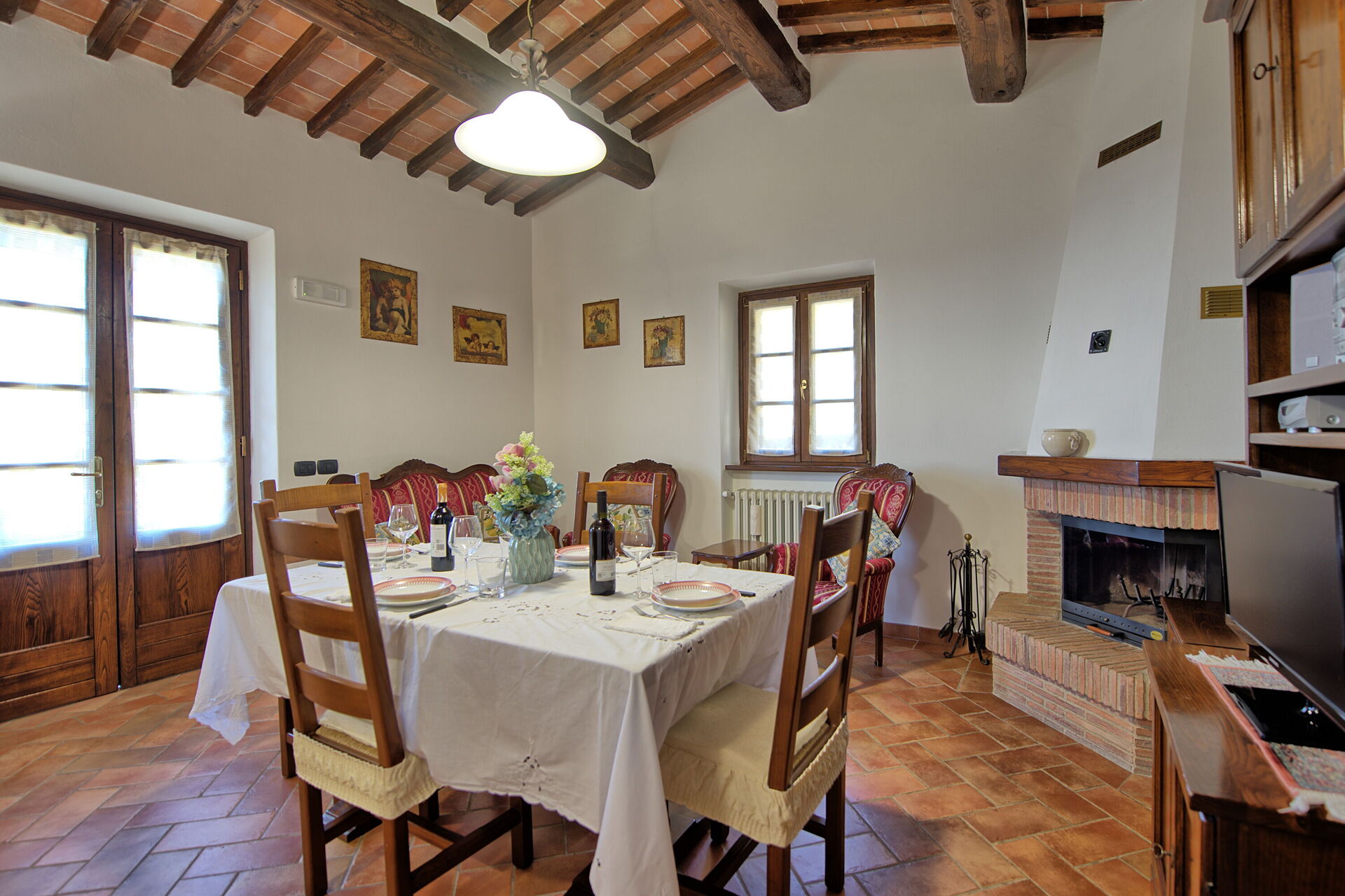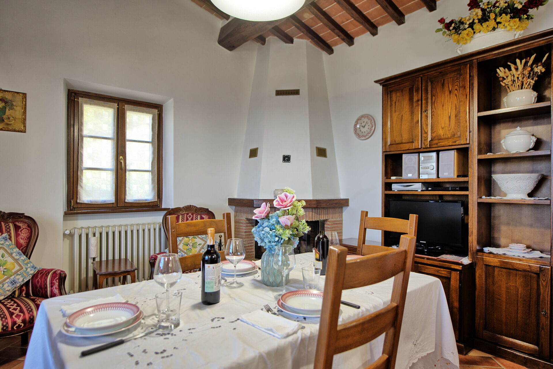 Feriehuset er indrettet komfortabelt i rustik stil. Udenfor er der et privat udendørs område, der er indrettet til at til udendørs måltider. Nær feriehuset passerer en lille vej fra Cortona til de små landsbyer i området.