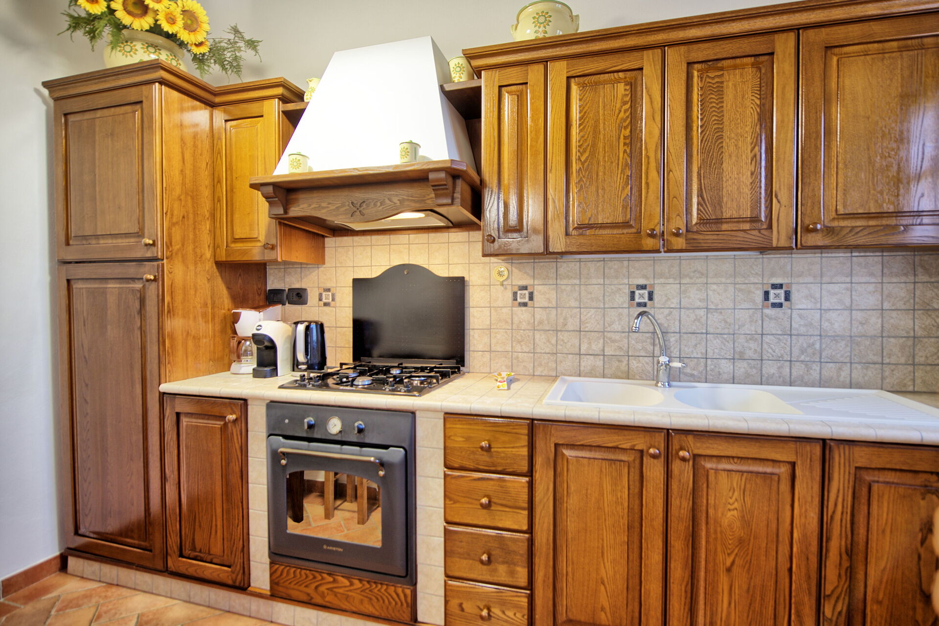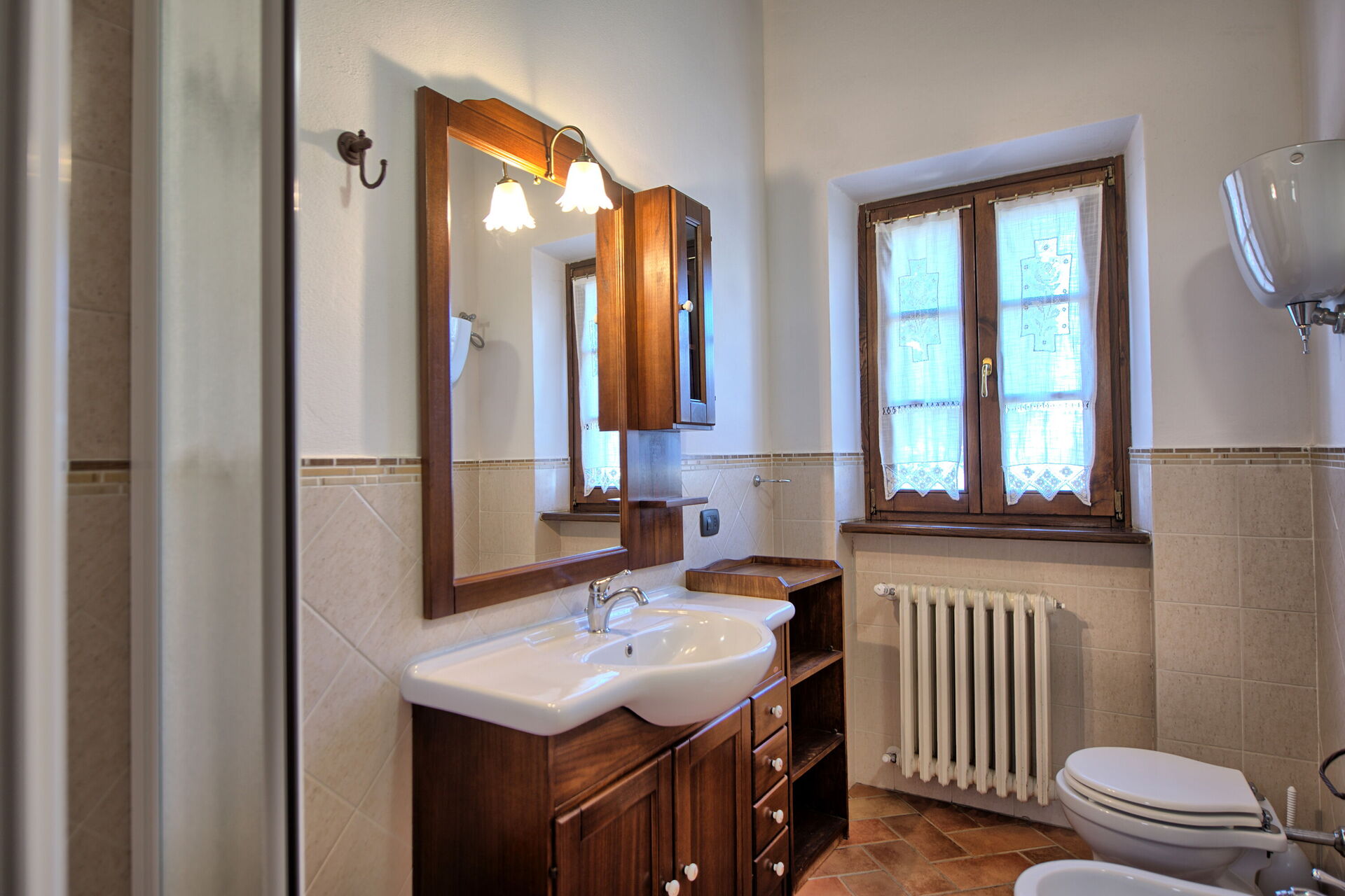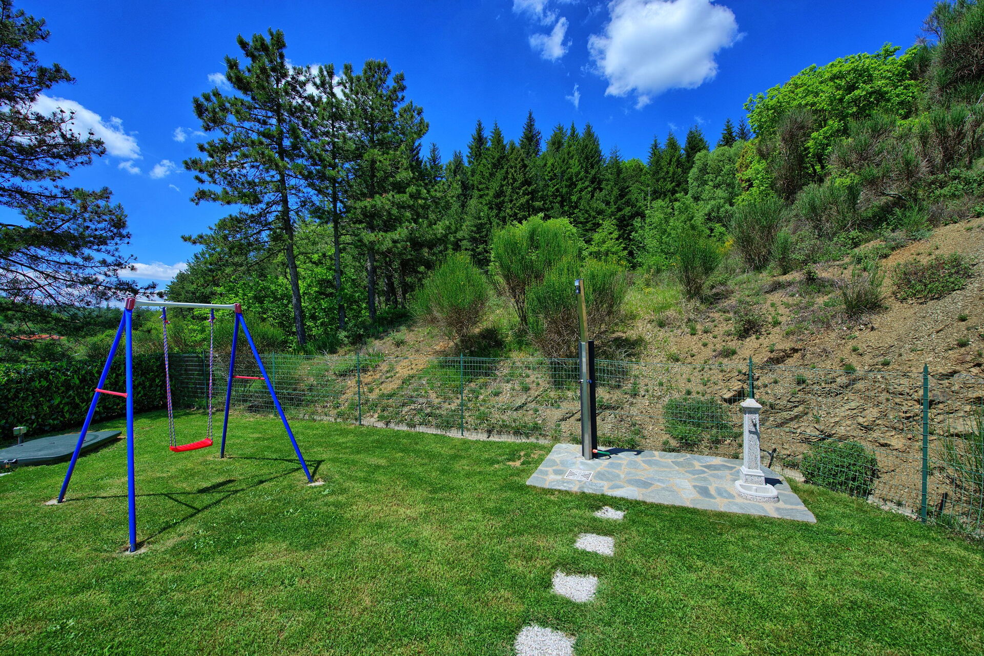 Feriehuset er indrettet komfortabelt i rustik stil. Udenfor er der et privat udendørs område, der er indrettet til at til udendørs måltider. Nær feriehuset passerer en lille vej fra Cortona til de små landsbyer i området.