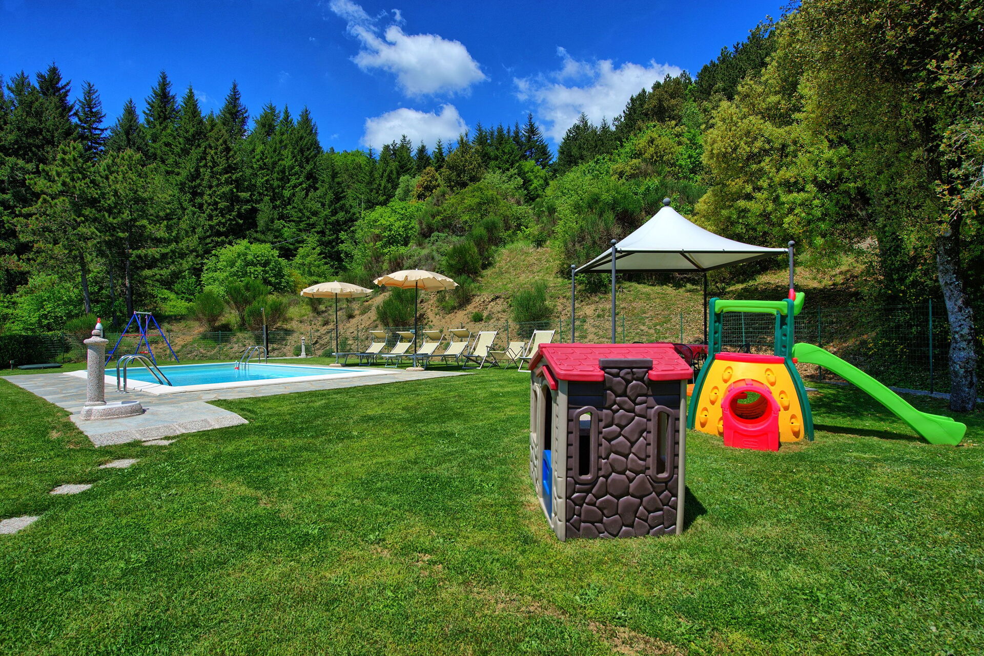Smukt fritliggende sommerhus med pool til leje i Toscana.