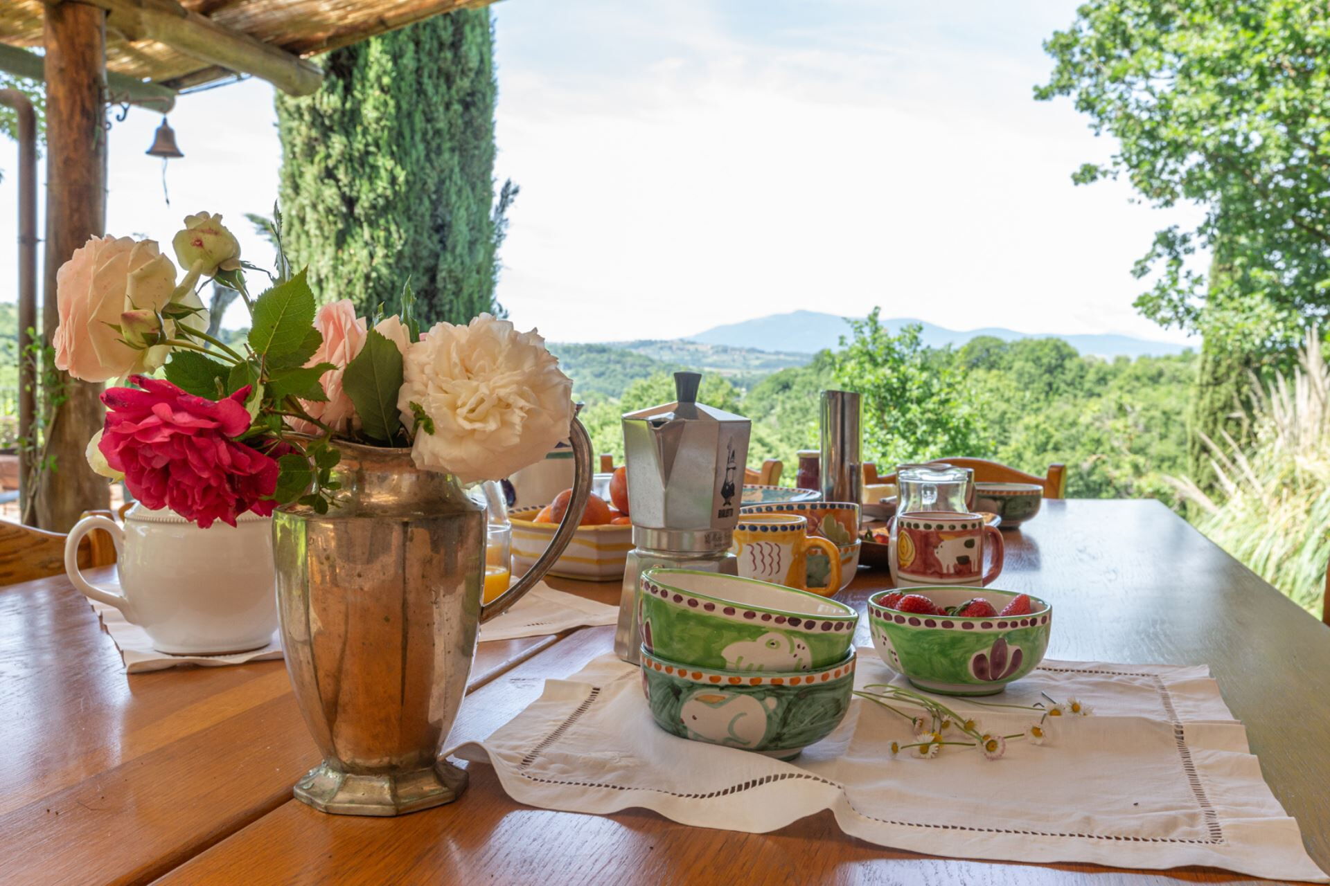 Its proximity to several small cities makes it perfect even for those who do not want to feel isolated but part of the small community and the Italian lifestyle; in a few minutes it is easy to go to the nearest supermarkets or having an aperitif in a typical Italian bar. Casale le Fonti is located 10 minutes by car from the center of Città della Pieve (Umbria) and just a few minutes from the center of the town of Moiano where there is a bank, a post office, a bakery and all the services of a small village. The location of the property is excellent for discovering this corner of Umbria, but also for exploring areas of nearby Tuscany. Thanks to the proximity to the A1 motorway and the Chiusi railway station, both Florence and Rome are easily reachable. Close to the property is the pretty town of Città della Pieve, with many delightful restaurants and bars for an authentic Italian way of life. The Unesco site of the splendid Val d'Orcia is just a few kms away and here there are magnificent spa towns such as San Casciano dei Bagni, Bagni Vignoni and Chianciano Terme, all within easy reach for a relaxing day. You will find yourself immersed in one of the most renowned areas of Umbria for tasting excellent wines or experiencing prestigious wineries and quality restaurants. Whether you are looking for traditional restaurants or are looking for top-level experiences in starred restaurants, here you can dare to unleash all your gastronomic desires. A few kilometers away is the lake, the Trasimeno, but also Tuscan towns such as Montepulciano and Pienza for a gastronomic break and a good glass of wine. There is so much to see and do, including historic villages to visit and countryside to discover, that will continually delight your senses. Finally, you can choose the ideal vehicle for each destination: from car to scooter to e-bike. If you would like more information on this area or to find out the exact location of the structure, write to booking@greatstays.it