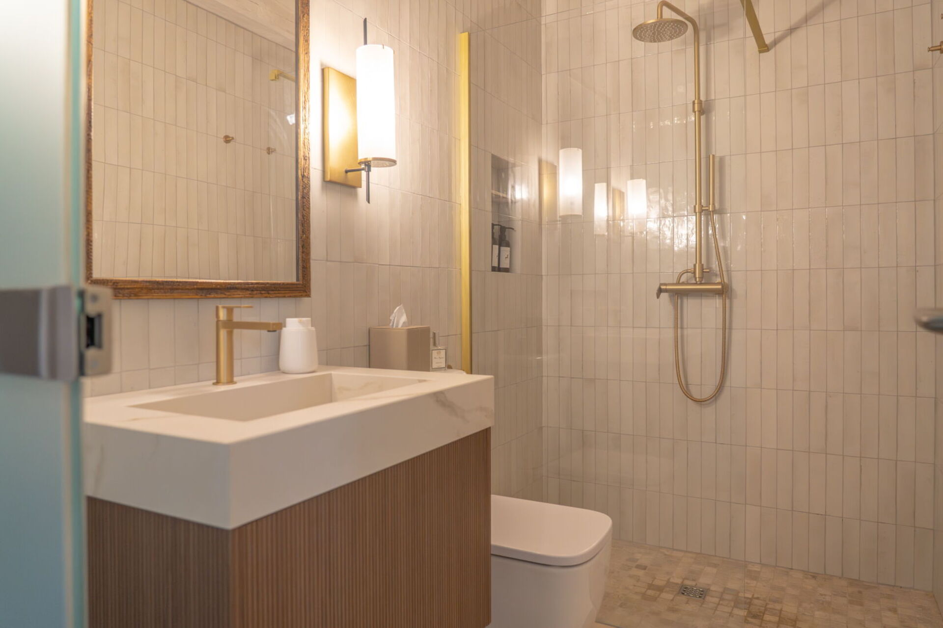 Accommodation consists of four air-conditioned suites and a single bedroom. Camera Siena and Camera Roma are large suites with en-suite bathroom, on the other side of which is a smaller bedroom which can be used to sleep 1 or to use as a dressing/reading room. Camera Firenze is on the top floor and has an en-suite bathroom as well, including a free-standing bathtub (with handheld shower). The bathrooms are all very modern and stylish. Quality, luxury bedding and linens provided in all rooms.