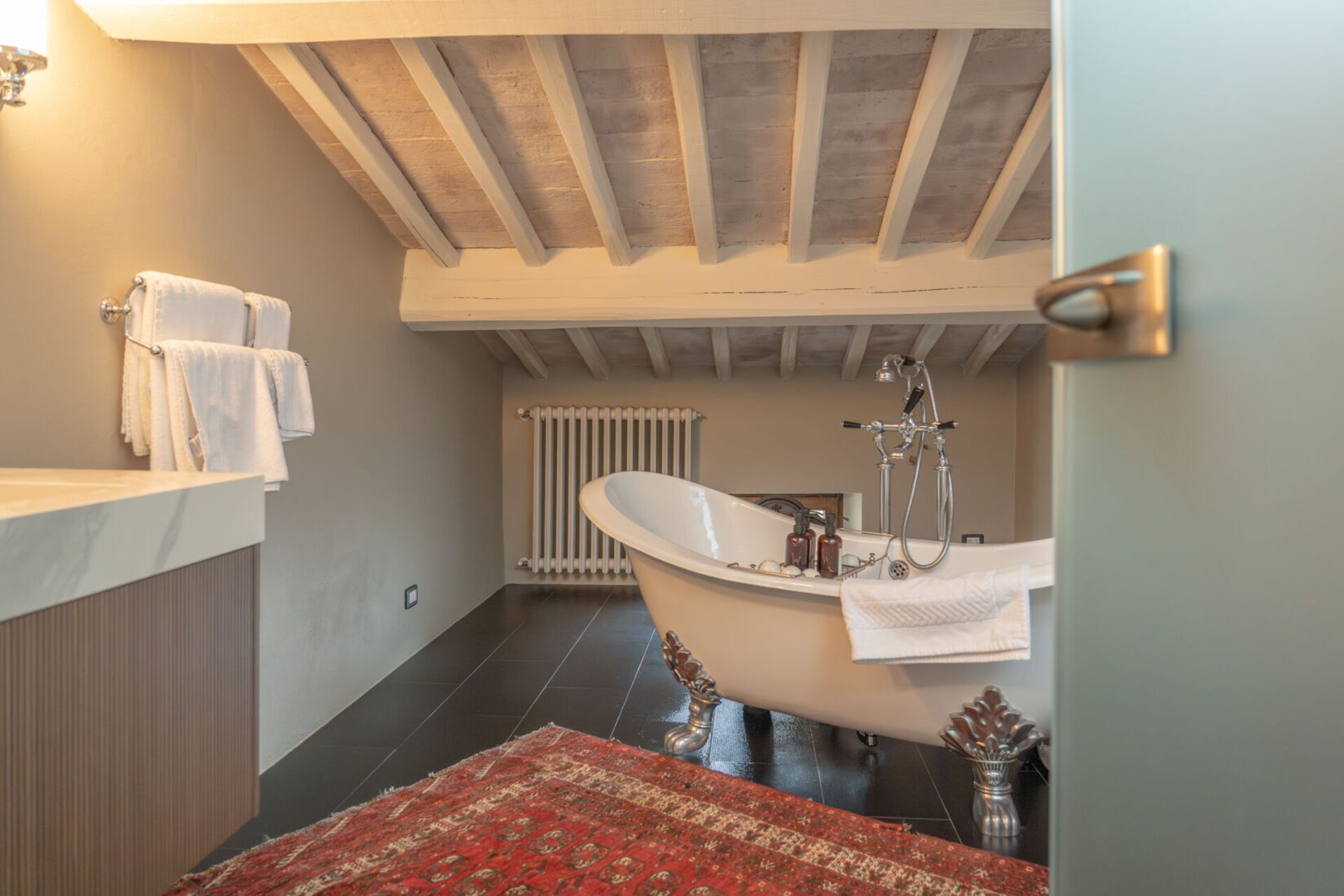 Camera Montepulciano is another large king suite located on the third floor with an ensuite bathroom that includes a free-standing bathtub (with handheld shower).