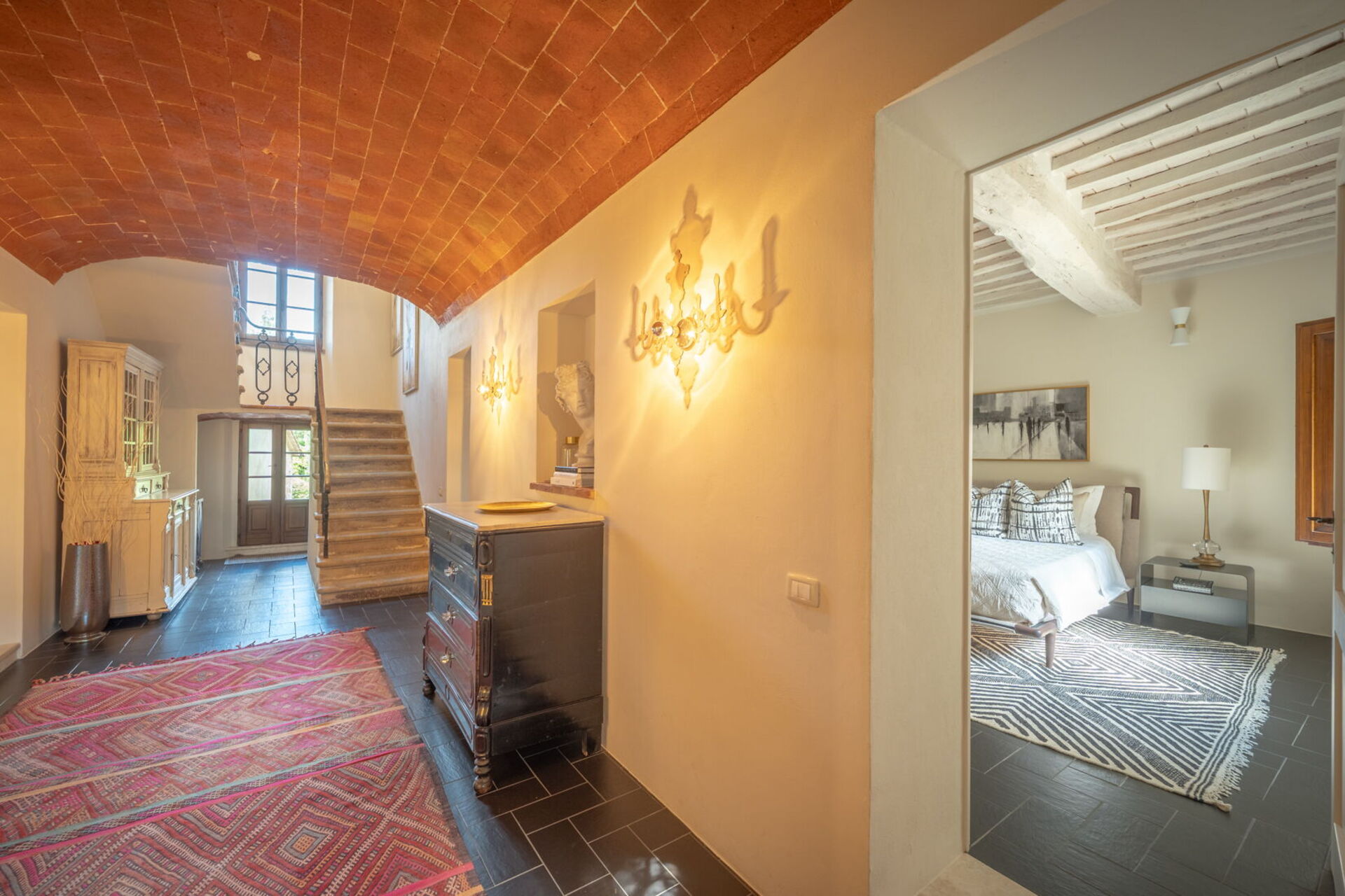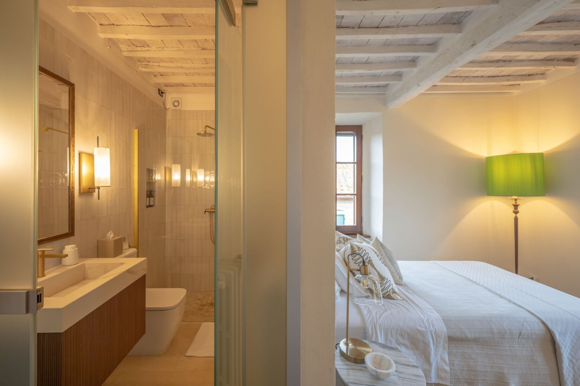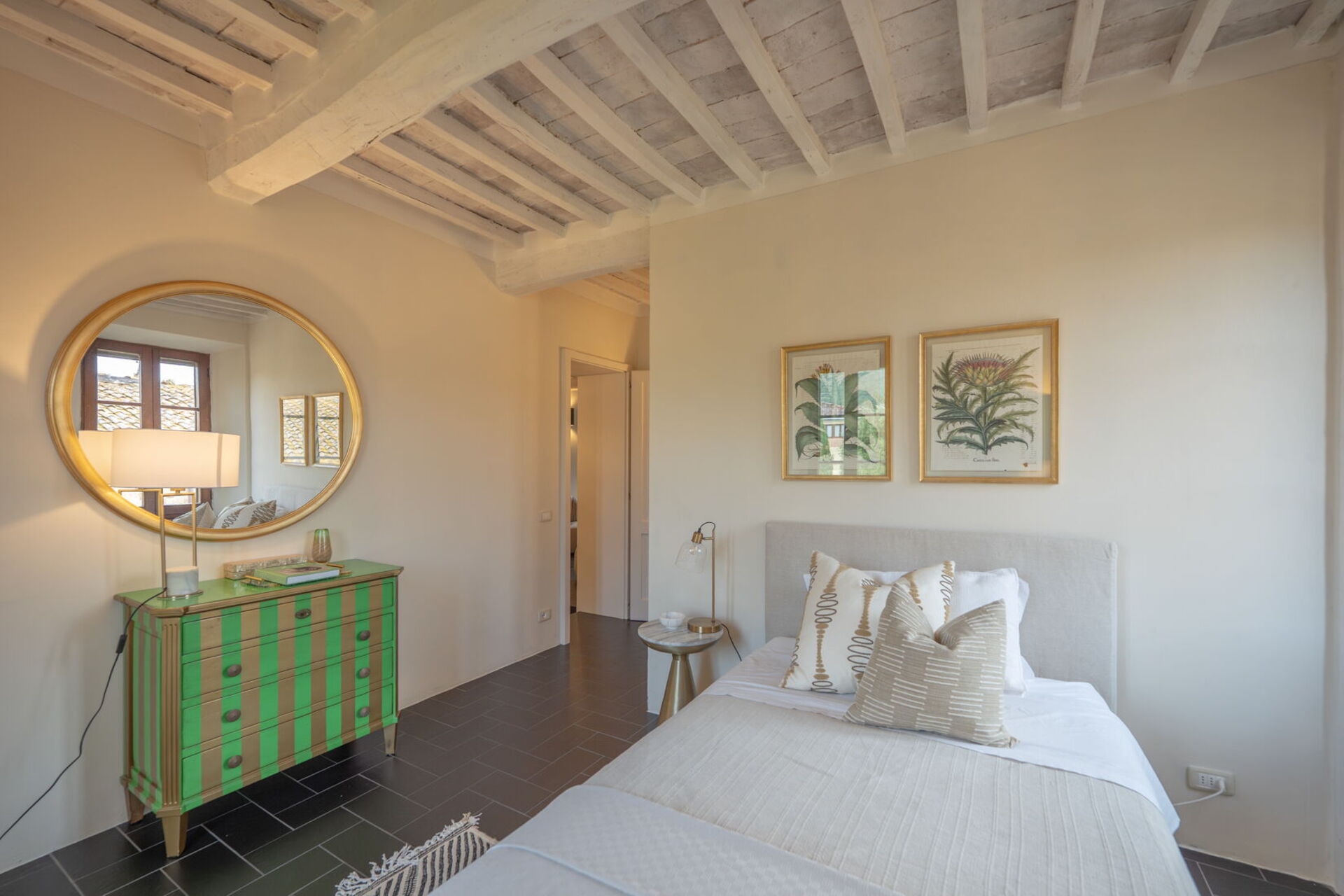 Camera Firenze is connected to the only single suite in the house, Camera Pienza, on the other side of the ensuite bathroom. Similarly, Camera Siena is connected to the office studio.