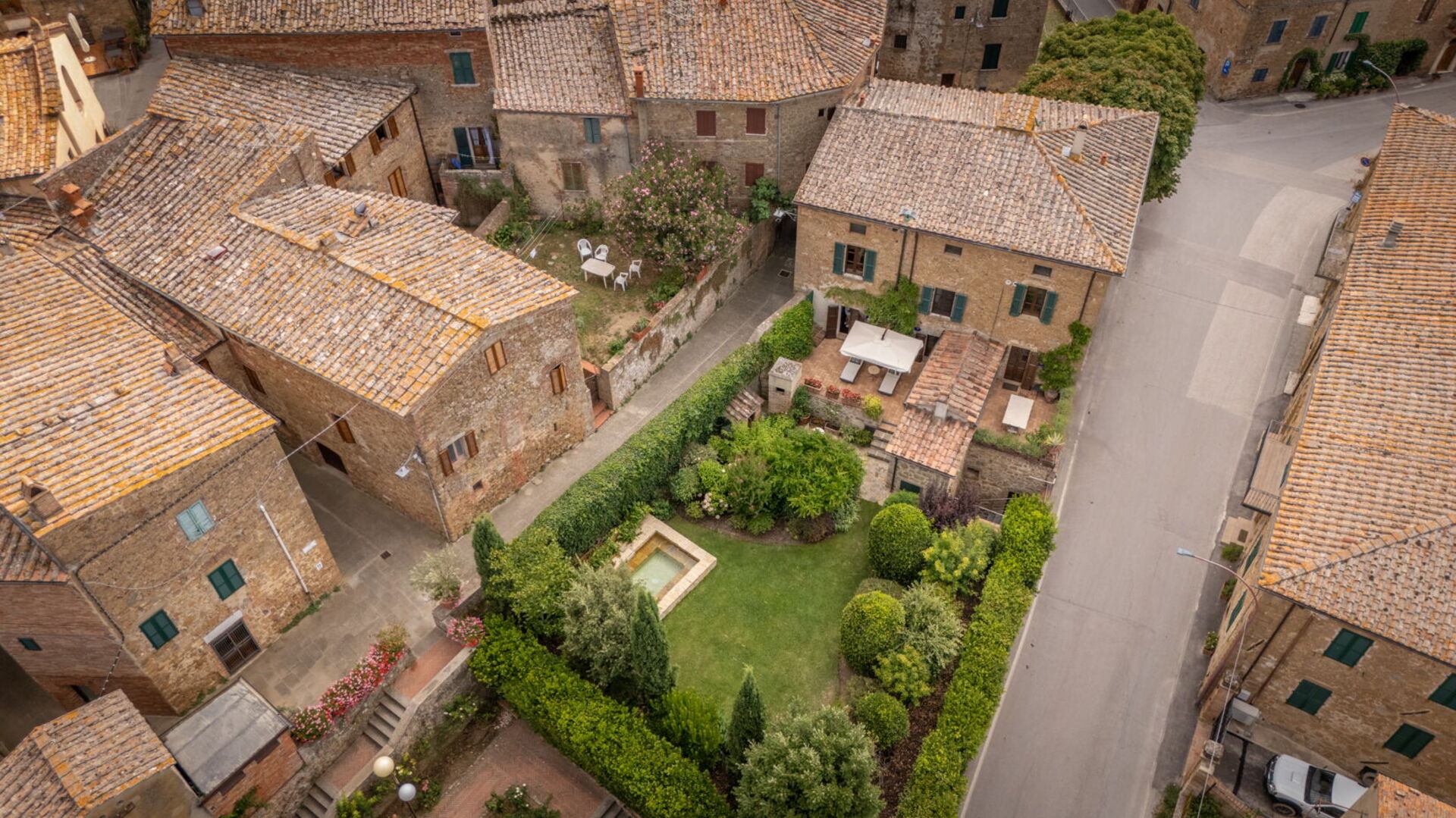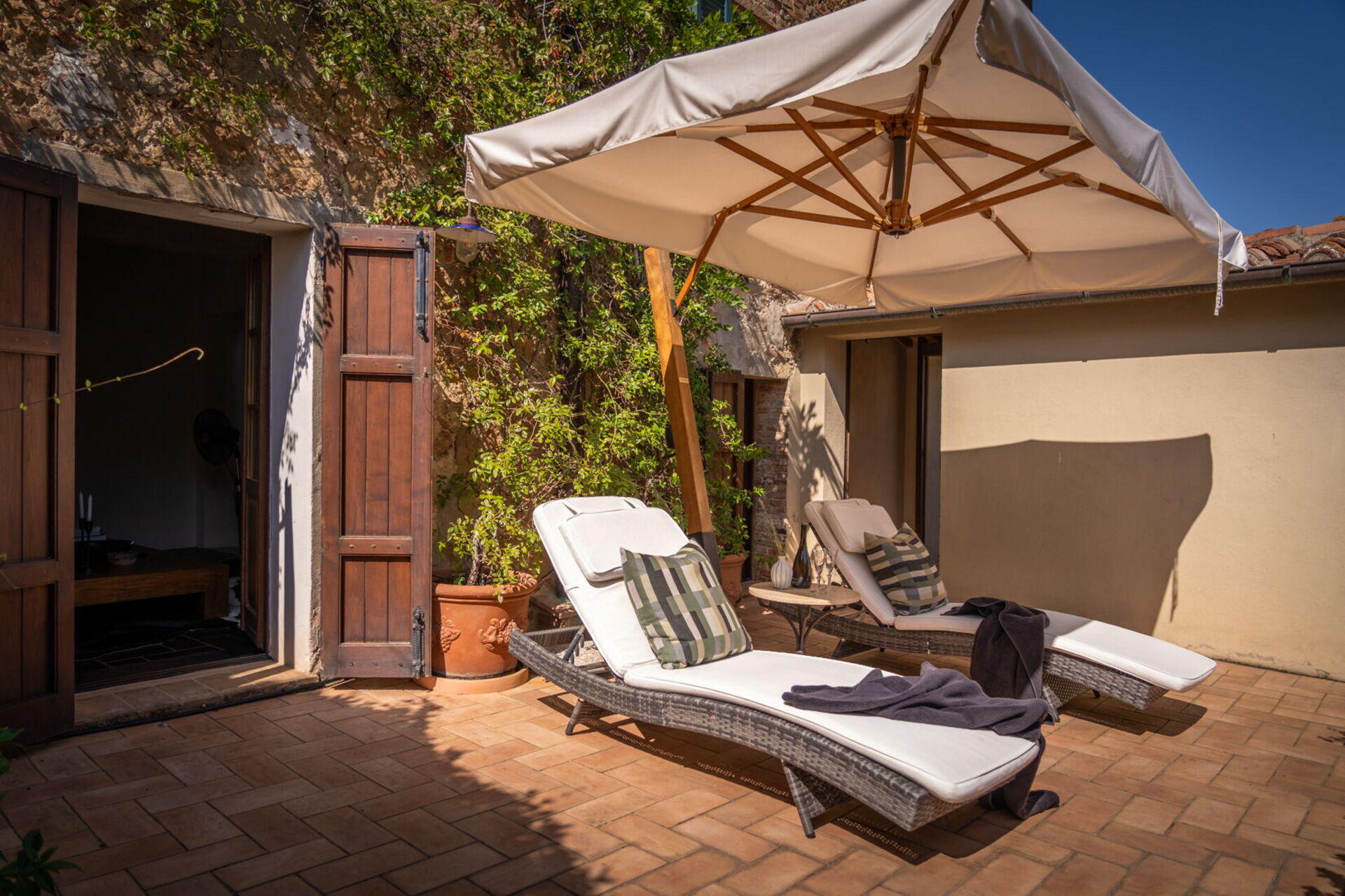 Town House Garden is located in the centro storico of Castelmuzio, conveniently situated north of Rome and south of Florence - about 20 minutes drive from the A1 autostrada. It is in the province of Siena and in the heart of the stunning UNESCO-protected Val D’Orcia. There are local hot springs and spas within reasonable driving distance of Casa Nobile that we would suggest carving out time to visit during your stay. Town House Garden is perfectly located near luxury restaurants and vineyards, offering signature cuisines with a strong essence of Italian living. Enjoy the golden hour while indulging in specialty dishes and the best wine you could find in Tuscany.