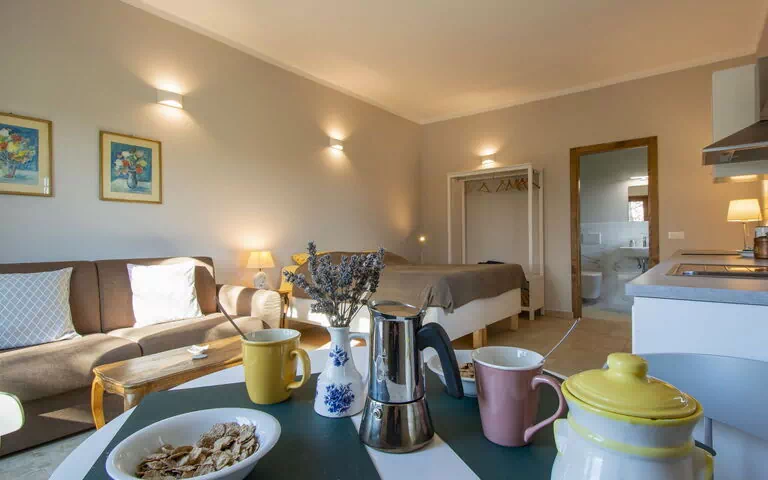 "Lavanda", 1-værelse-Loft i stueetagen. Moderne og smagfuld indrettet: stue/spisestue med 1 sovesofa og klimaanlæg. 1 dobbeltværelse. Udgang til have. Køkken (ovn, 4 Induktionskomfur, Brødrister, kedel, mikroovn). Brus/bidet/WC. Opvarming. Havemøbler, liggestole. Flotte vid udsigt over have. Til benyttelse: vaskemaskine, højstol, hårtørrer. Internet (trådløs LAN [WLAN]). Maksimum 1 husdyr/hund tilladt. IT048019C2KG90FH7Y