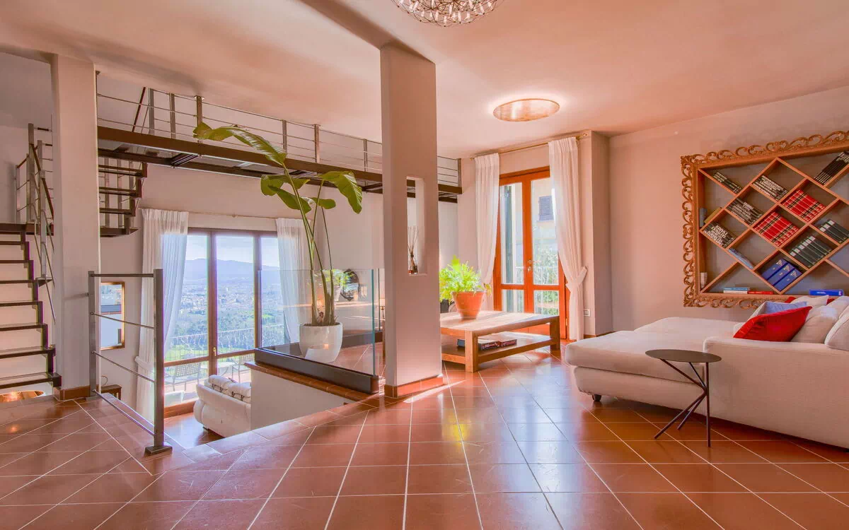 "Panorama", 7-værelse-villa 360 m2. Moderne og smagfuld indrettet: stue med åben kamin (kun til dekoration), digital TV og klimaanlæg. Udgang til altan. 1 skrå dobbeltværelse med klimaanlæg. 2 dobbeltværelse, alle værelser med digital TV og klimaanlæg. Bad/bidet/WC. Gulvvarme. Nederste etage: 1 værelse med panoramavindue med 1 seng, 1 dobbeltseng, brus/bidet/WC, digital TV og klimaanlæg. Spisestue med åben kamin (kun til dekoration). Åbent køkken (ovn, opvaskemaskine, 5 Induktionskomfur, Brødrister, kedel, mikroovn, fryser, elektrisk kaffemaskine). Trægulve. Panoramaudsigt over dalen og svimmingpoolen. Til benyttelse: vaskemaskine, tørretumbler, myggenet hårtørrer. Internet (trådløs LAN [WLAN], gratis). Bemærk venligst: ikke-ryger hus. Brandalarm, brandslukker. IT047003C2UW4L5863
