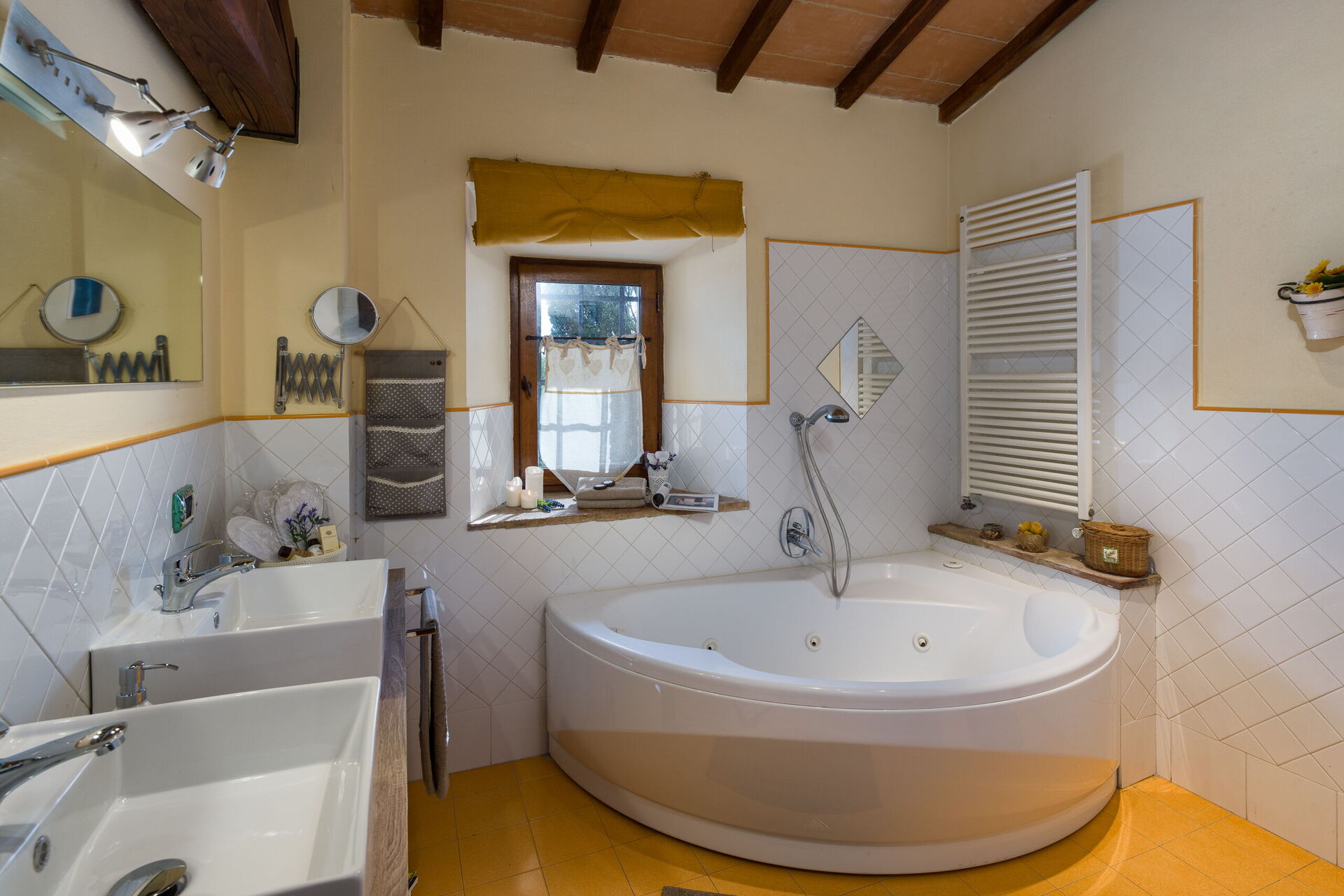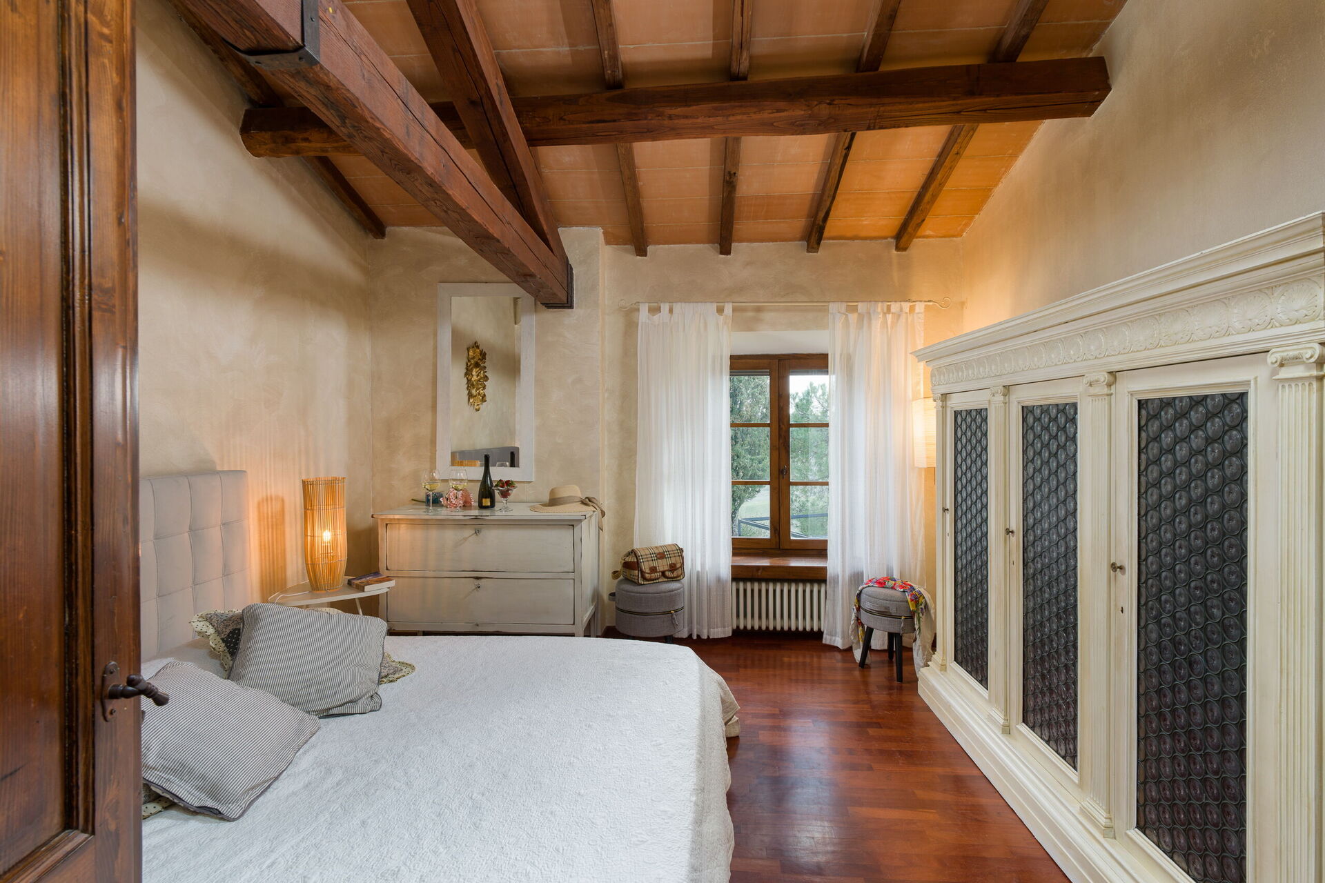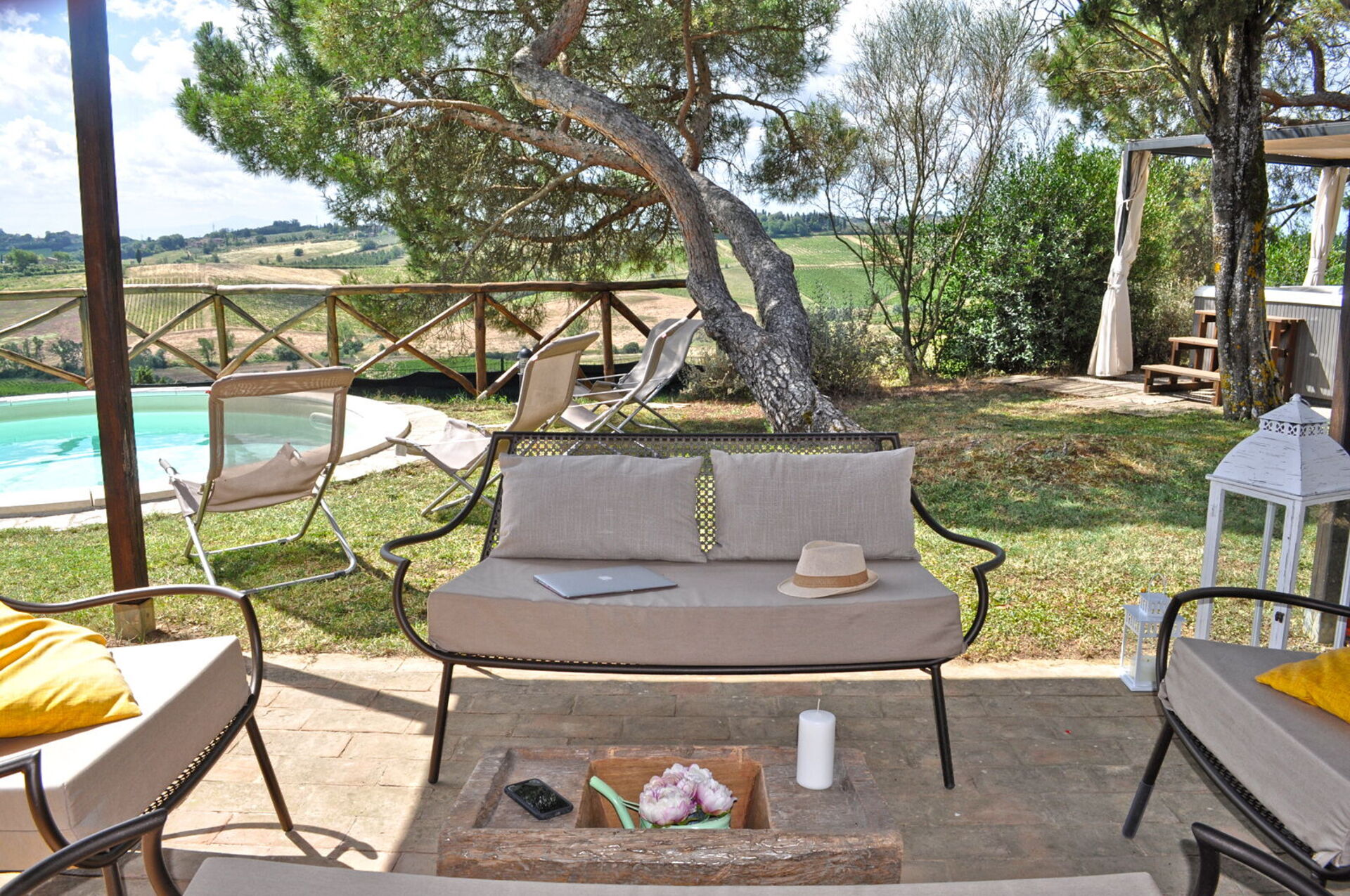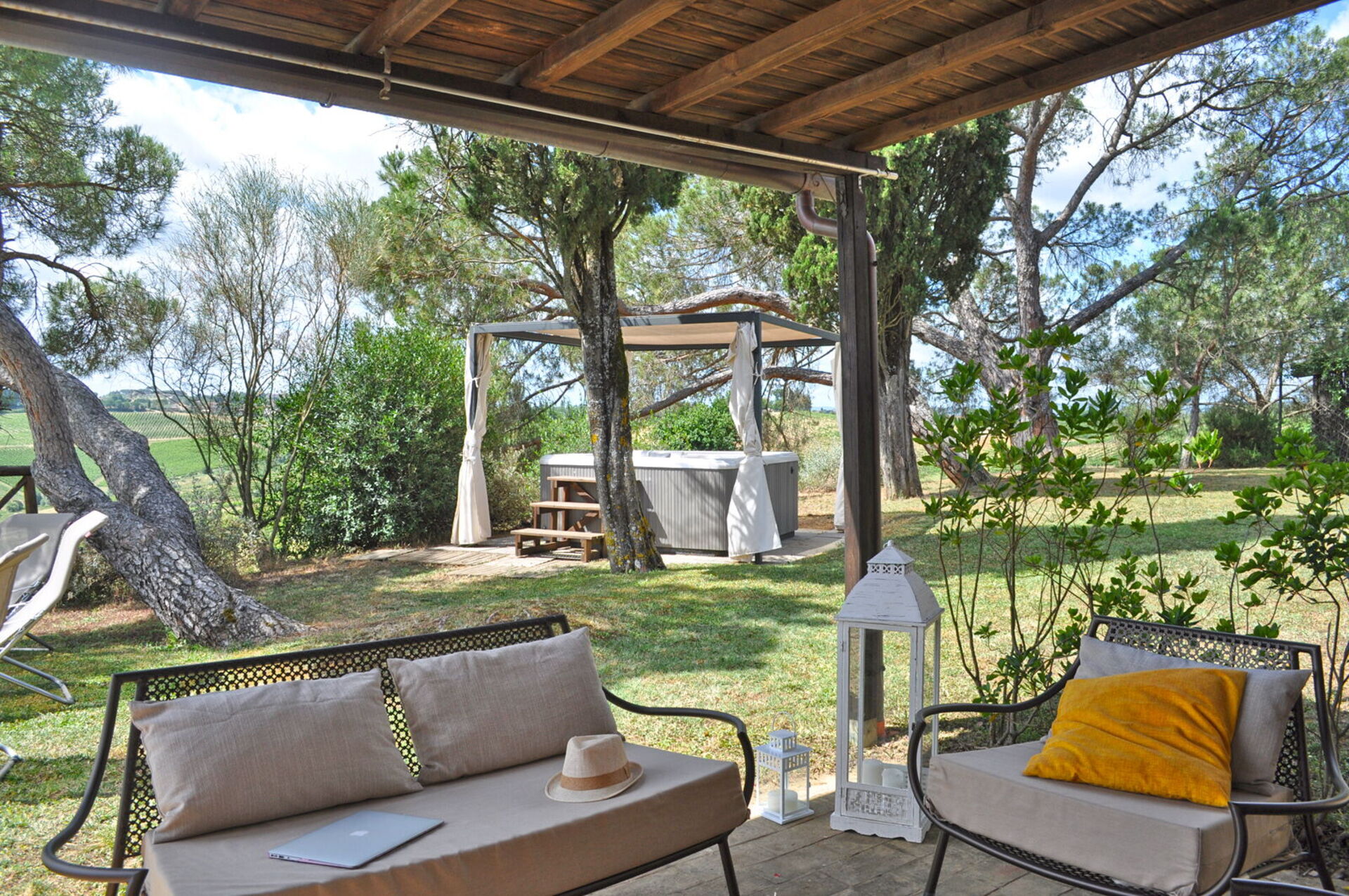 Ved ankomst til Capanna Al Lago vil I finde en skøn ren og velholdt ejendom med udsigt over bakkerne og søen ideel til en behagelig ferie i Toscana. Til jeres store nydelse vil I finde en privat pool, hvor I kan slappe af, mens I nyder en dejlig kold drik efter en travl dag med museumsbesøg. Udendørs vil I også finde jacuzzi, legeplads, gårdhave og barbecue. Hvis I nyder at lave mad til familie og venner så er der et veludstyret køkken inkluderet kaffemaskine, mikroovn, brødrister og køleskab, samt, , samt masser af service og bestik til op til seks personer.