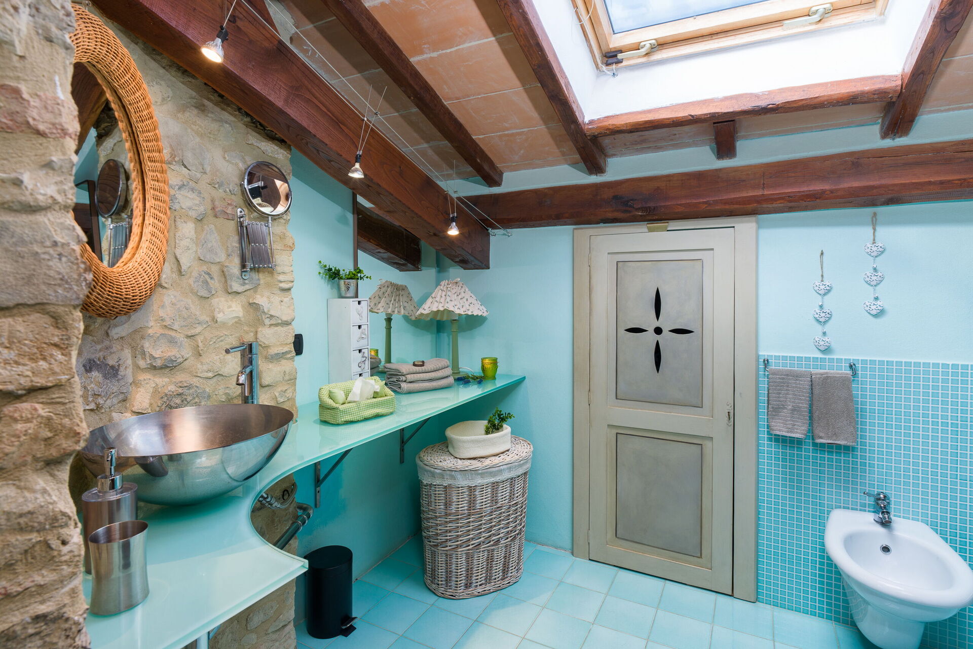 Badeværelse: vask, bidet, bruser, hårtørrer, tørretumbler, vaskemaskine, WIFI internet.